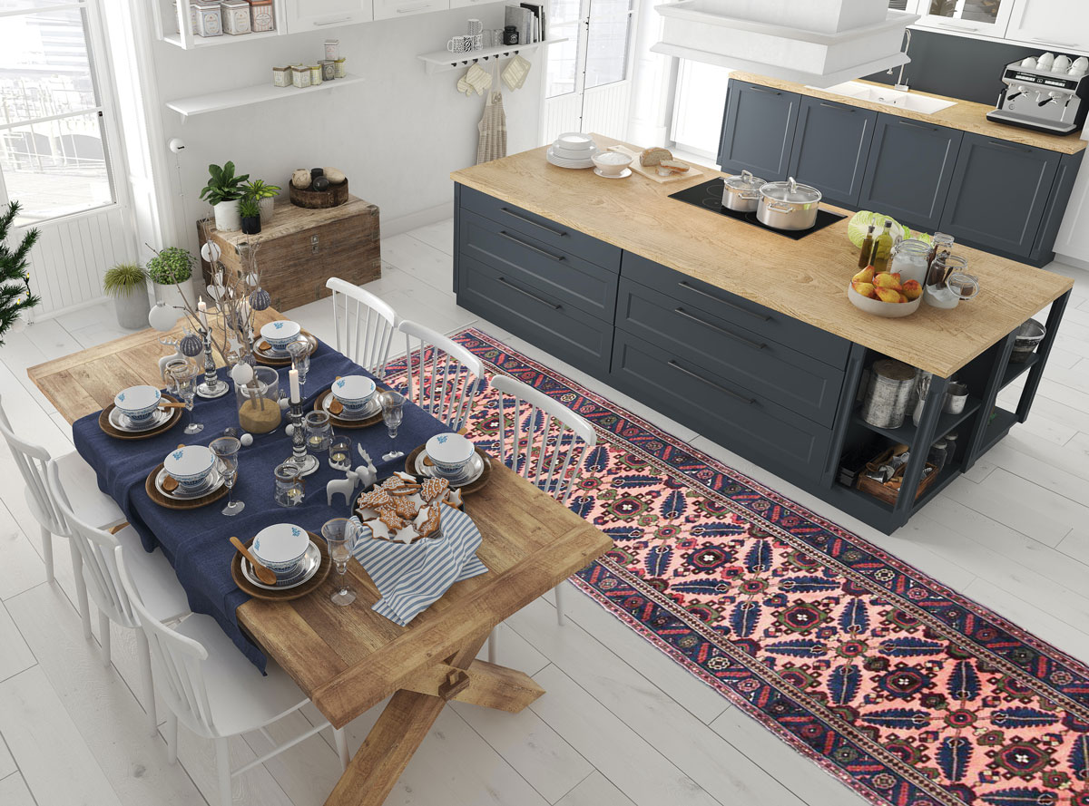 La cuisine est bien plus qu'une simple pièce à cuisiner. Surtout aujourd'hui, la cuisine sert de salle de séjour à part entière. Les concepts d'espaces de vie ouverts avec cuisines intégrées sont la marque de notre compréhension actuelle de l'atmosphère de vie. C'est pourquoi les cuisines - qu'elles soient intégrées ou individuelles - ne doivent pas être des salles froides pour la préparation de nos repas. Bien plus, ils devraient vous inviter à vous attarder et à être un lieu de bien-être. Un tapis de cuisine peut faire des merveilles dans ce contexte. Parce que les tapis donnent de la chaleur et de l'ambiance aux pièces. Cependant, choisir le bon tapis pour une cuisine particulière n'est pas si facile. Nous vous donnons ci-dessous quelques conseils pour trouver le tapis parfait pour votre cuisine.