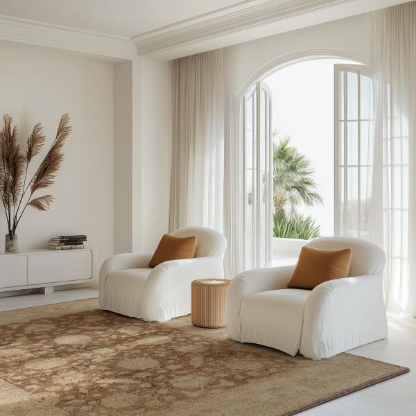 Dans des pièces lumineuses, un tapis Ghom apparaît comme un détail noble et vivant, plein de rayonnement, qui apporte fraîcheur, élégance et une touche de luxe à la pièce.