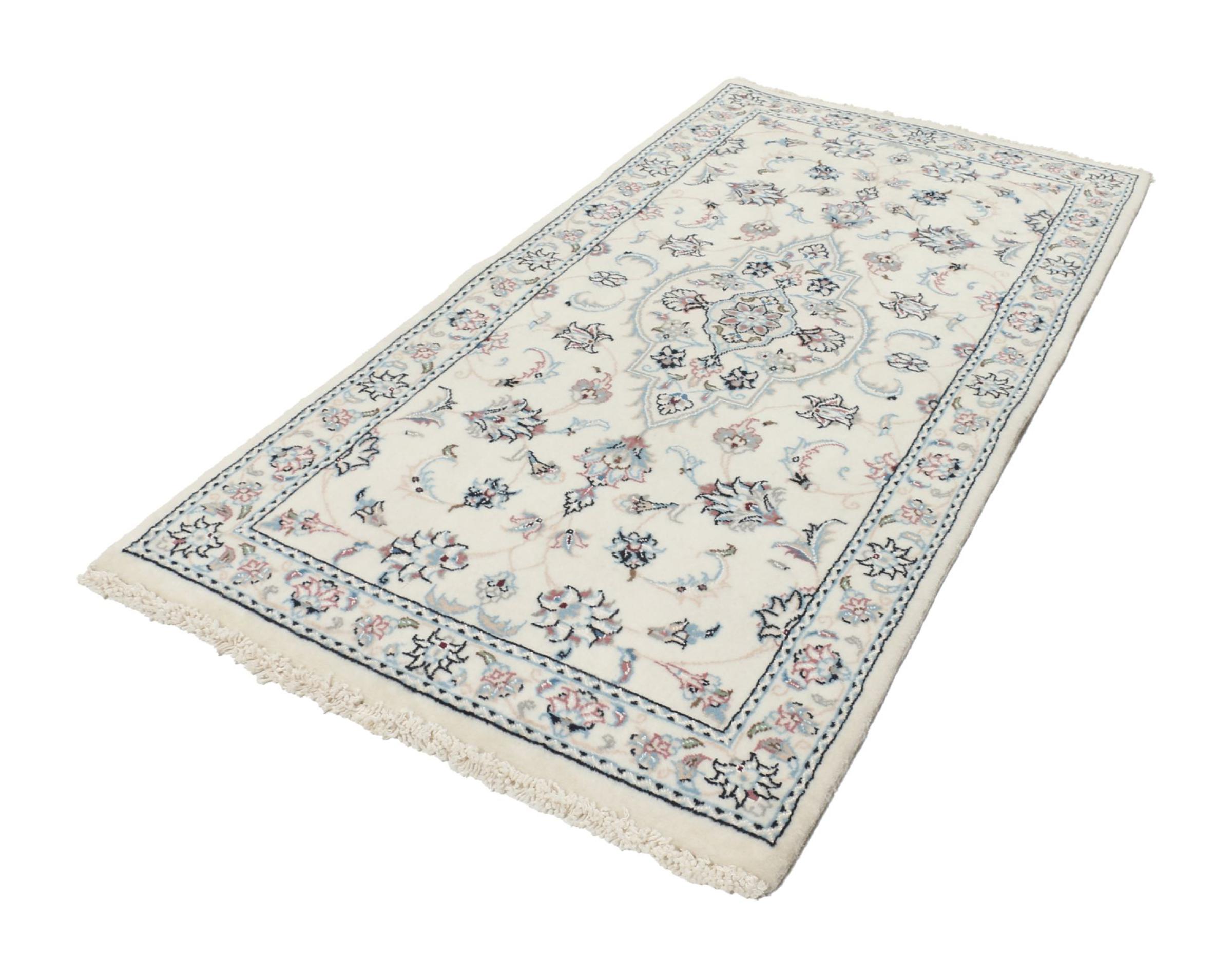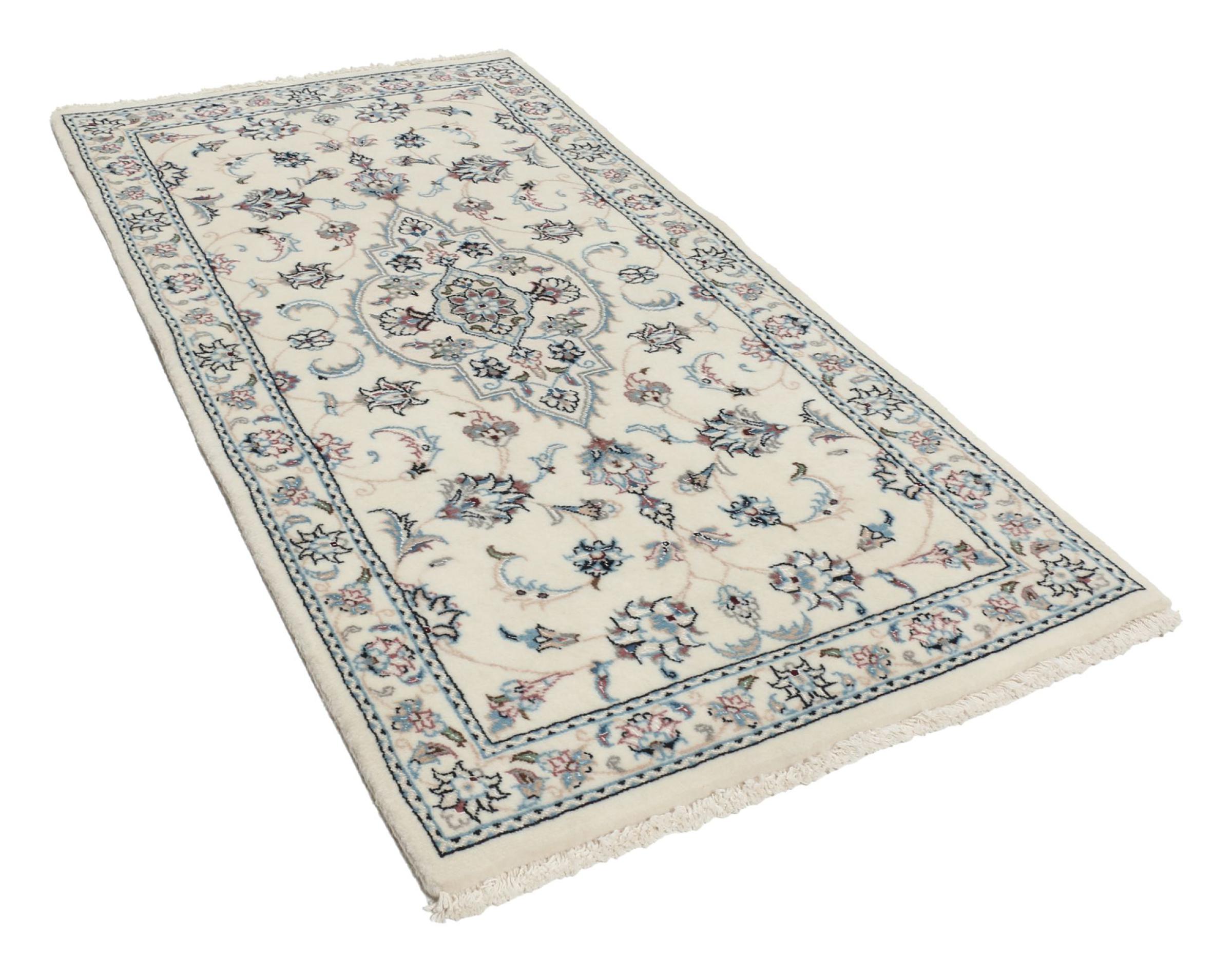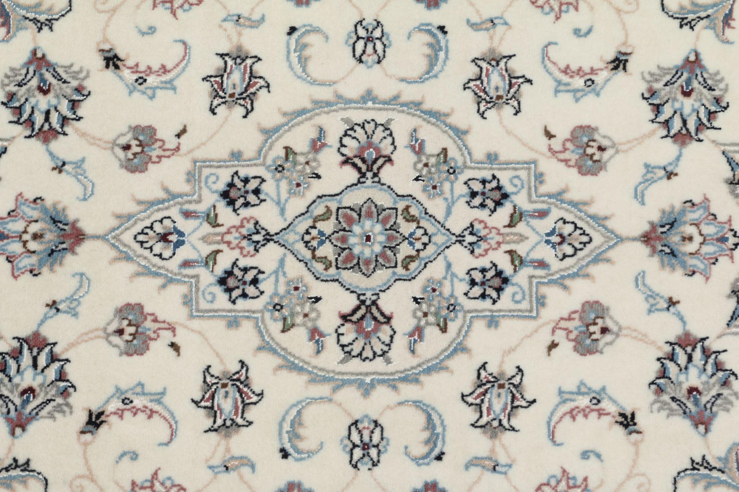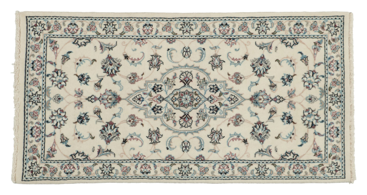 Les tapis de la ville de Nain, à la frontière de l'un des plus grands déserts d'Iran, comptent parmi les plus célèbres tapis persans du monde. Leur design typique est sans équivoque avec des ornements floraux, un médaillon central et des nuances de beige et de rouge ou de bleu. Grâce à leurs désignations 4La, 6La, 9La et 12La, les finesses d'un tapis Nain peuvent être vues d'un seul coup d'œil. Plus le chiffre "La" est bas, plus la densité des nœuds est élevée et donc plus le tapis est fin.