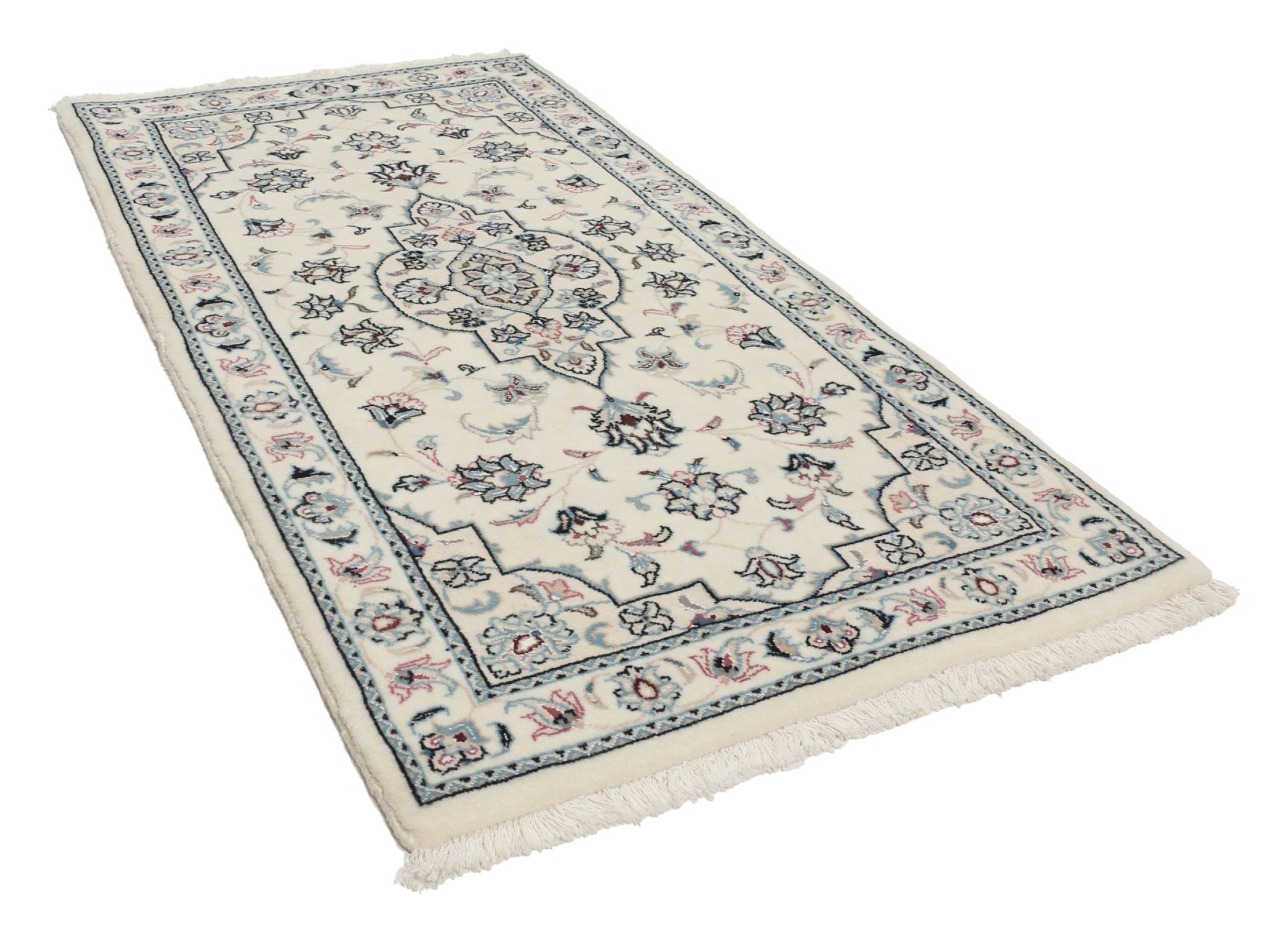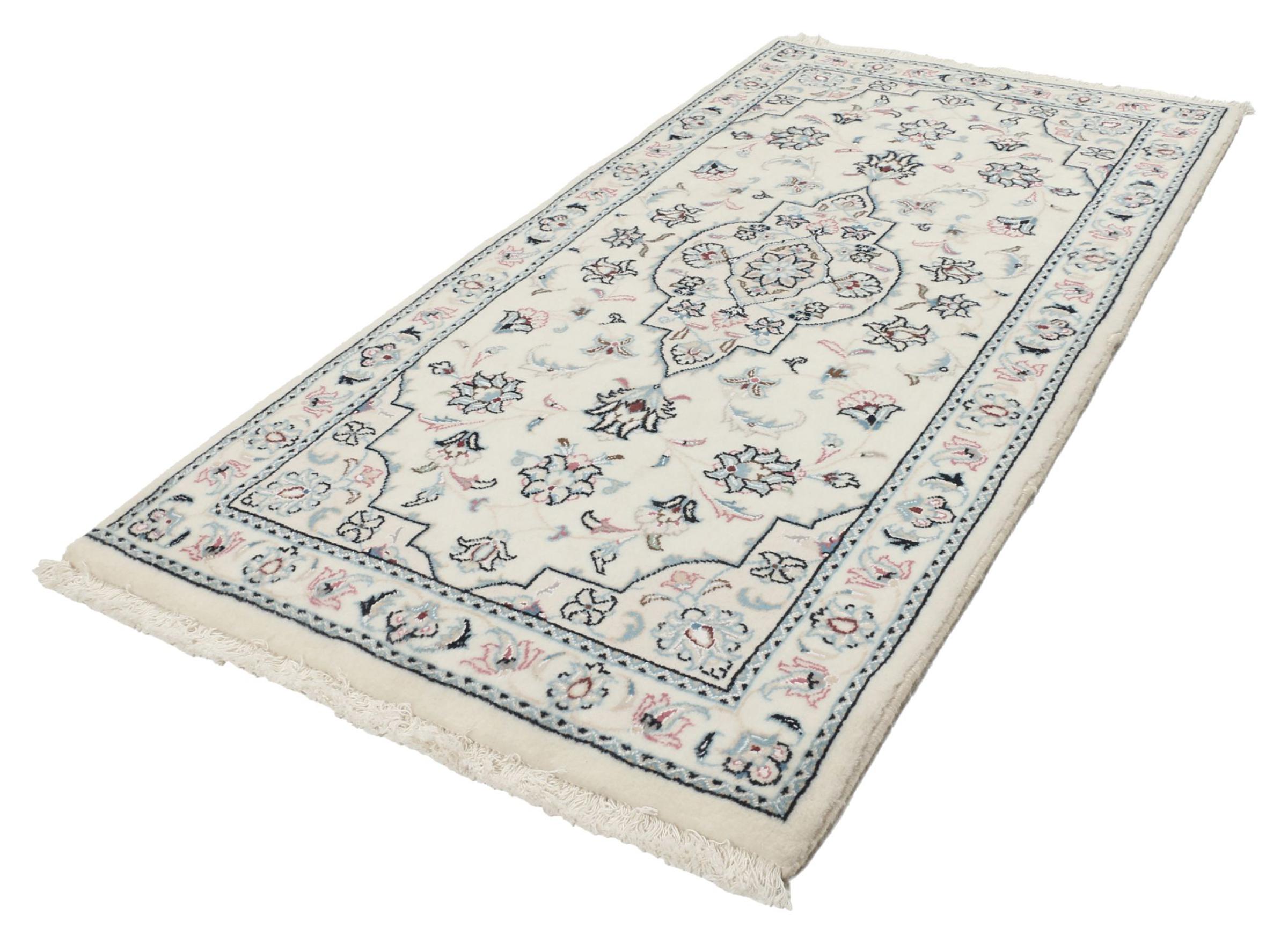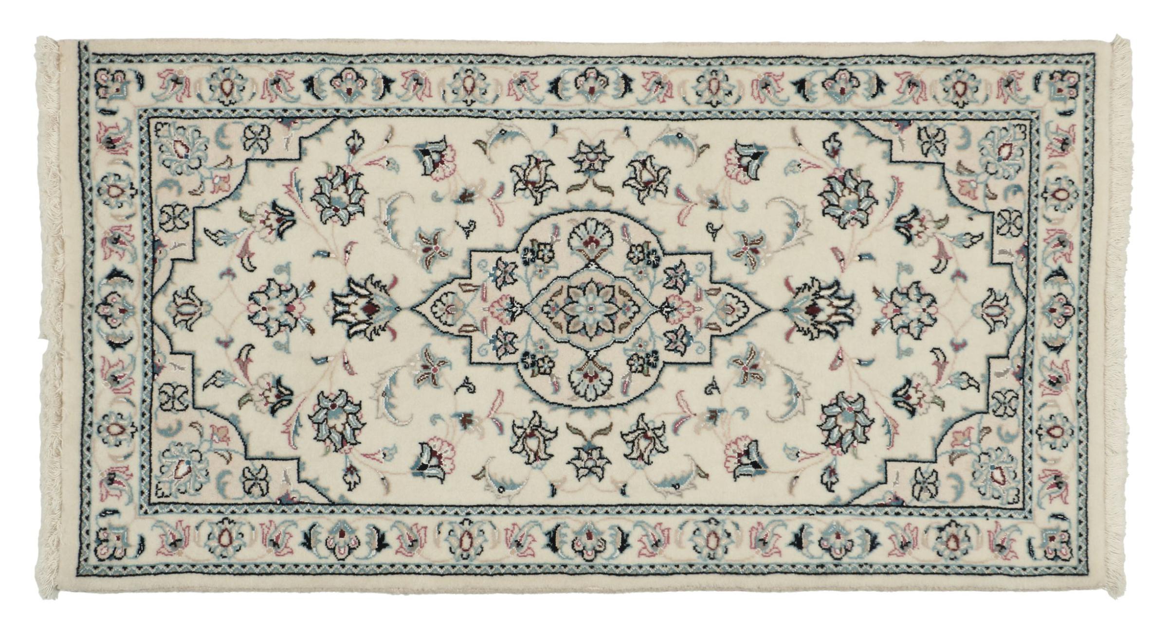 Les tapis de la ville de Nain, à la frontière de l'un des plus grands déserts d'Iran, comptent parmi les plus célèbres tapis persans du monde. Leur design typique est sans équivoque avec des ornements floraux, un médaillon central et des nuances de beige et de rouge ou de bleu. Grâce à leurs désignations 4La, 6La, 9La et 12La, les finesses d'un tapis Nain peuvent être vues d'un seul coup d'œil. Plus le chiffre "La" est bas, plus la densité des nœuds est élevée et donc plus le tapis est fin.