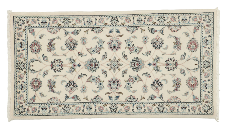Les tapis de la ville de Nain, à la frontière de l'un des plus grands déserts d'Iran, comptent parmi les plus célèbres tapis persans du monde. Leur design typique est sans équivoque avec des ornements floraux, un médaillon central et des nuances de beige et de rouge ou de bleu. Grâce à leurs désignations 4La, 6La, 9La et 12La, les finesses d'un tapis Nain peuvent être vues d'un seul coup d'œil. Plus le chiffre "La" est bas, plus la densité des nœuds est élevée et donc plus le tapis est fin.