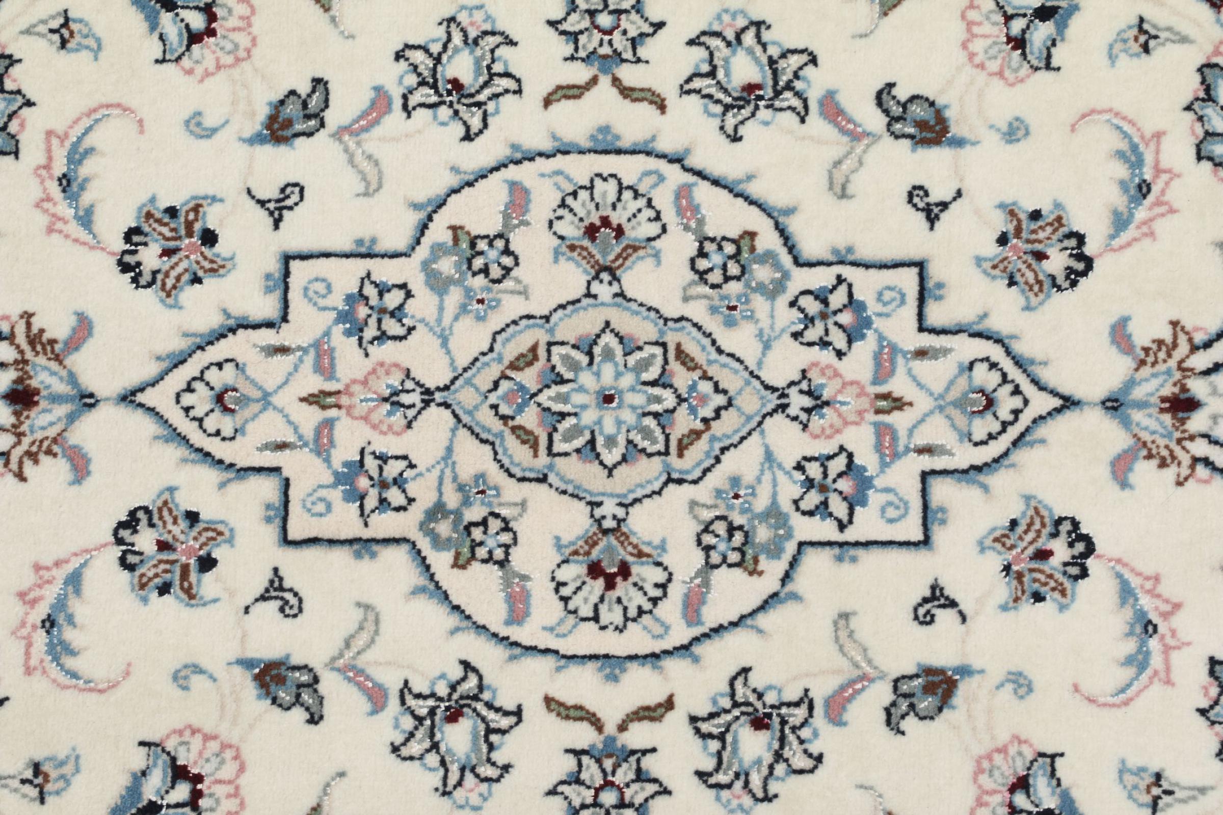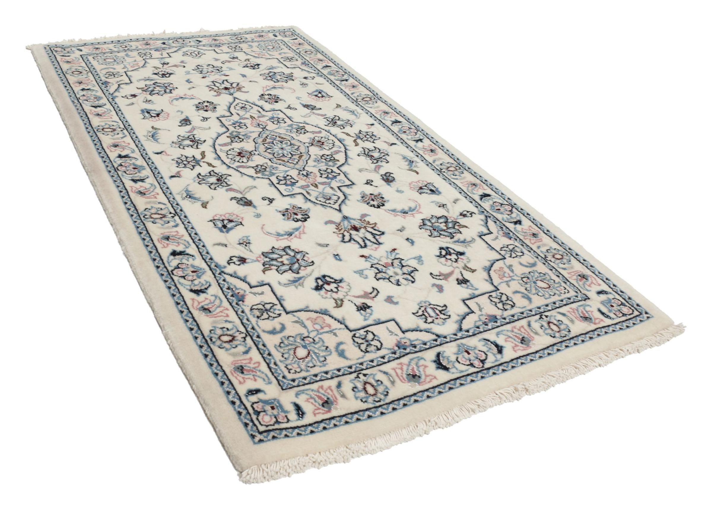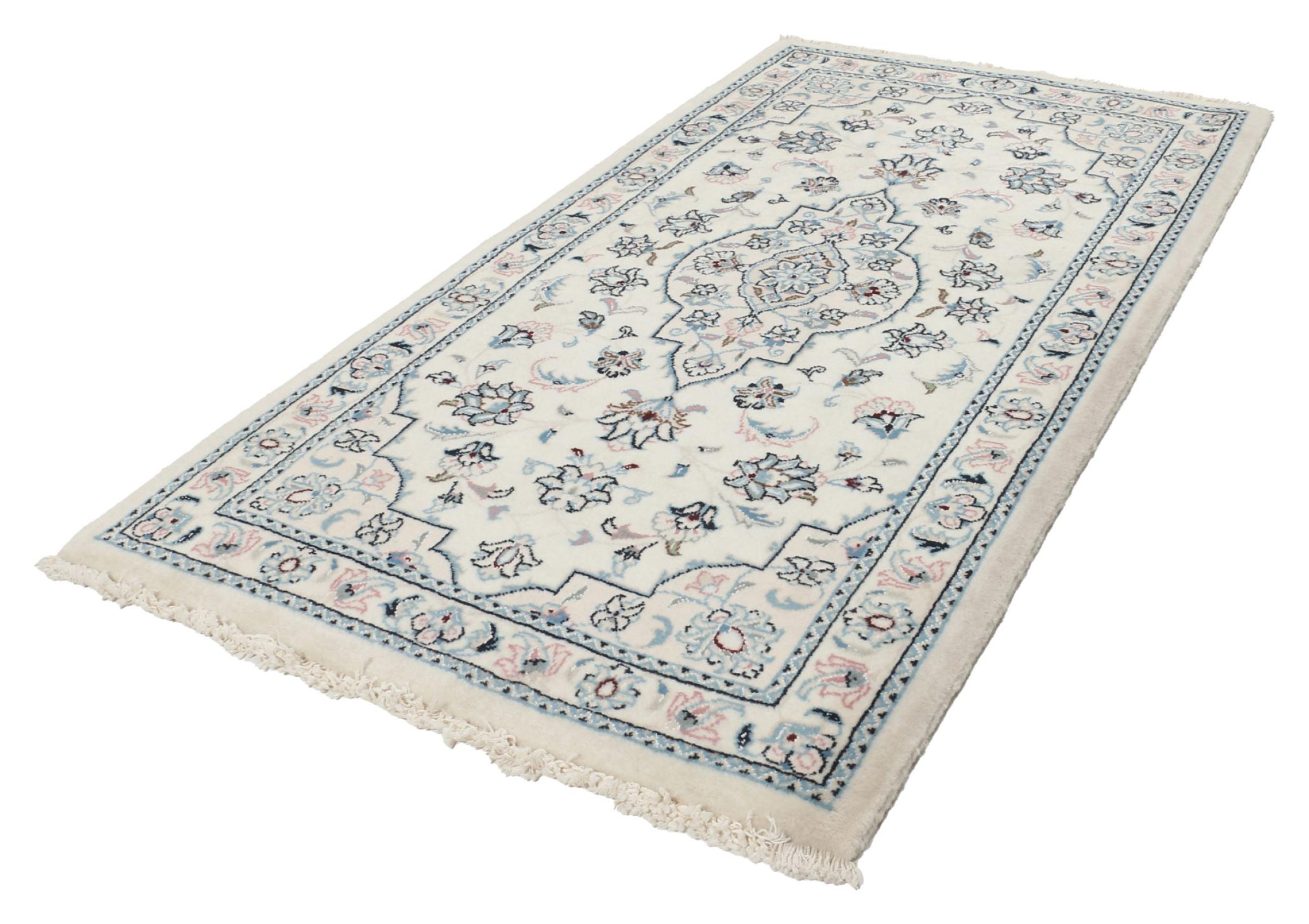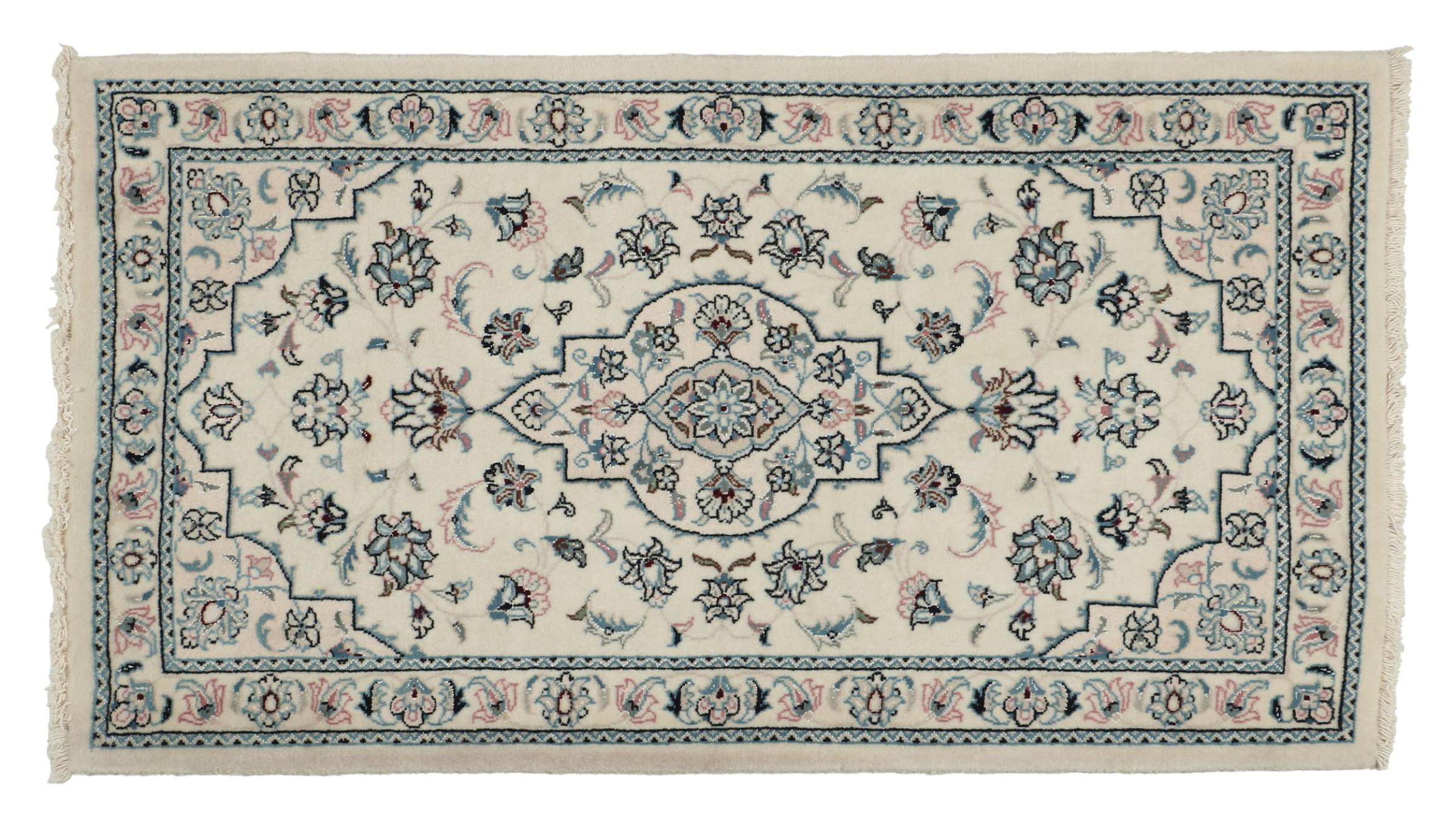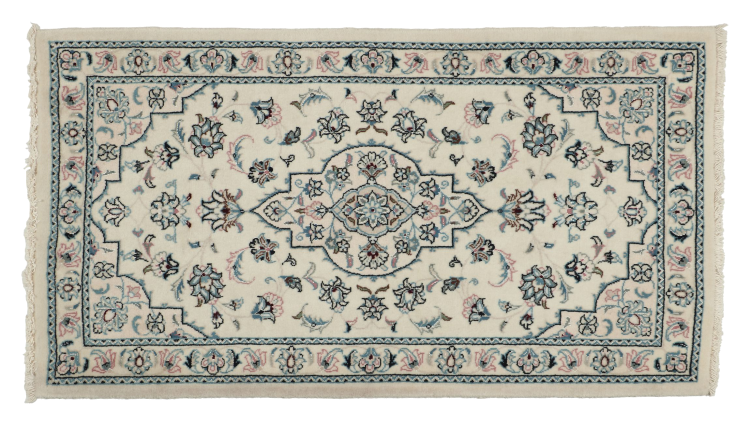 Les tapis de la ville de Nain, à la frontière de l'un des plus grands déserts d'Iran, comptent parmi les plus célèbres tapis persans du monde. Leur design typique est sans équivoque avec des ornements floraux, un médaillon central et des nuances de beige et de rouge ou de bleu. Grâce à leurs désignations 4La, 6La, 9La et 12La, les finesses d'un tapis Nain peuvent être vues d'un seul coup d'œil. Plus le chiffre "La" est bas, plus la densité des nœuds est élevée et donc plus le tapis est fin.