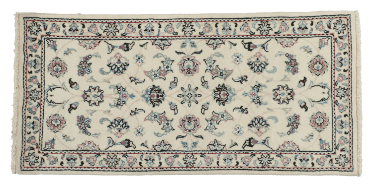 Les tapis de la ville de Nain, à la frontière de l'un des plus grands déserts d'Iran, comptent parmi les plus célèbres tapis persans du monde. Leur design typique est sans équivoque avec des ornements floraux, un médaillon central et des nuances de beige et de rouge ou de bleu. Grâce à leurs désignations 4La, 6La, 9La et 12La, les finesses d'un tapis Nain peuvent être vues d'un seul coup d'œil. Plus le chiffre "La" est bas, plus la densité des nœuds est élevée et donc plus le tapis est fin.