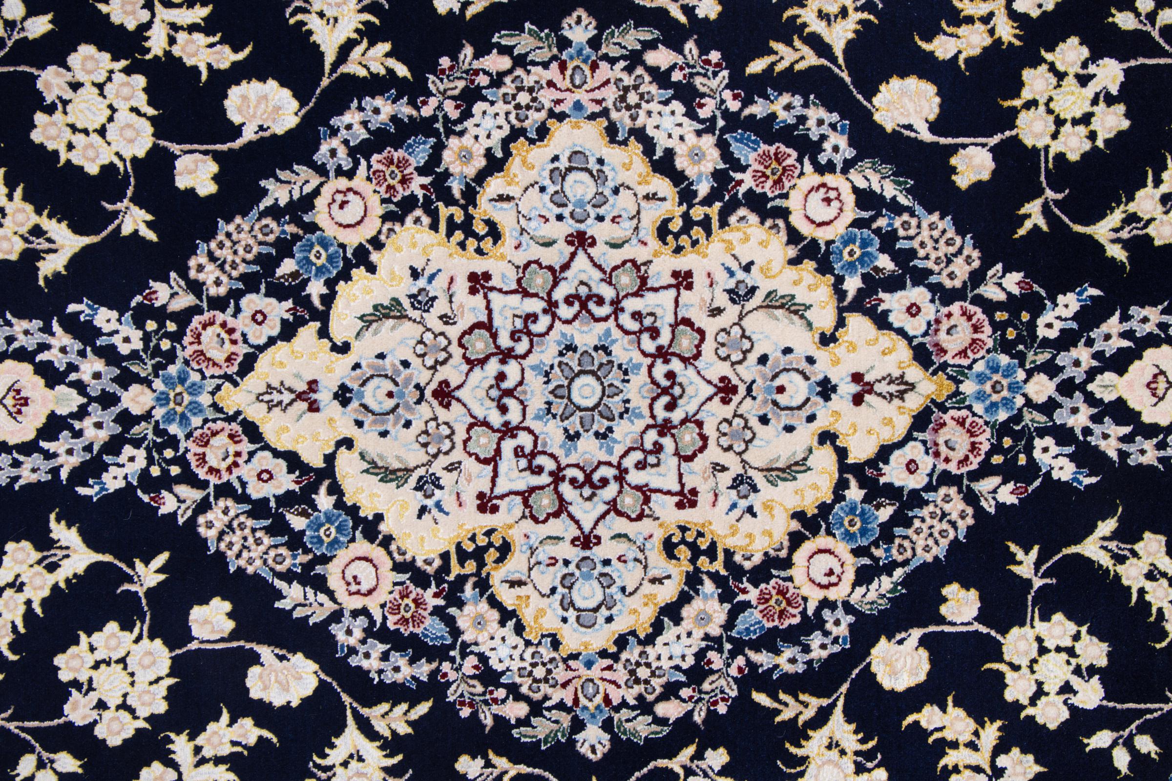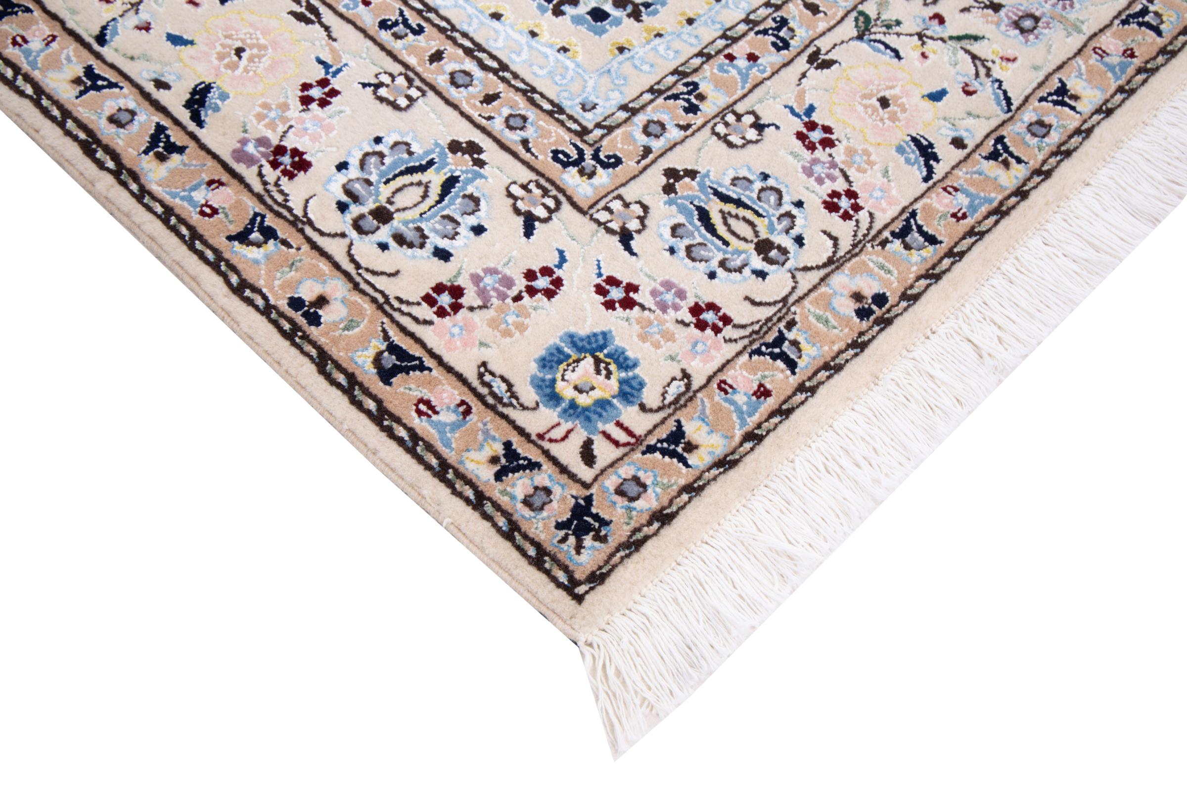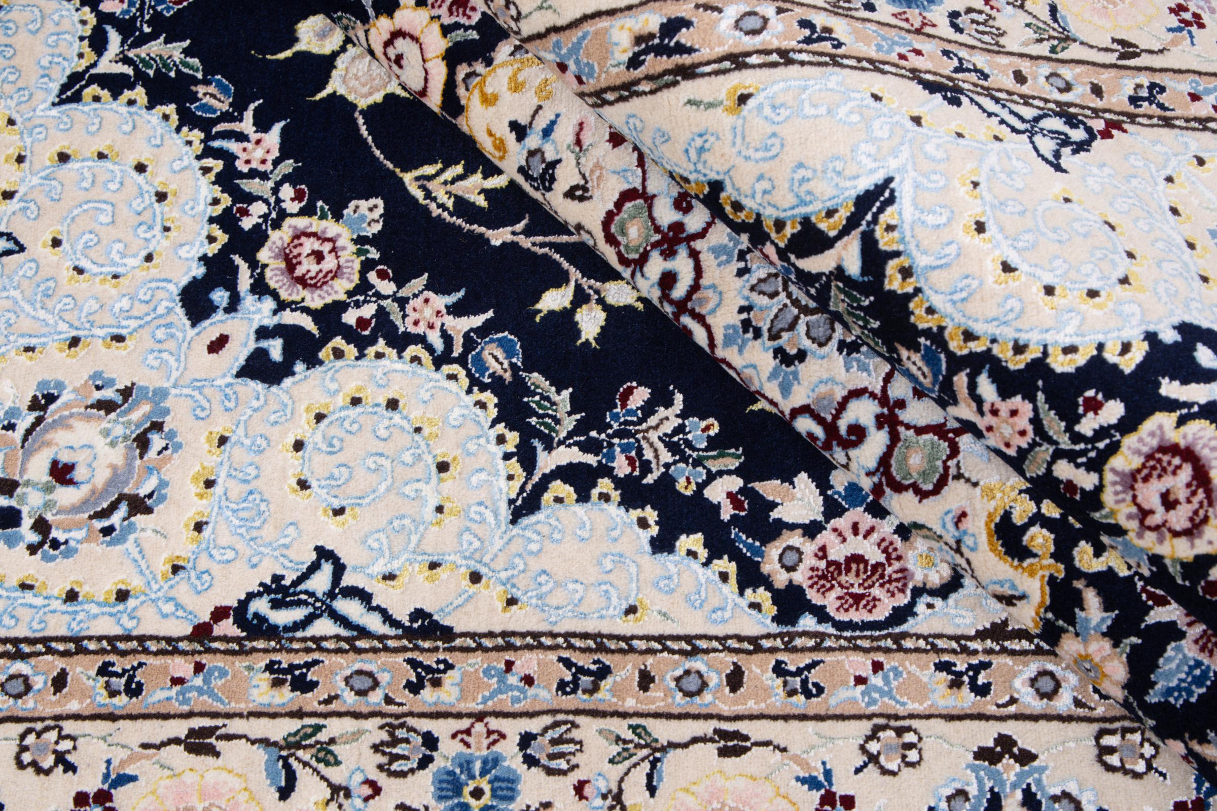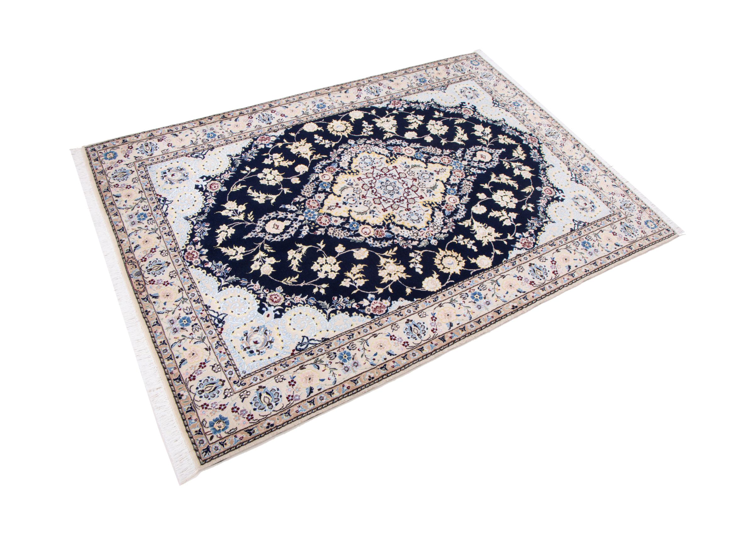 Les tapis de la ville de Nain, à la frontière de l'un des plus grands déserts d'Iran, comptent parmi les plus célèbres tapis persans du monde. Leur design typique est sans équivoque avec des ornements floraux, un médaillon central et des nuances de beige et de rouge ou de bleu. Grâce à leurs désignations 4La, 6La, 9La et 12La, les finesses d'un tapis Nain peuvent être vues d'un seul coup d'œil. Plus le chiffre "La" est bas, plus la densité des nœuds est élevée et donc plus le tapis est fin.