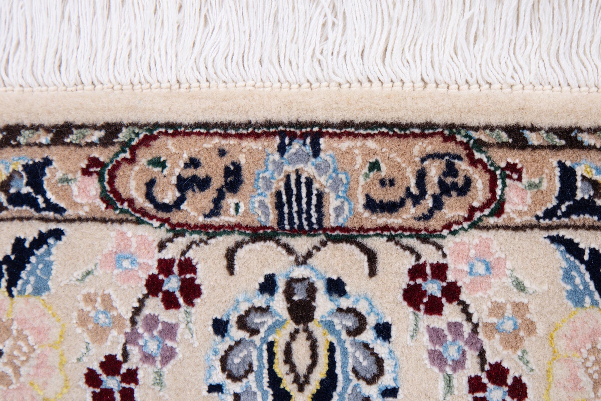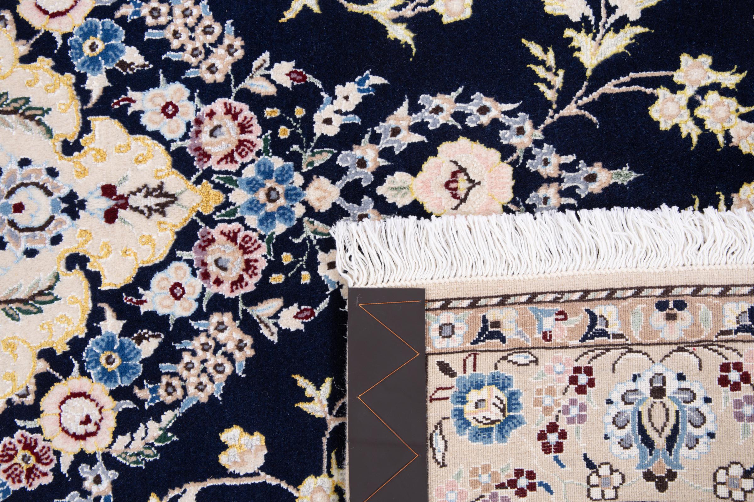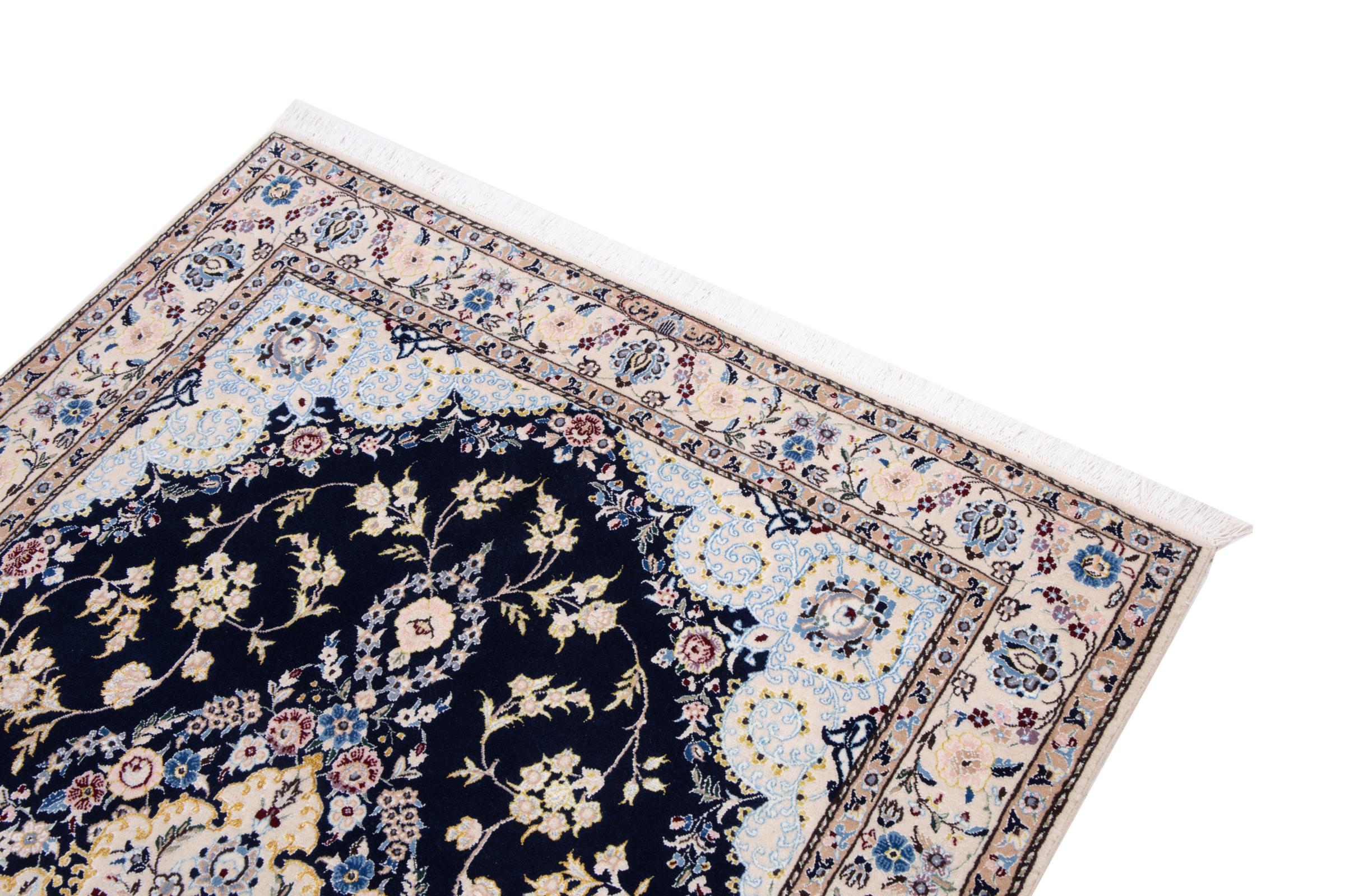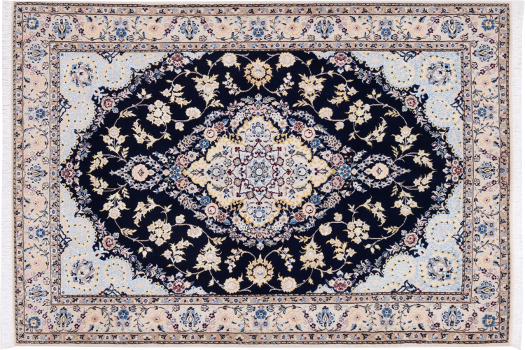 Les tapis de la ville de Nain, à la frontière de l'un des plus grands déserts d'Iran, comptent parmi les plus célèbres tapis persans du monde. Leur design typique est sans équivoque avec des ornements floraux, un médaillon central et des nuances de beige et de rouge ou de bleu. Grâce à leurs désignations 4La, 6La, 9La et 12La, les finesses d'un tapis Nain peuvent être vues d'un seul coup d'œil. Plus le chiffre "La" est bas, plus la densité des nœuds est élevée et donc plus le tapis est fin.