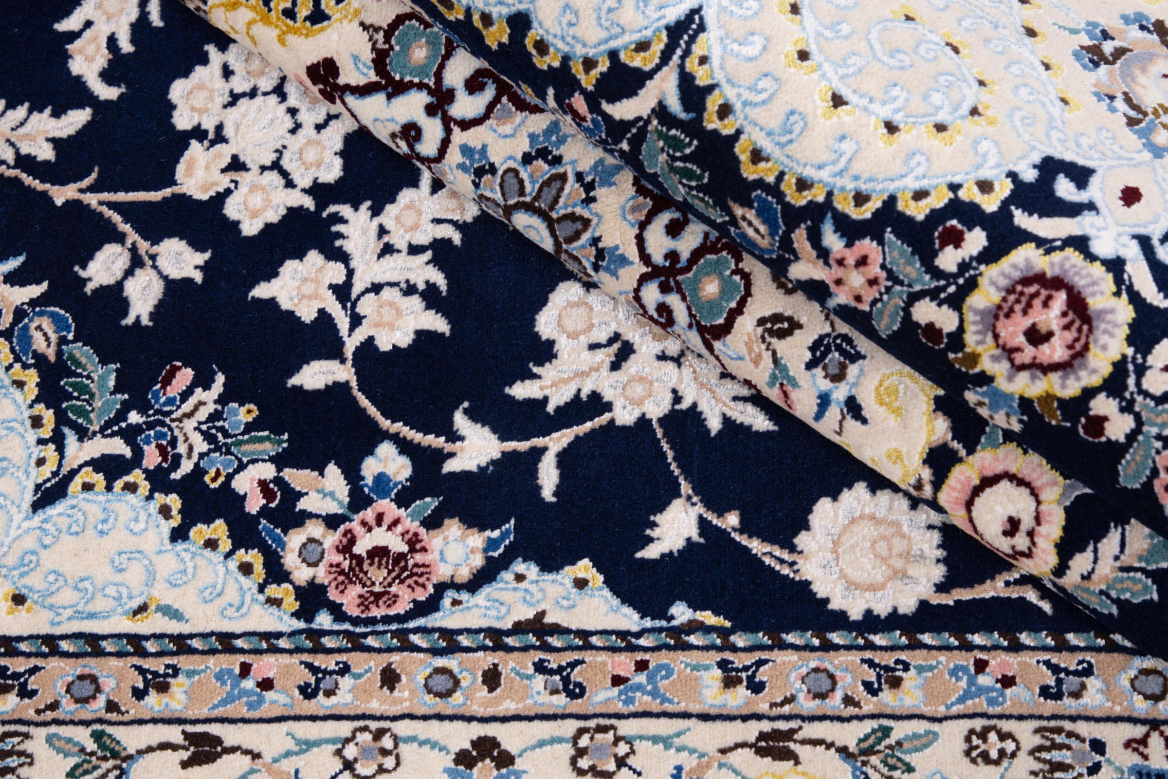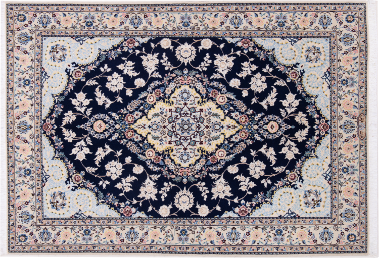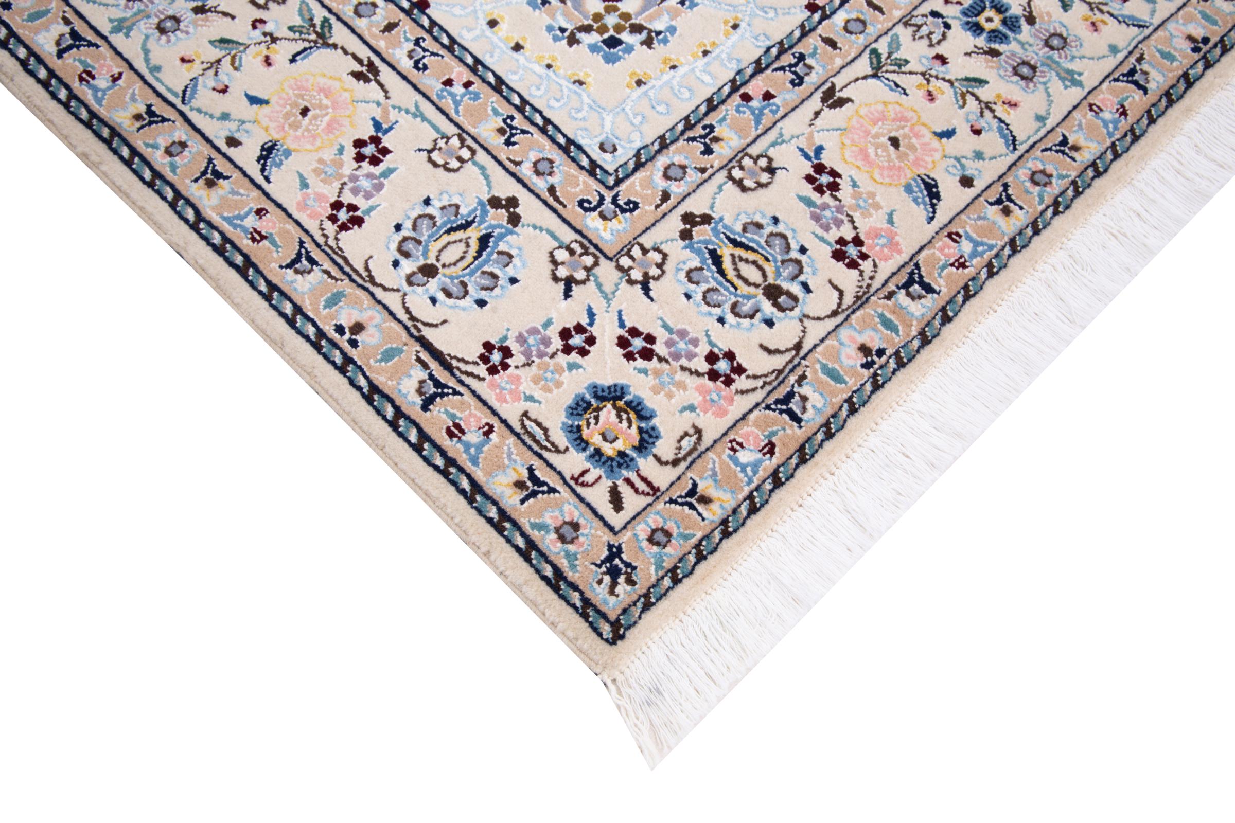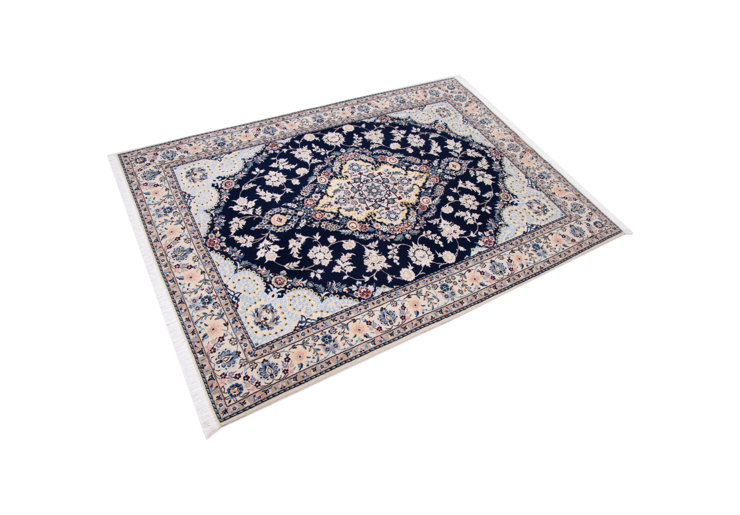 Les tapis de la ville de Nain, à la frontière de l'un des plus grands déserts d'Iran, comptent parmi les plus célèbres tapis persans du monde. Leur design typique est sans équivoque avec des ornements floraux, un médaillon central et des nuances de beige et de rouge ou de bleu. Grâce à leurs désignations 4La, 6La, 9La et 12La, les finesses d'un tapis Nain peuvent être vues d'un seul coup d'œil. Plus le chiffre "La" est bas, plus la densité des nœuds est élevée et donc plus le tapis est fin.