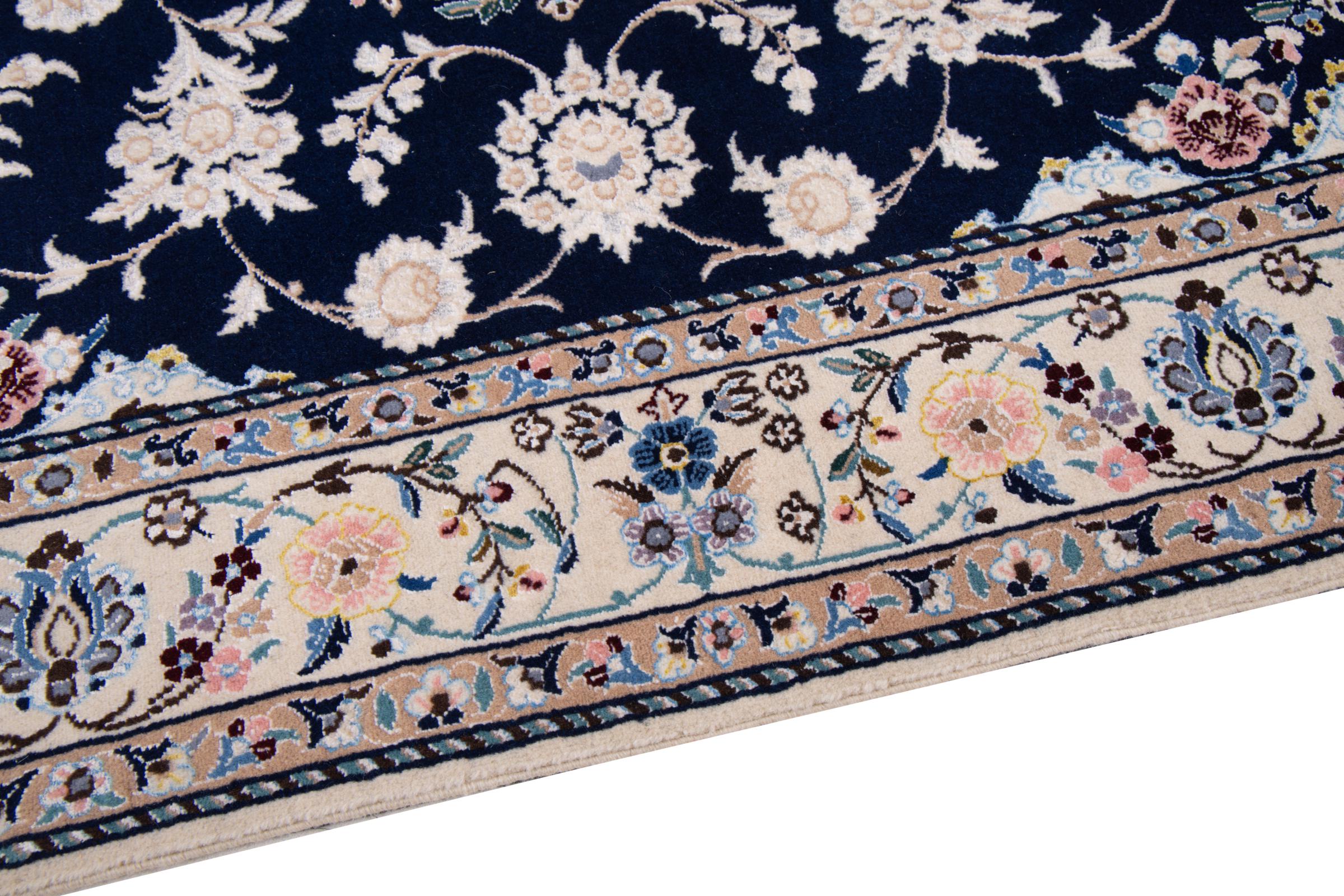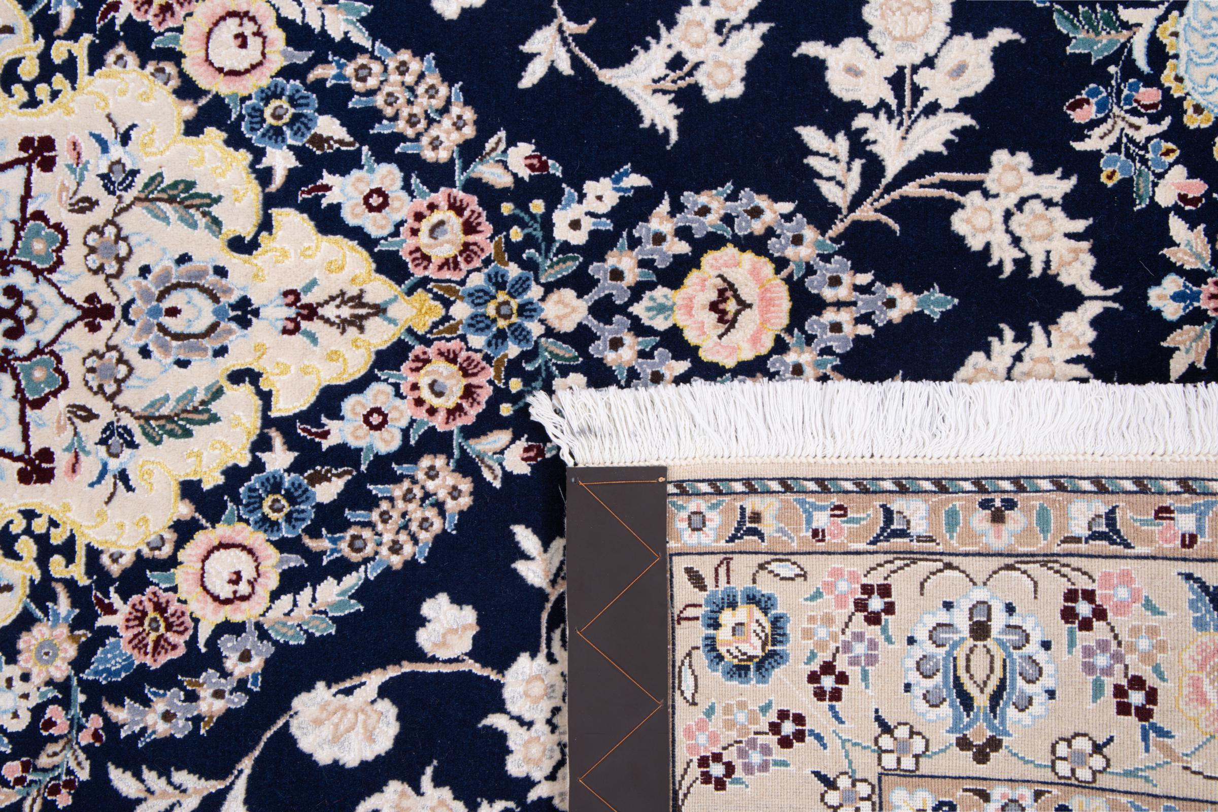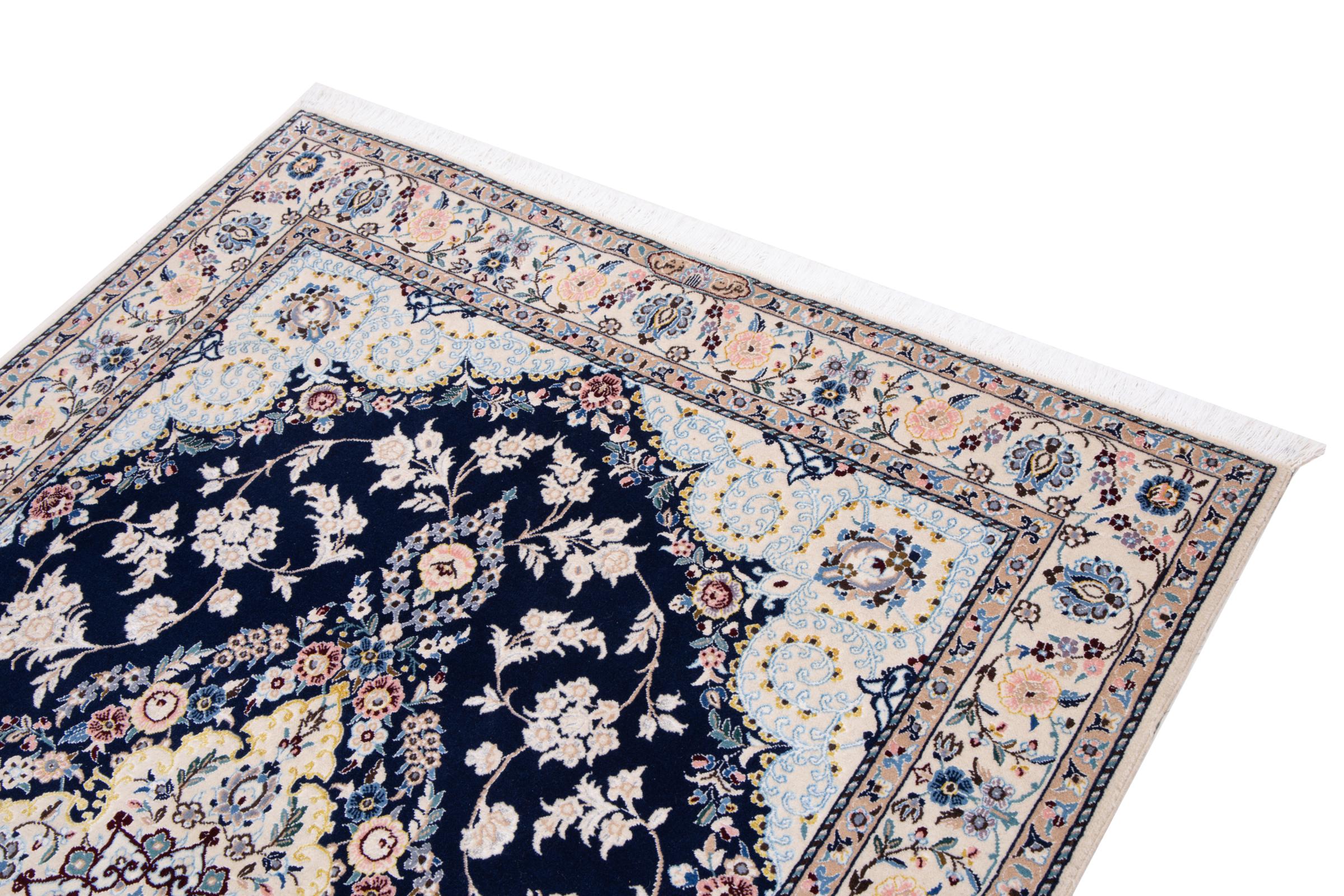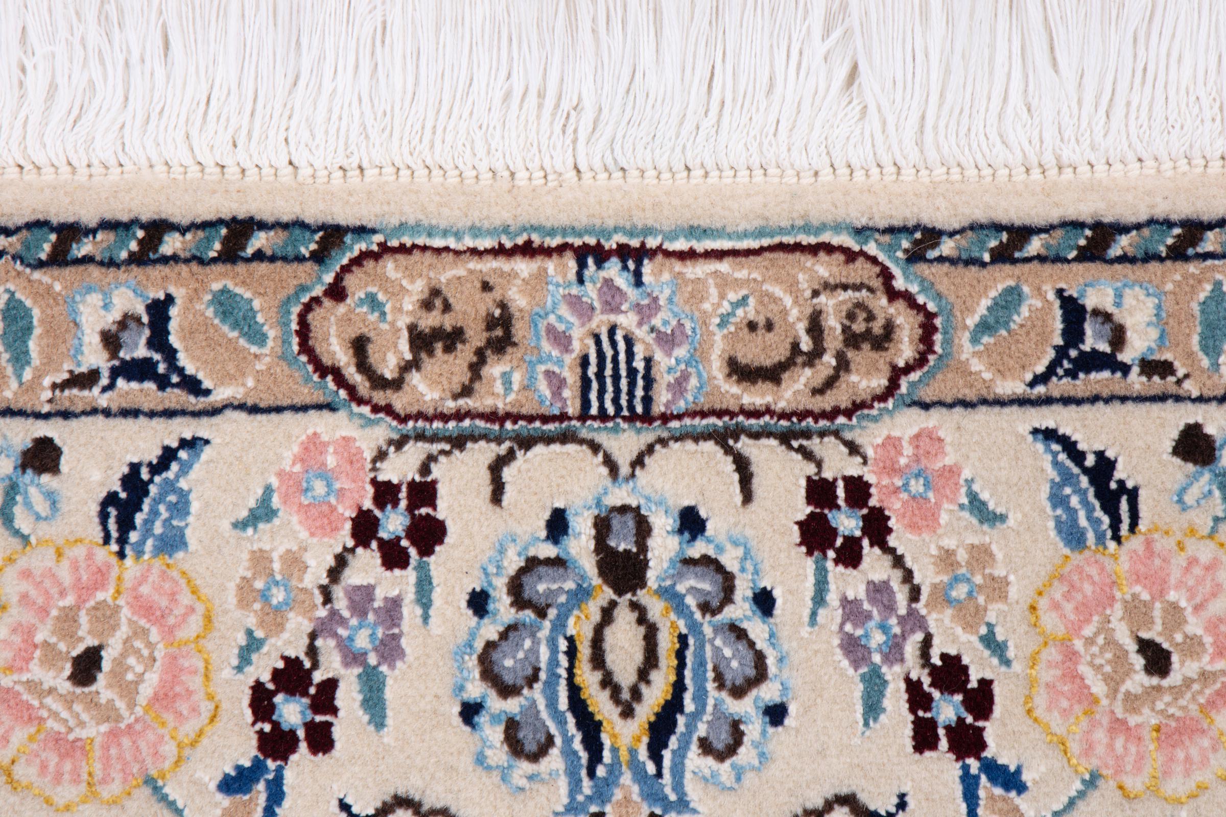 Les tapis de la ville de Nain, à la frontière de l'un des plus grands déserts d'Iran, comptent parmi les plus célèbres tapis persans du monde. Leur design typique est sans équivoque avec des ornements floraux, un médaillon central et des nuances de beige et de rouge ou de bleu. Grâce à leurs désignations 4La, 6La, 9La et 12La, les finesses d'un tapis Nain peuvent être vues d'un seul coup d'œil. Plus le chiffre "La" est bas, plus la densité des nœuds est élevée et donc plus le tapis est fin.