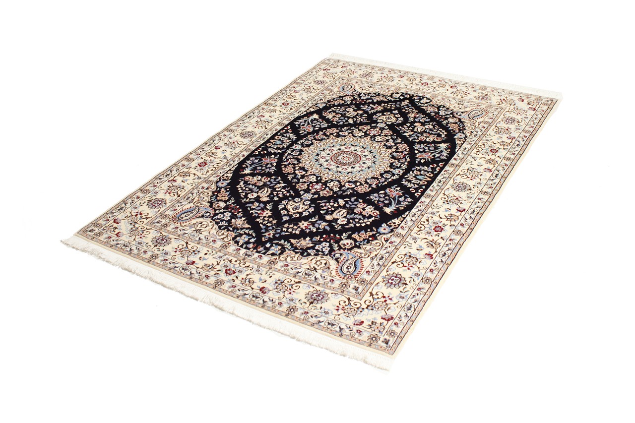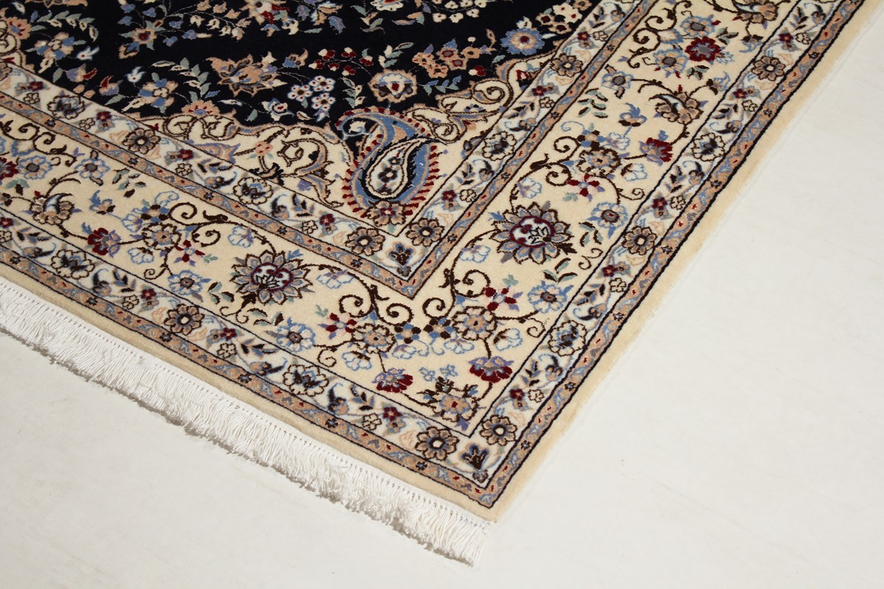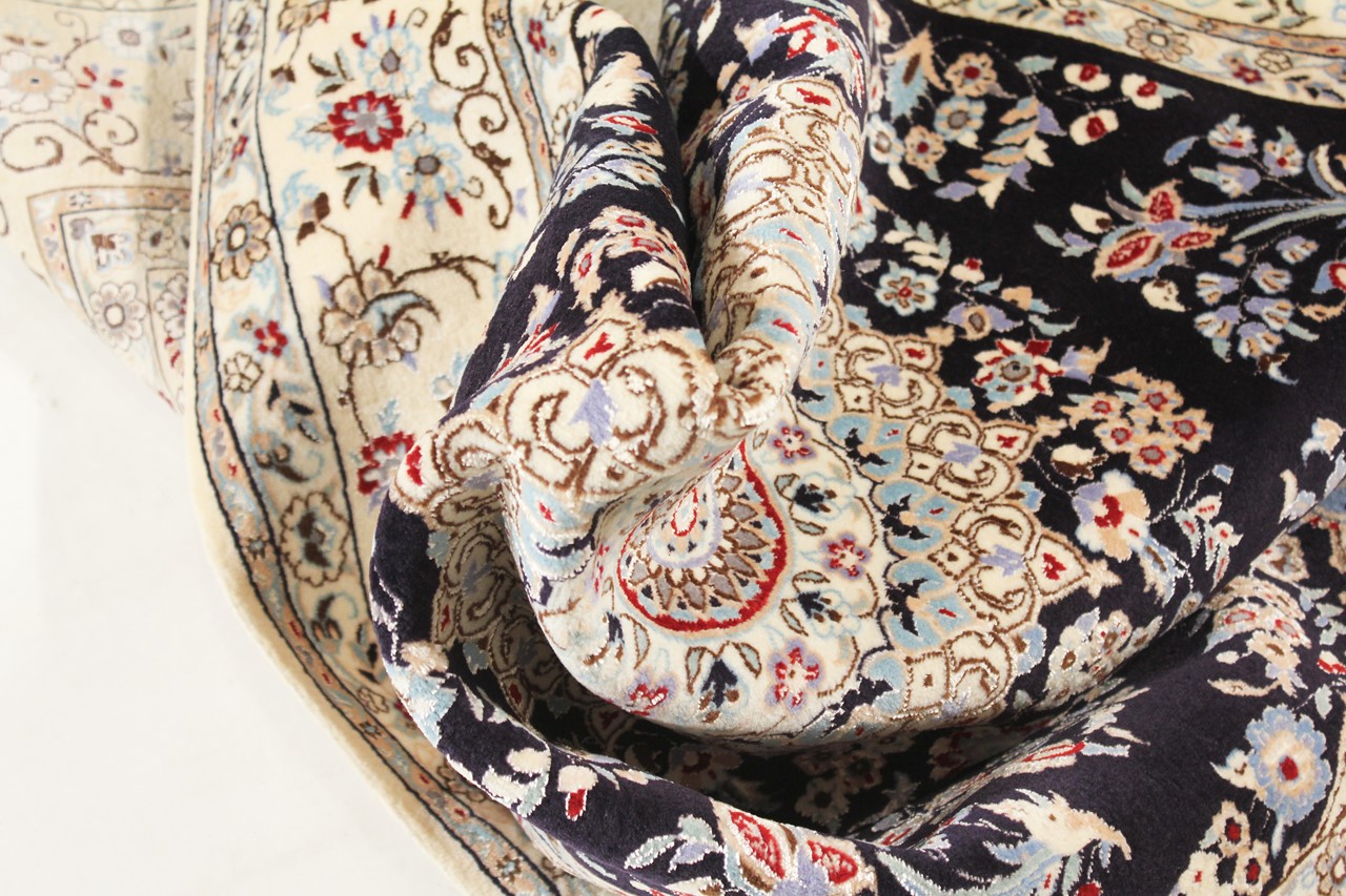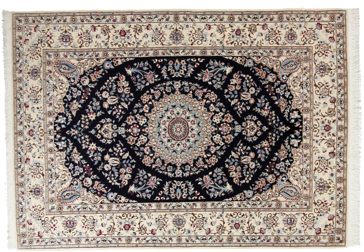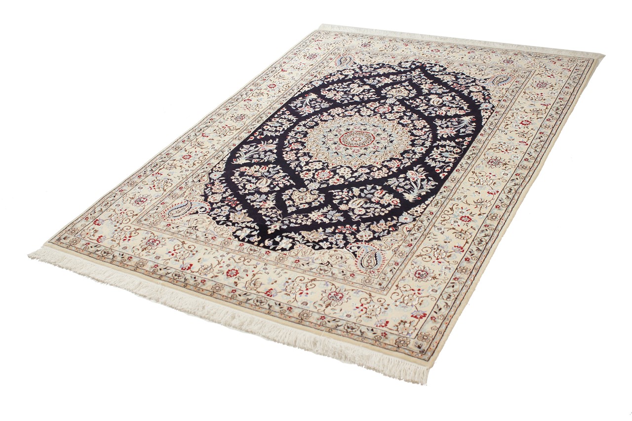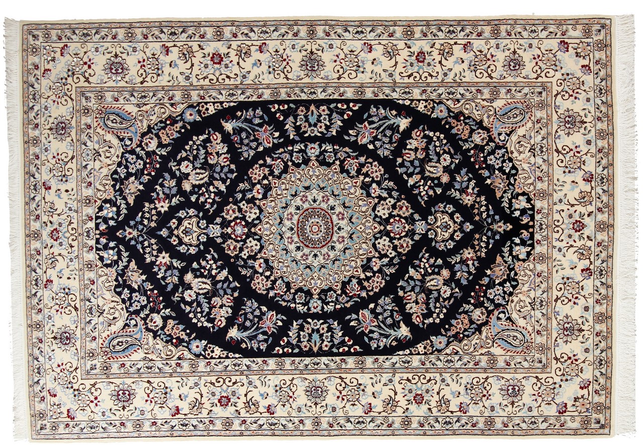 Les tapis de la ville de Nain, à la frontière de l'un des plus grands déserts d'Iran, comptent parmi les plus célèbres tapis persans du monde. Leur design typique est sans équivoque avec des ornements floraux, un médaillon central et des nuances de beige et de rouge ou de bleu. Grâce à leurs désignations 4La, 6La, 9La et 12La, les finesses d'un tapis Nain peuvent être vues d'un seul coup d'œil. Plus le chiffre "La" est bas, plus la densité des nœuds est élevée et donc plus le tapis est fin.