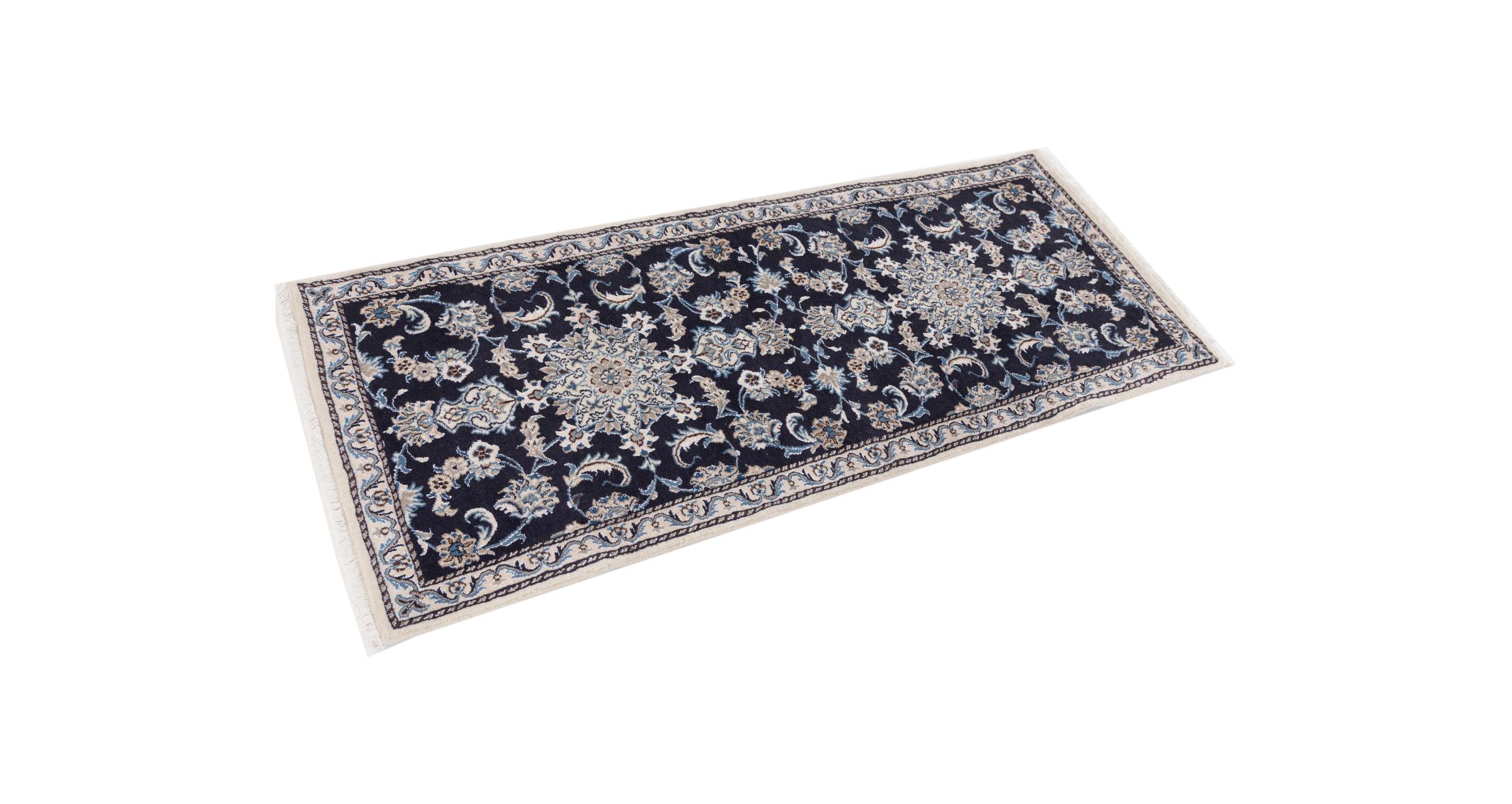 Réf. Article: 2939460021633 Taille: 200x80 cm Épaisseur: ap. 12 mm Densité de nouage: 200 000 - 250 000 / m² Fabrication: Noué à la main Velours: Laine avec de la soie Chaîne: Coton Origine: Persie / Iran Âge: Nouveau Poids: ap. 6 kg Nombre en stock: Unique - Seulement 1 en stock