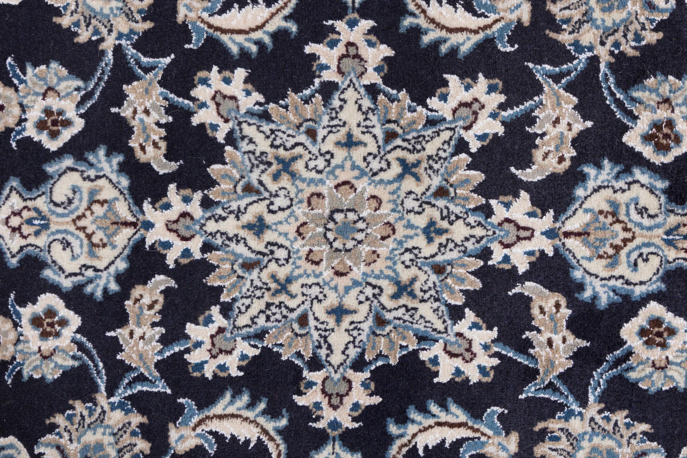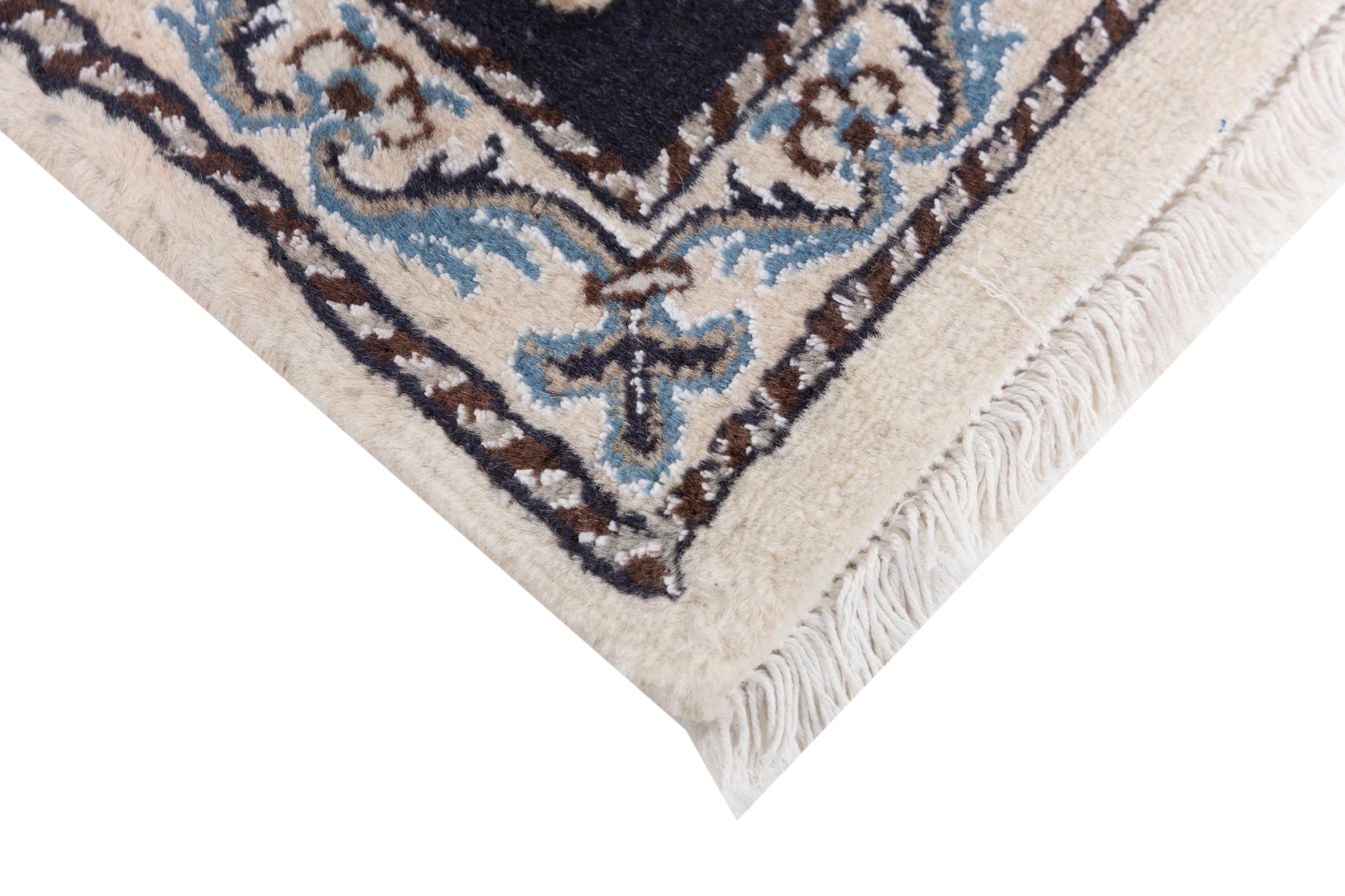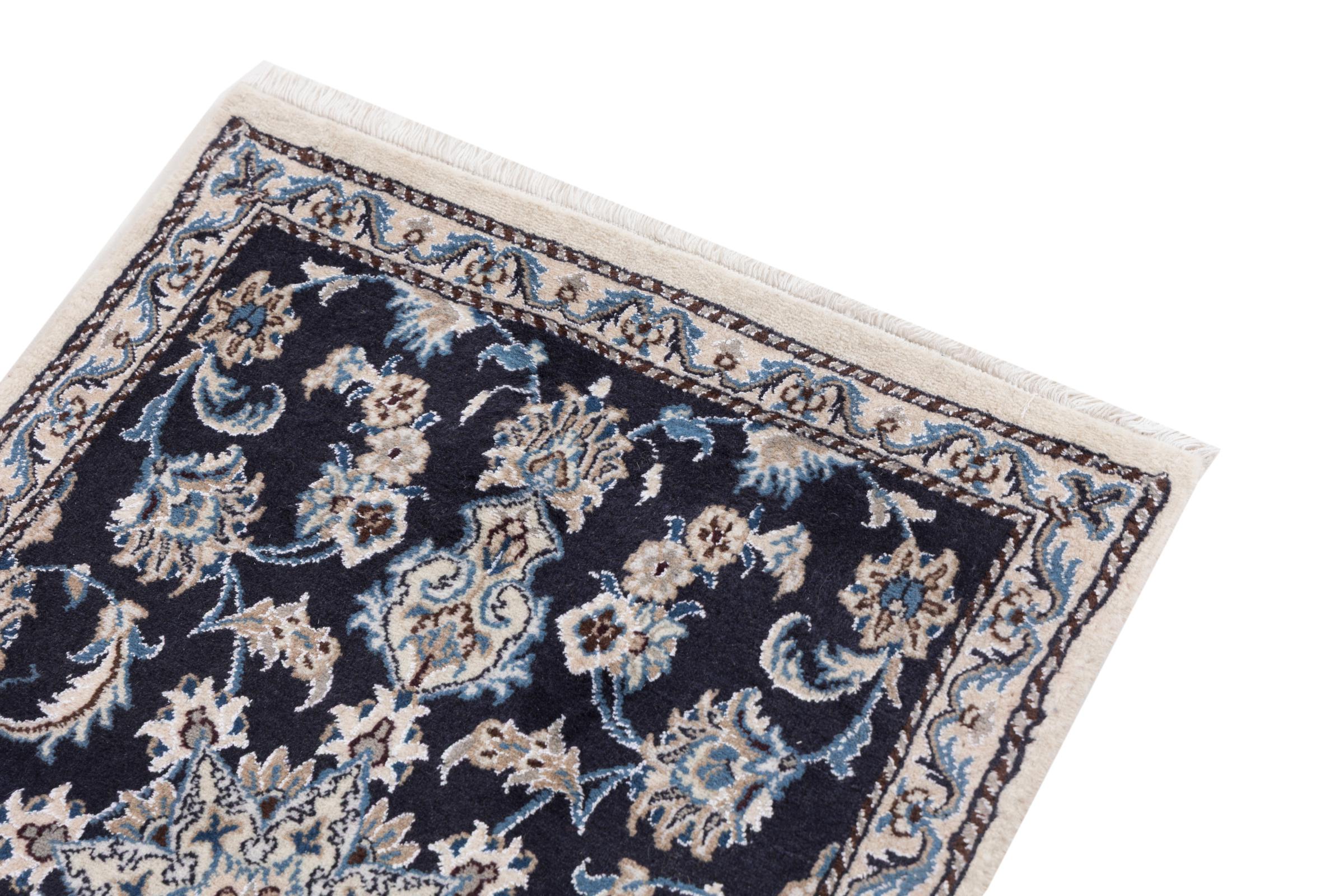 Les tapis de la ville de Nain, à la frontière de l'un des plus grands déserts d'Iran, comptent parmi les plus célèbres tapis persans du monde. Leur design typique est sans équivoque avec des ornements floraux, un médaillon central et des nuances de beige et de rouge ou de bleu. Grâce à leurs désignations 4La, 6La, 9La et 12La, les finesses d'un tapis Nain peuvent être vues d'un seul coup d'œil. Plus le chiffre "La" est bas, plus la densité des nœuds est élevée et donc plus le tapis est fin.