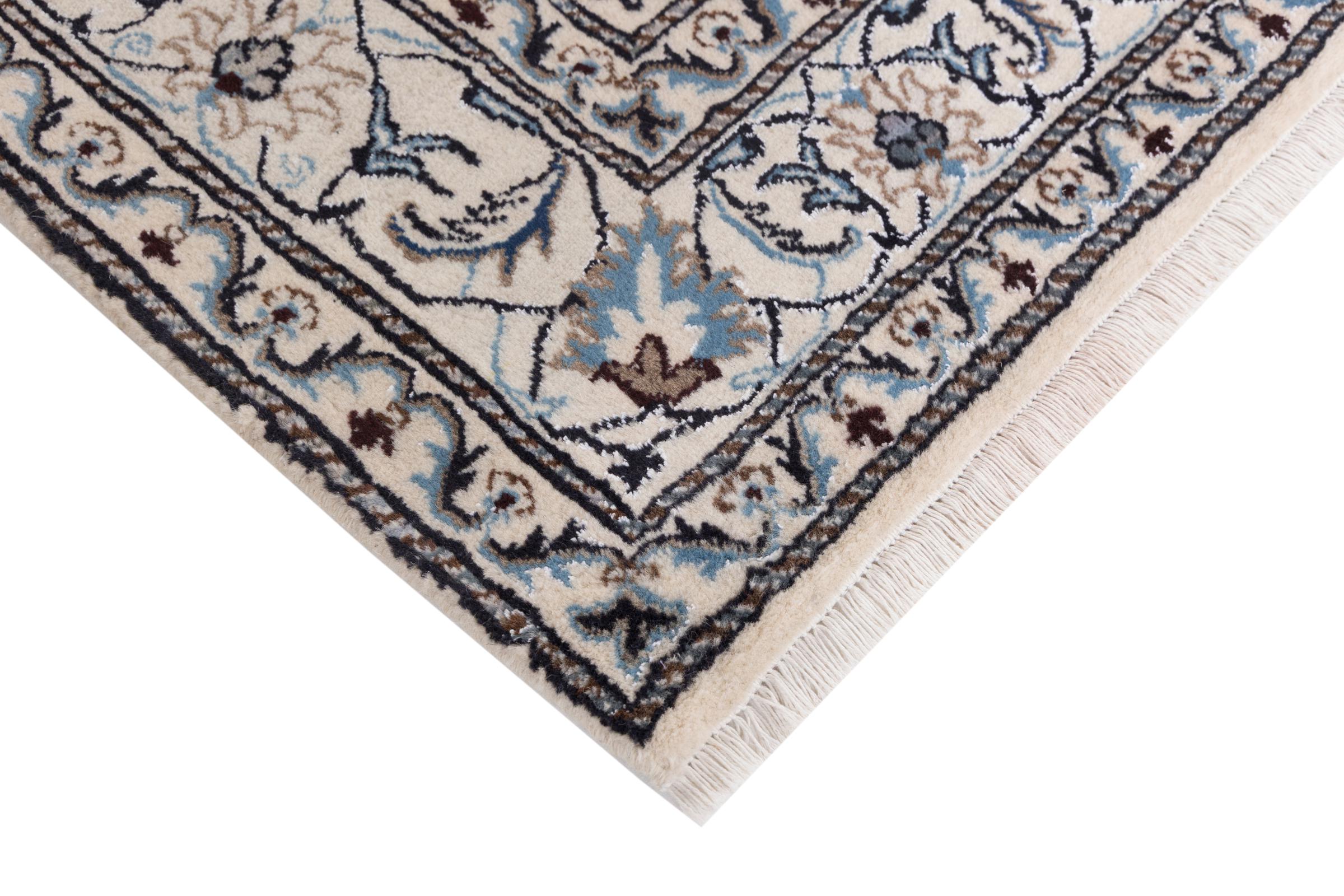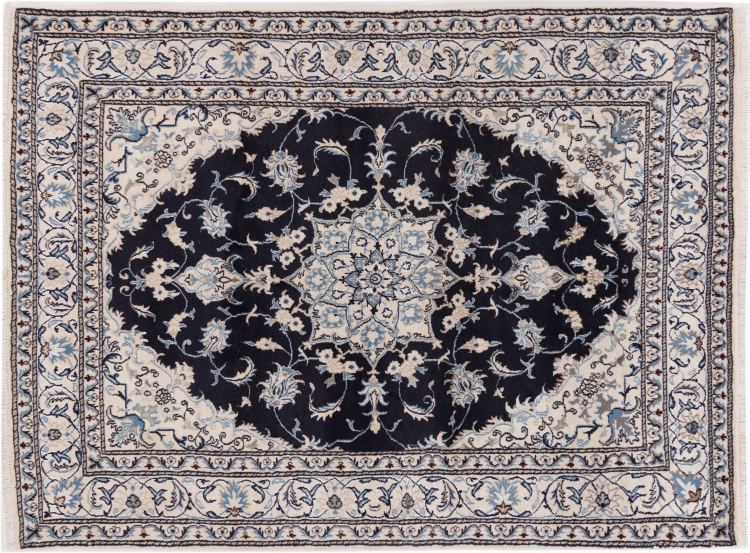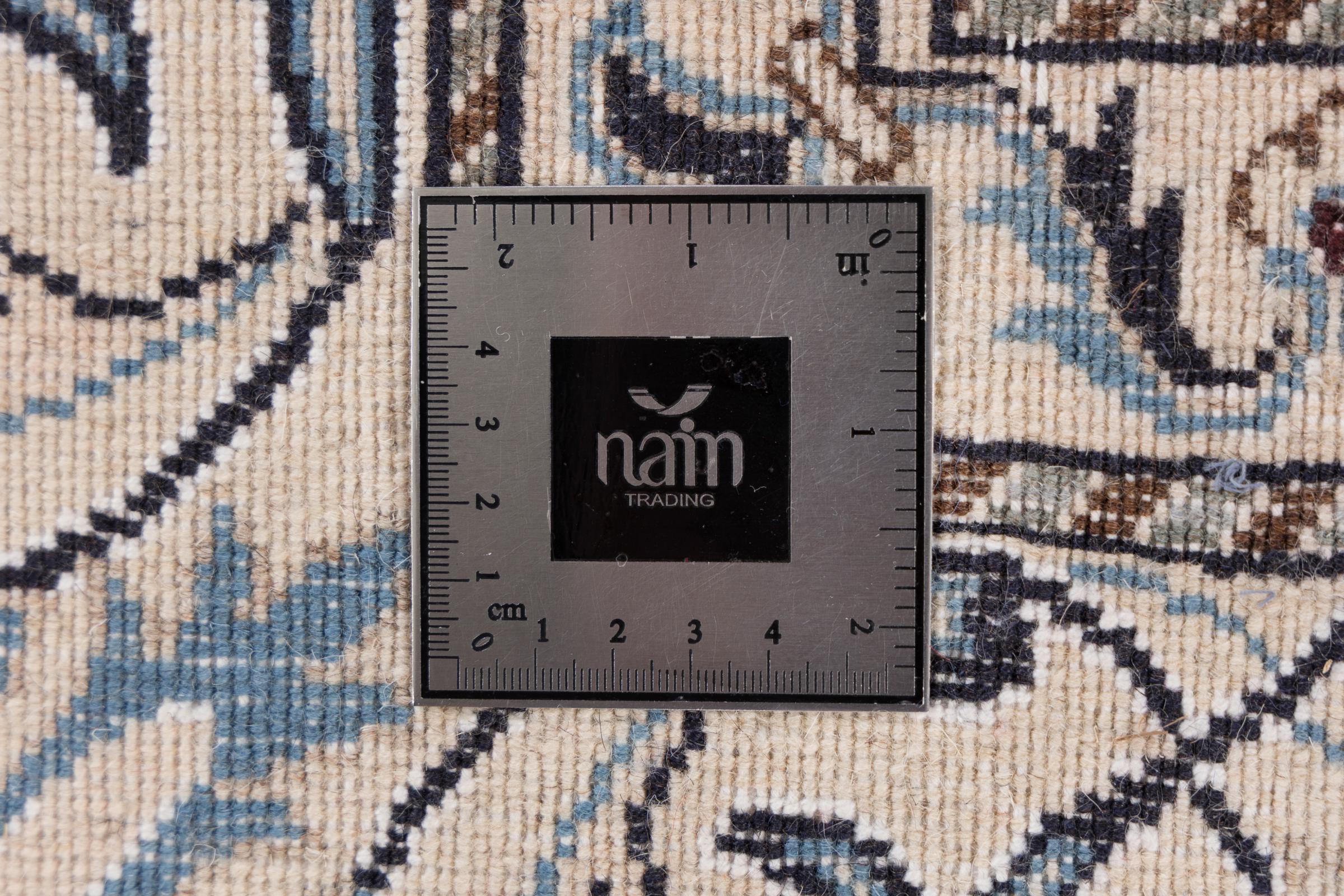 Les tapis de la ville de Nain, à la frontière de l'un des plus grands déserts d'Iran, comptent parmi les plus célèbres tapis persans du monde. Leur design typique est sans équivoque avec des ornements floraux, un médaillon central et des nuances de beige et de rouge ou de bleu. Grâce à leurs désignations 4La, 6La, 9La et 12La, les finesses d'un tapis Nain peuvent être vues d'un seul coup d'œil. Plus le chiffre "La" est bas, plus la densité des nœuds est élevée et donc plus le tapis est fin.