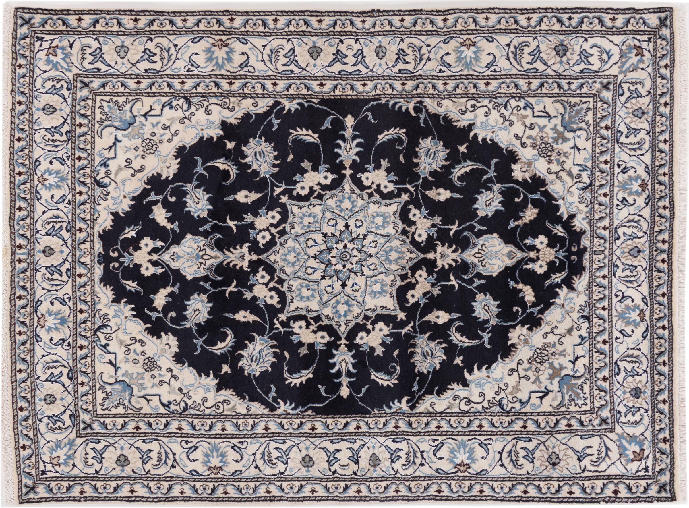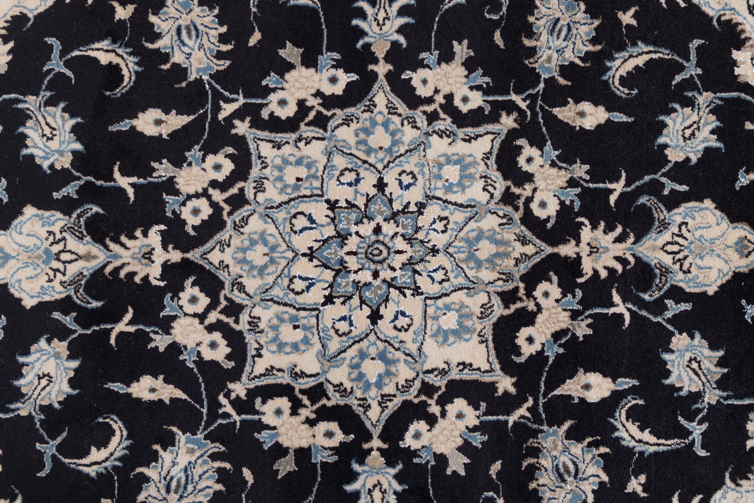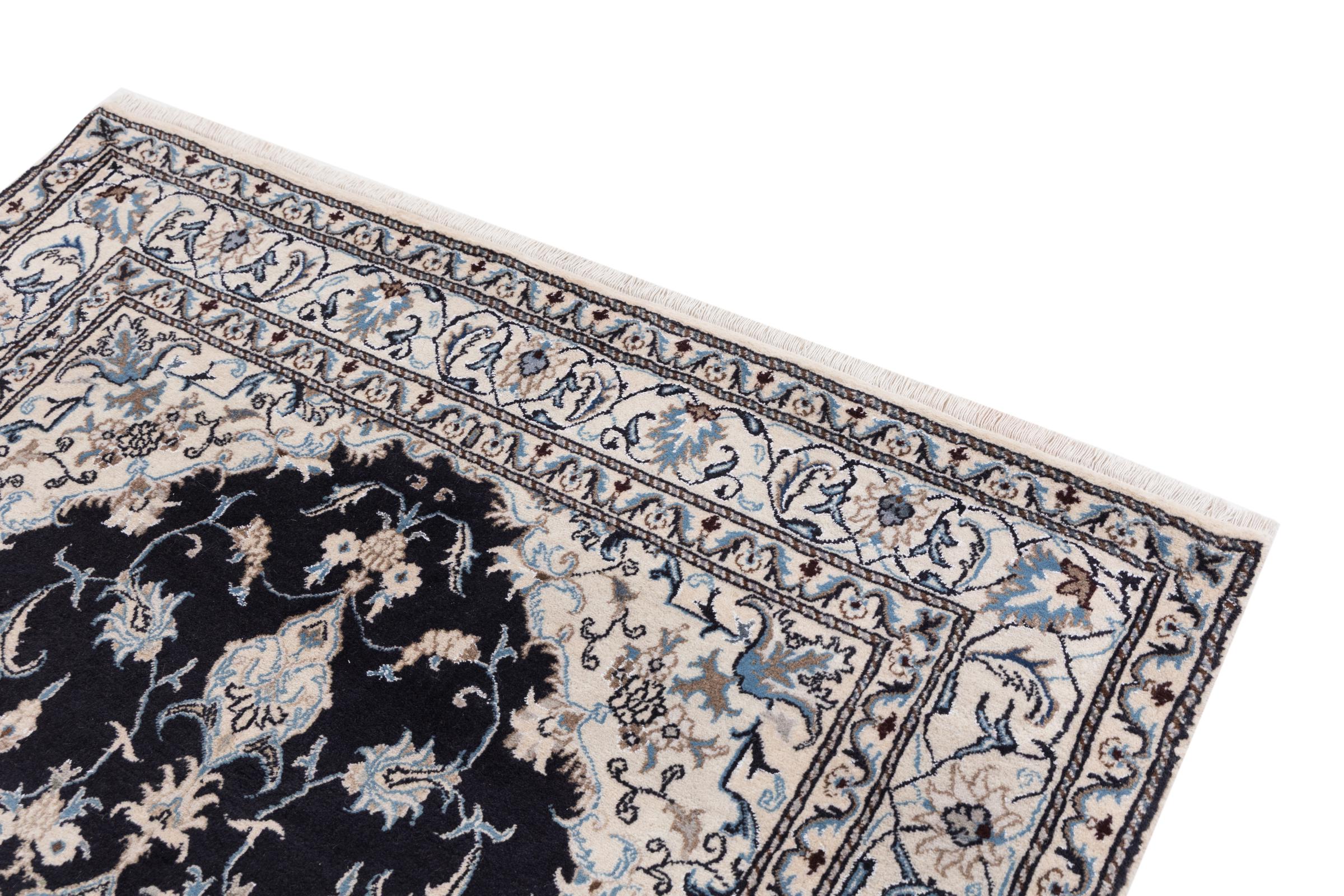 Les tapis de la ville de Nain, à la frontière de l'un des plus grands déserts d'Iran, comptent parmi les plus célèbres tapis persans du monde. Leur design typique est sans équivoque avec des ornements floraux, un médaillon central et des nuances de beige et de rouge ou de bleu. Grâce à leurs désignations 4La, 6La, 9La et 12La, les finesses d'un tapis Nain peuvent être vues d'un seul coup d'œil. Plus le chiffre "La" est bas, plus la densité des nœuds est élevée et donc plus le tapis est fin.