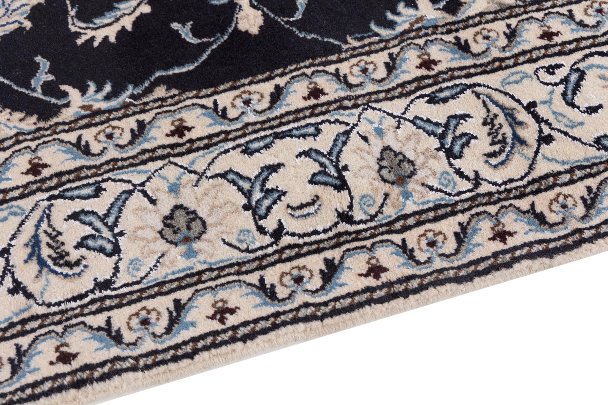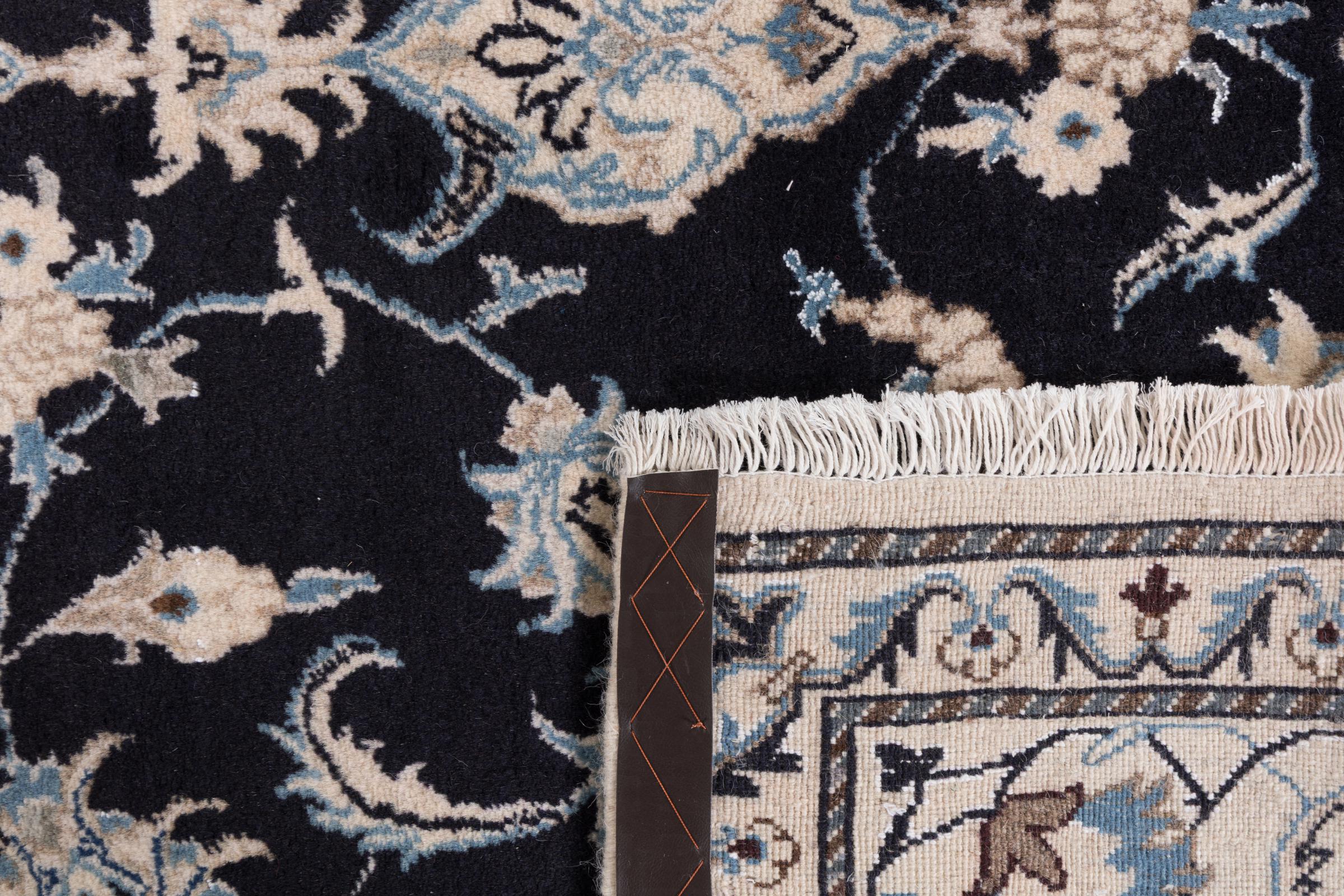 Ce tapis Nain appartient à la classe 12La. Il est élégant et précieux dans sa couleur typique des tapis Nain. Ce tapis persan a été tissé à la main dans la petite ville appelée Nain, qui réside près de la frontière ouest du désert Dascht – e – Kavir, à partir de laine de qualité supérieure et de soie naturelle.