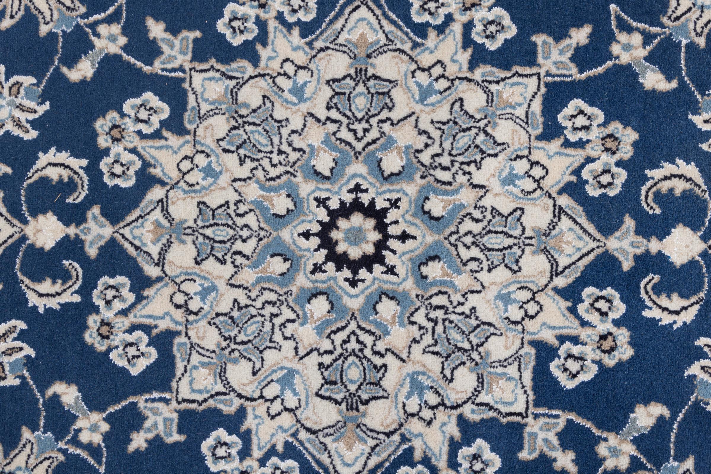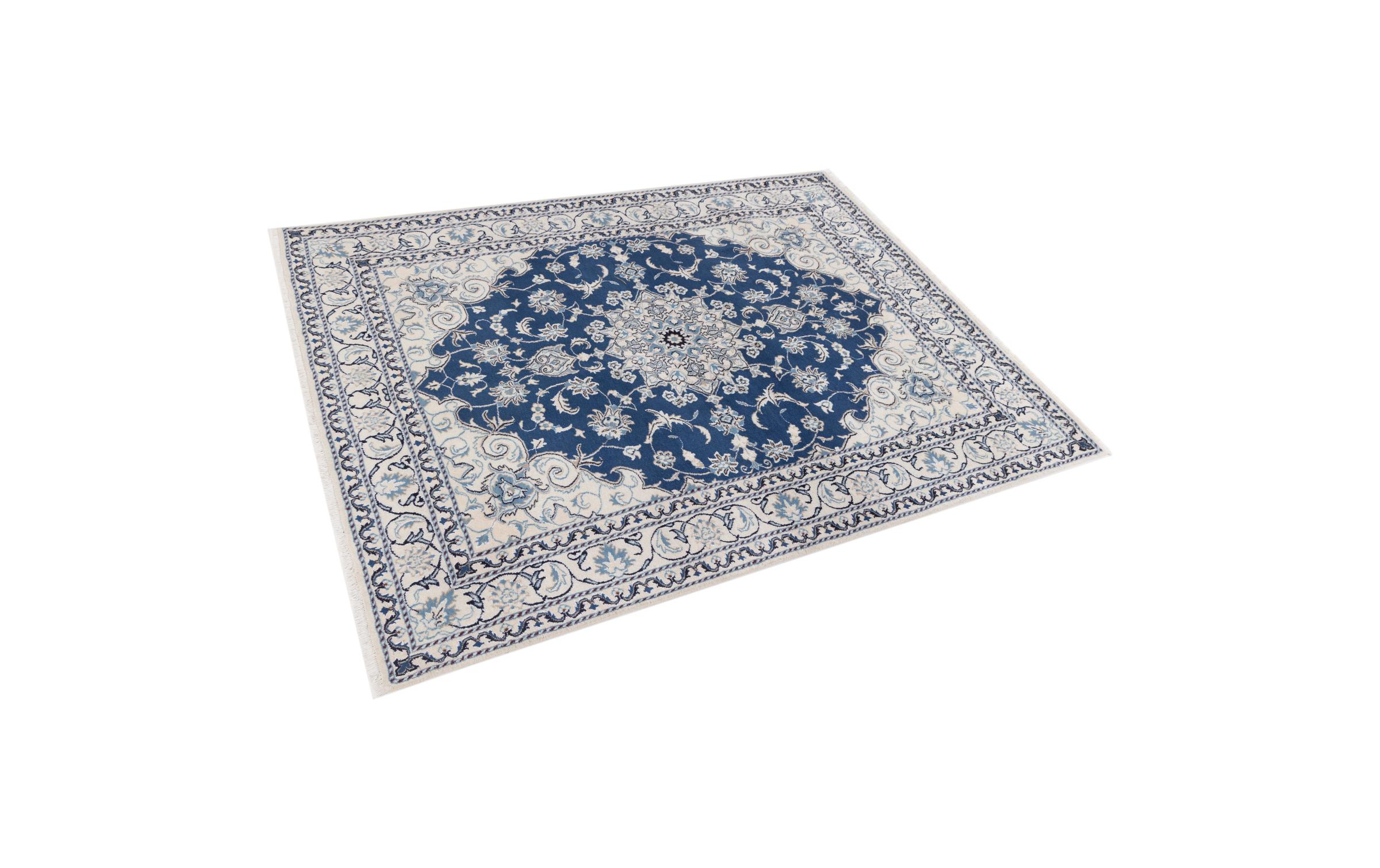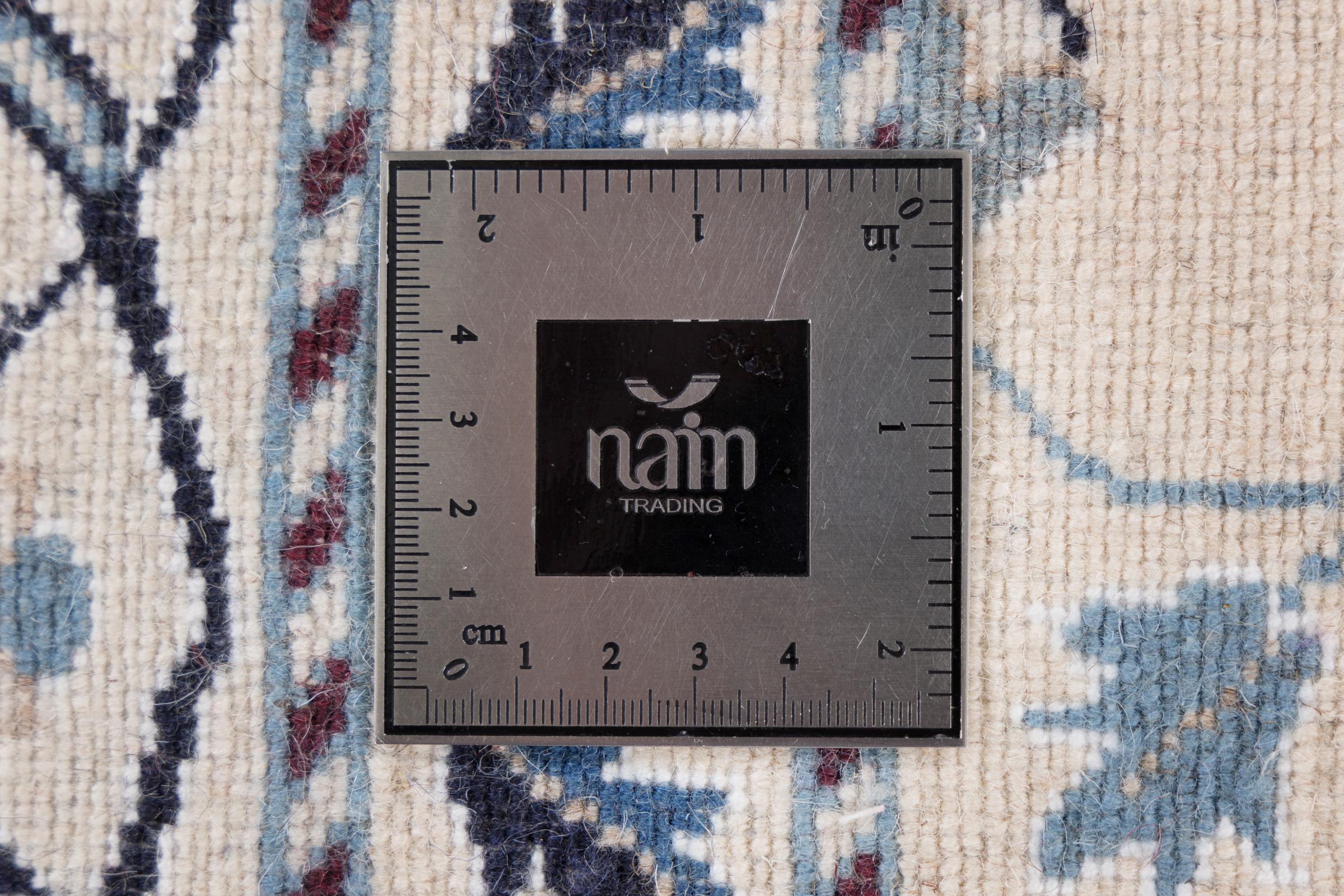 Les tapis de la ville de Nain, à la frontière de l'un des plus grands déserts d'Iran, comptent parmi les plus célèbres tapis persans du monde. Leur design typique est sans équivoque avec des ornements floraux, un médaillon central et des nuances de beige et de rouge ou de bleu. Grâce à leurs désignations 4La, 6La, 9La et 12La, les finesses d'un tapis Nain peuvent être vues d'un seul coup d'œil. Plus le chiffre "La" est bas, plus la densité des nœuds est élevée et donc plus le tapis est fin.