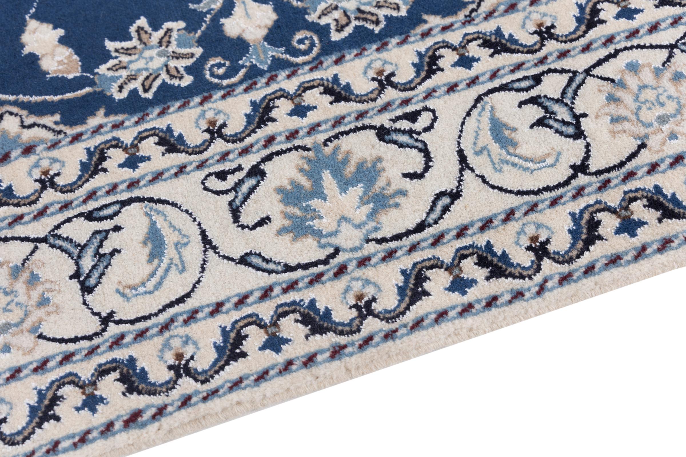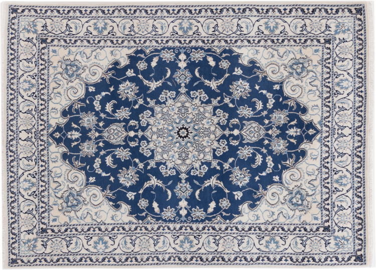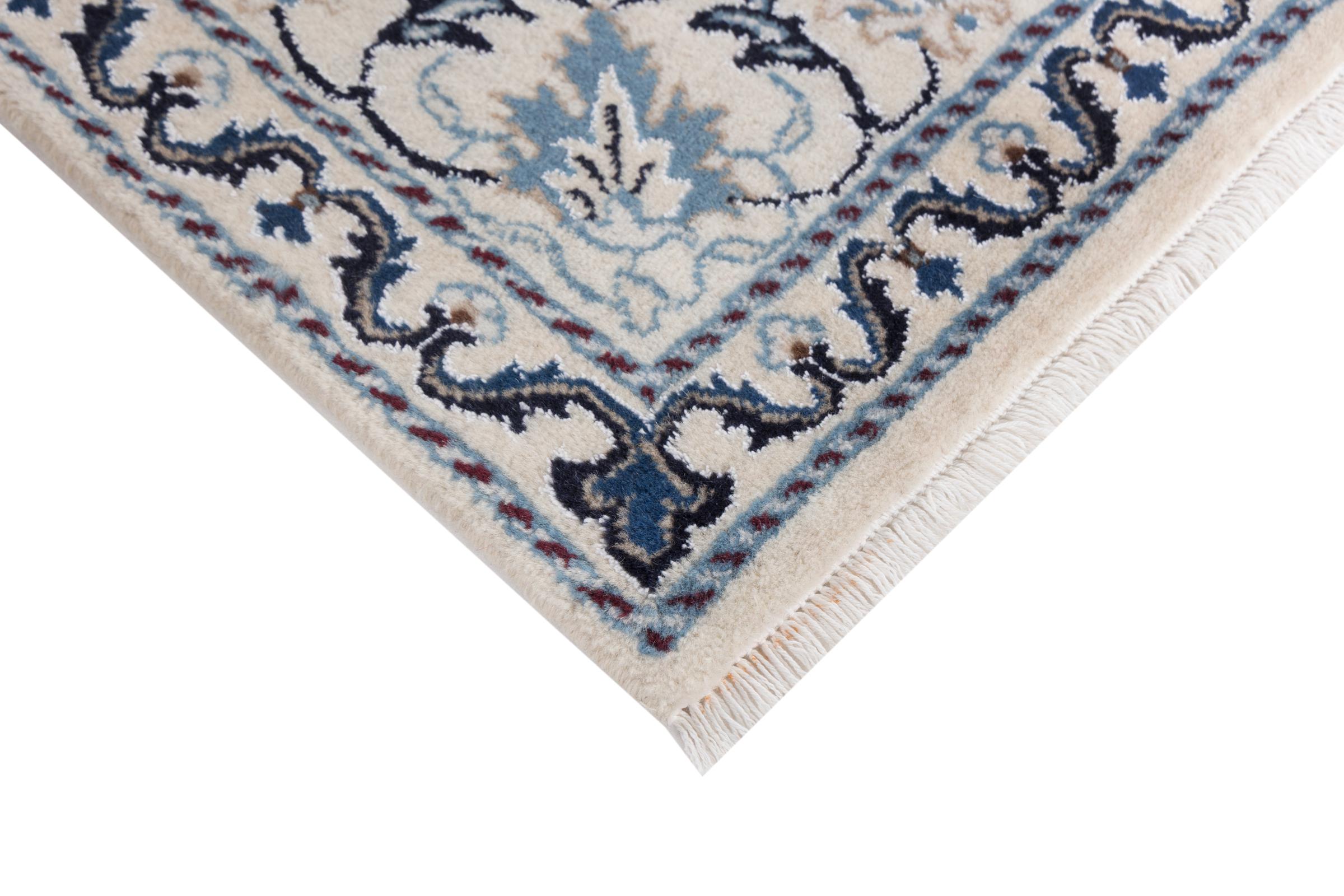 Les tapis de la ville de Nain, à la frontière de l'un des plus grands déserts d'Iran, comptent parmi les plus célèbres tapis persans du monde. Leur design typique est sans équivoque avec des ornements floraux, un médaillon central et des nuances de beige et de rouge ou de bleu. Grâce à leurs désignations 4La, 6La, 9La et 12La, les finesses d'un tapis Nain peuvent être vues d'un seul coup d'œil. Plus le chiffre "La" est bas, plus la densité des nœuds est élevée et donc plus le tapis est fin.