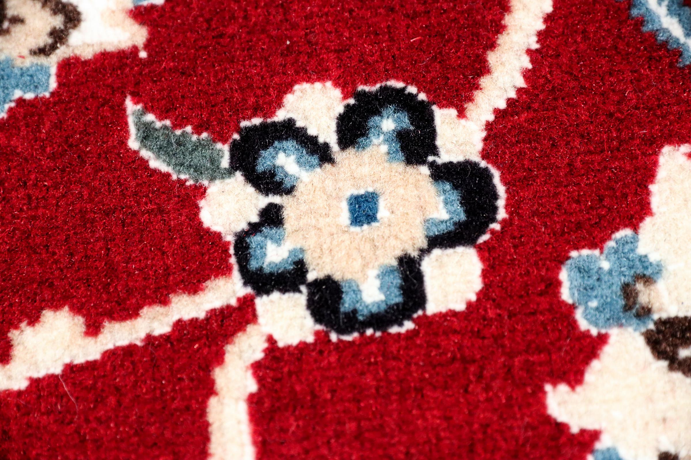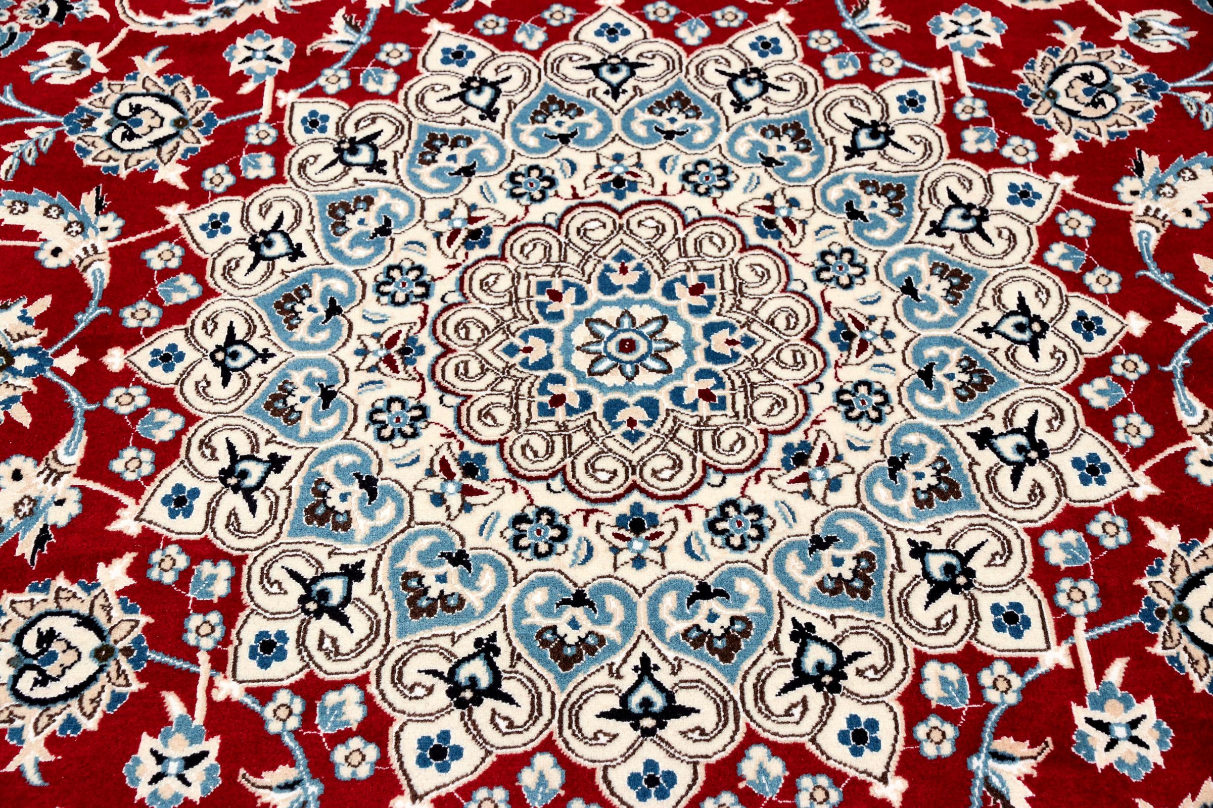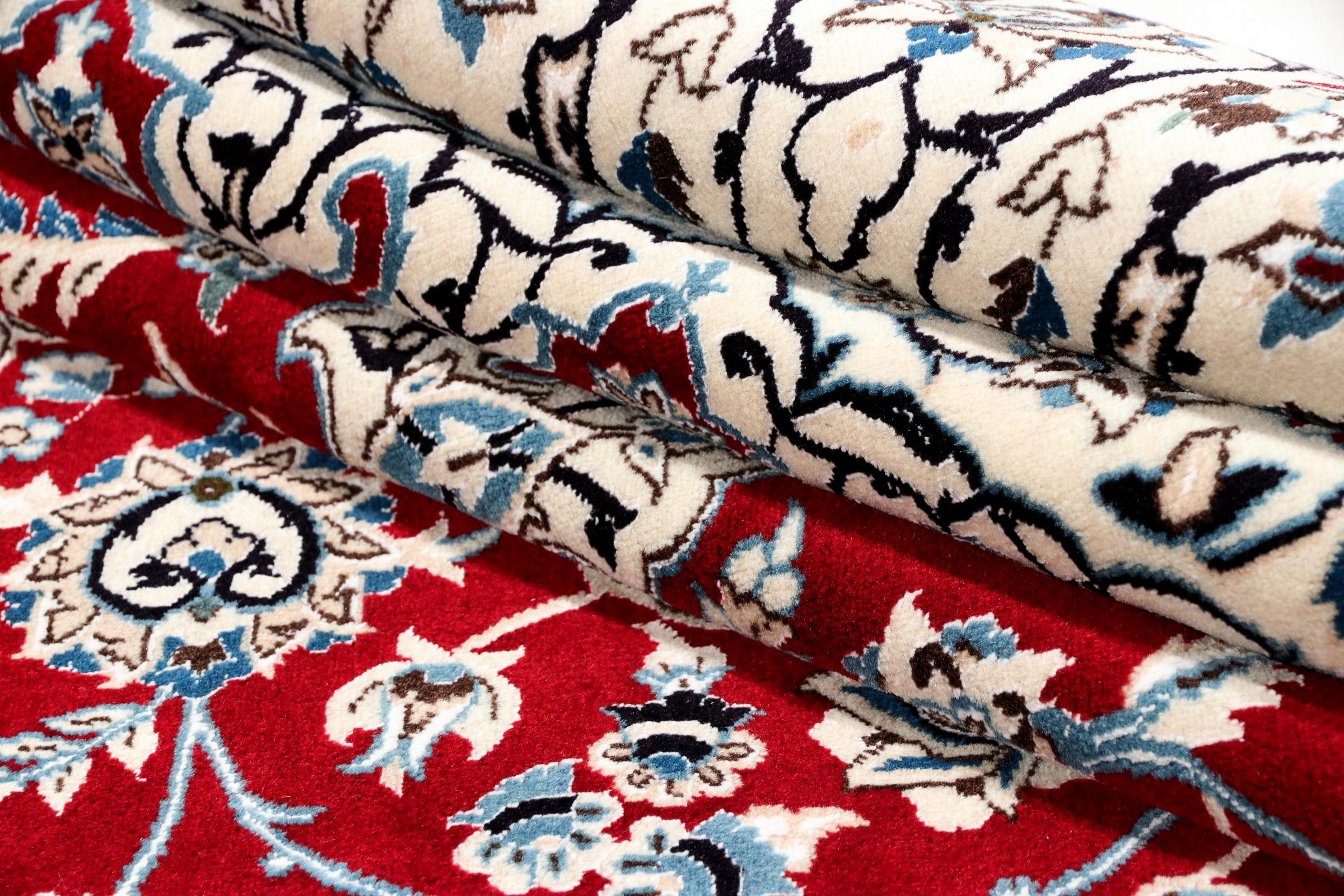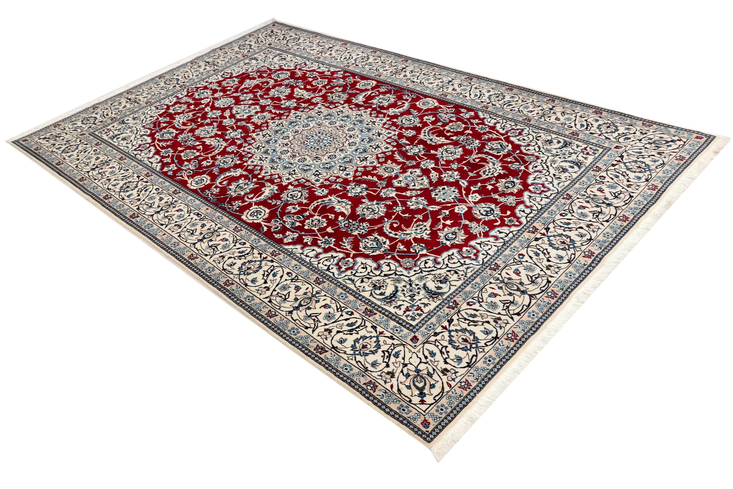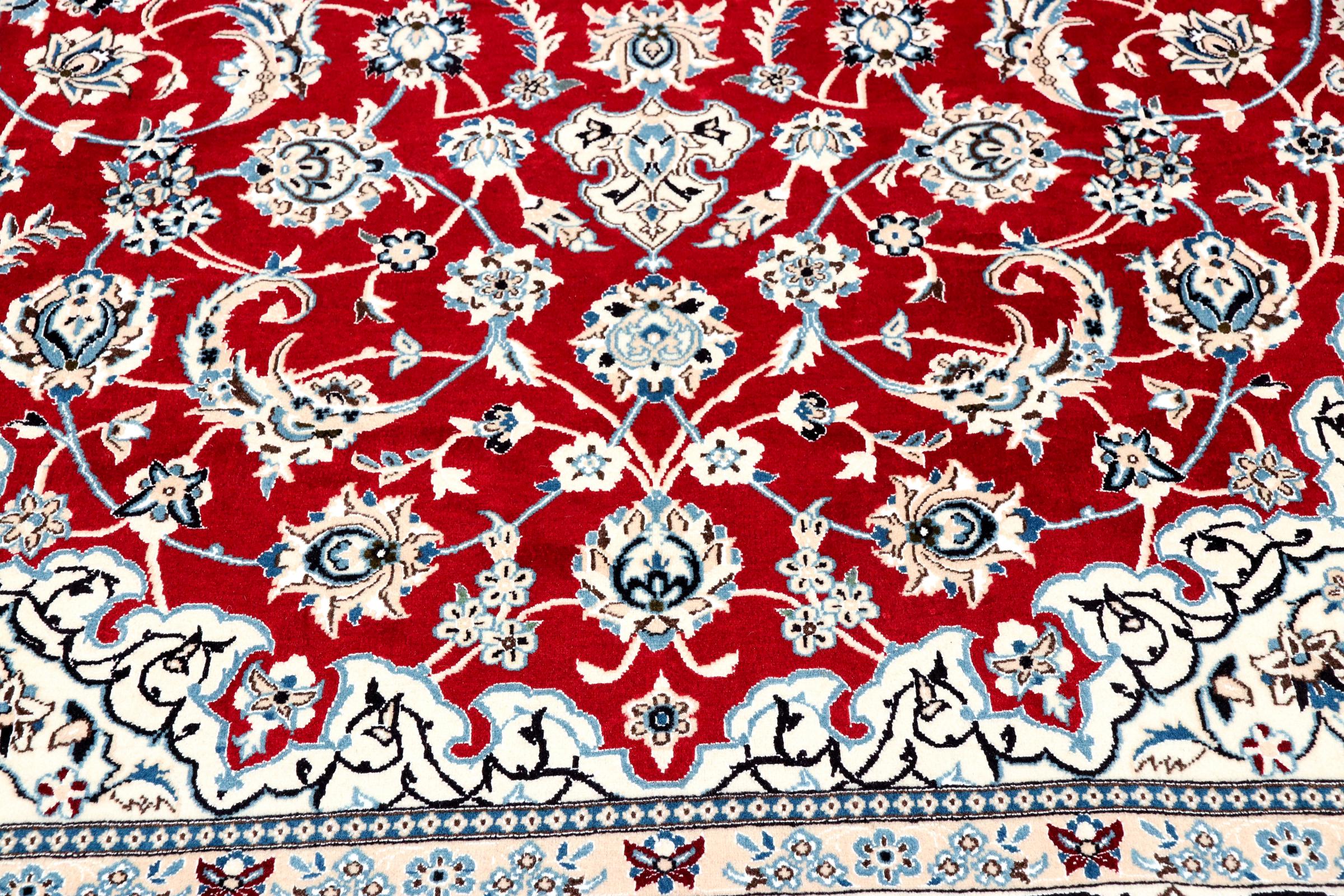 Ce tapis Nain est classifié 9La. La bonne qualité et le splendide design oriental avec ses motifs curvilignes inspirent chacun d’entre nous. Ce tapis persan était noué a la main avec de la laine précieuse et de la soie naturelle à Nain, une ville située à l’extrémité ouest du désert Dasht-e-Kavir.