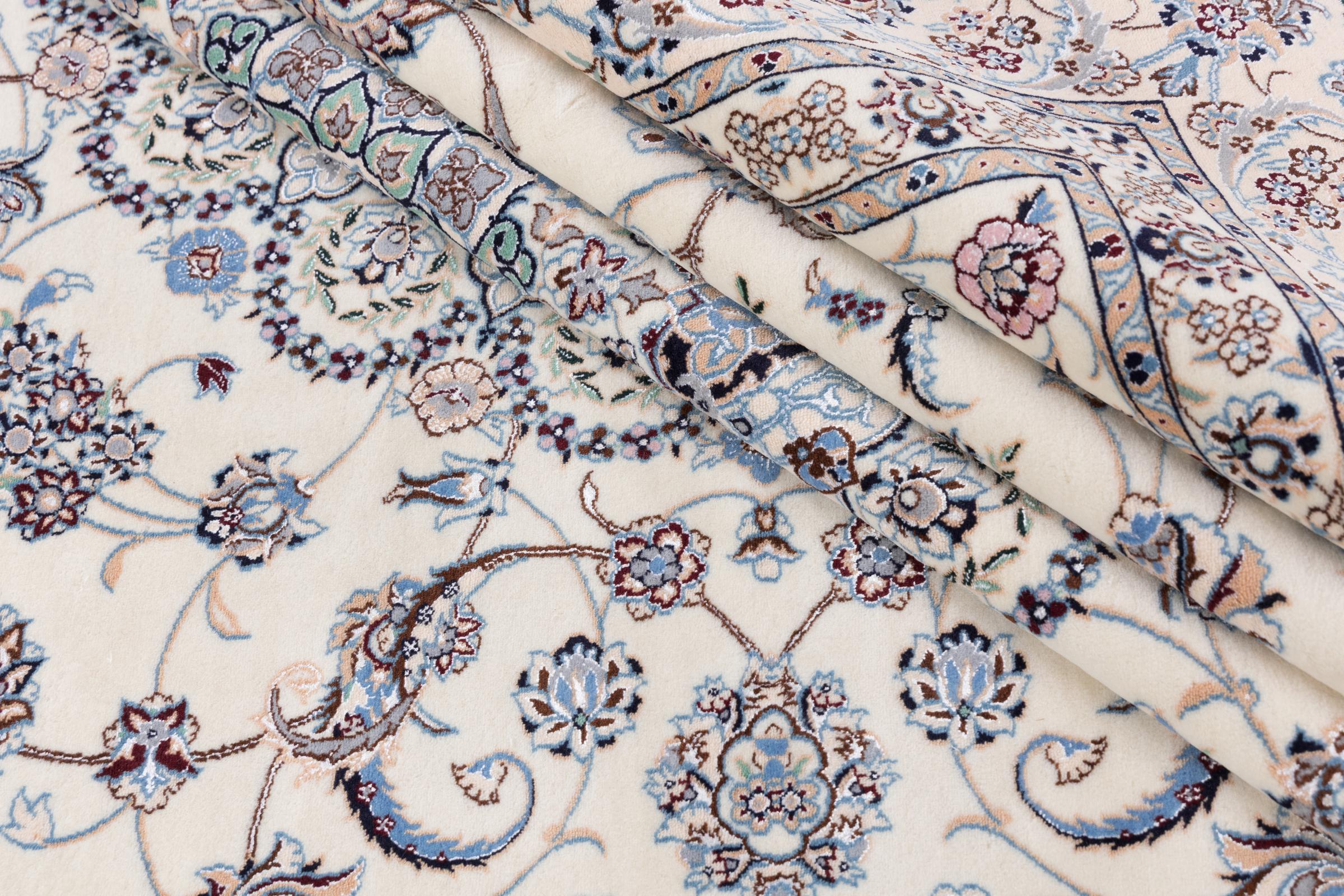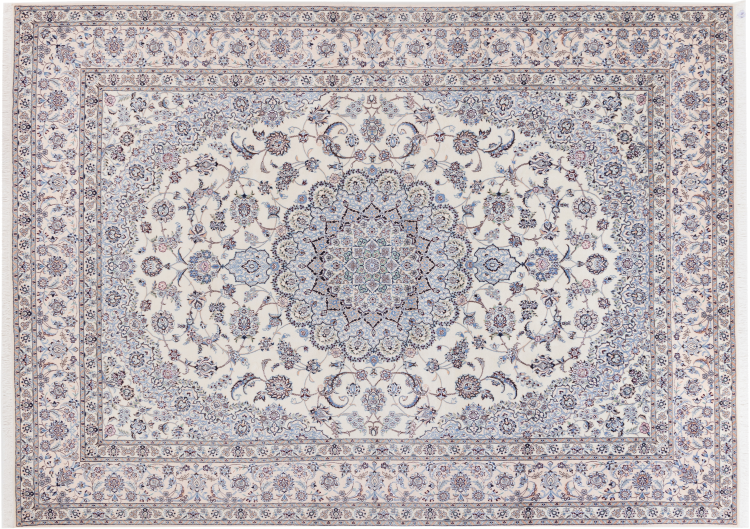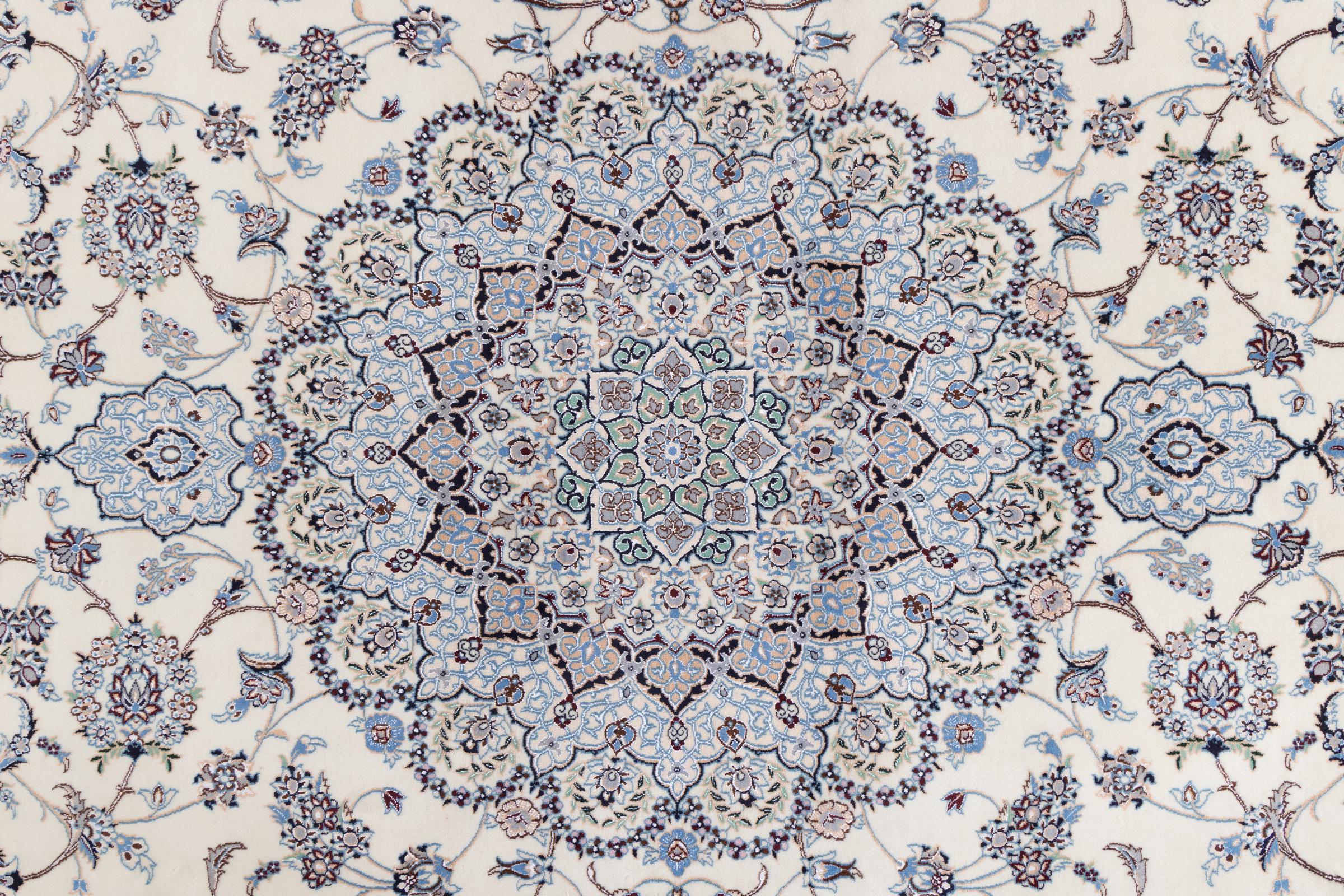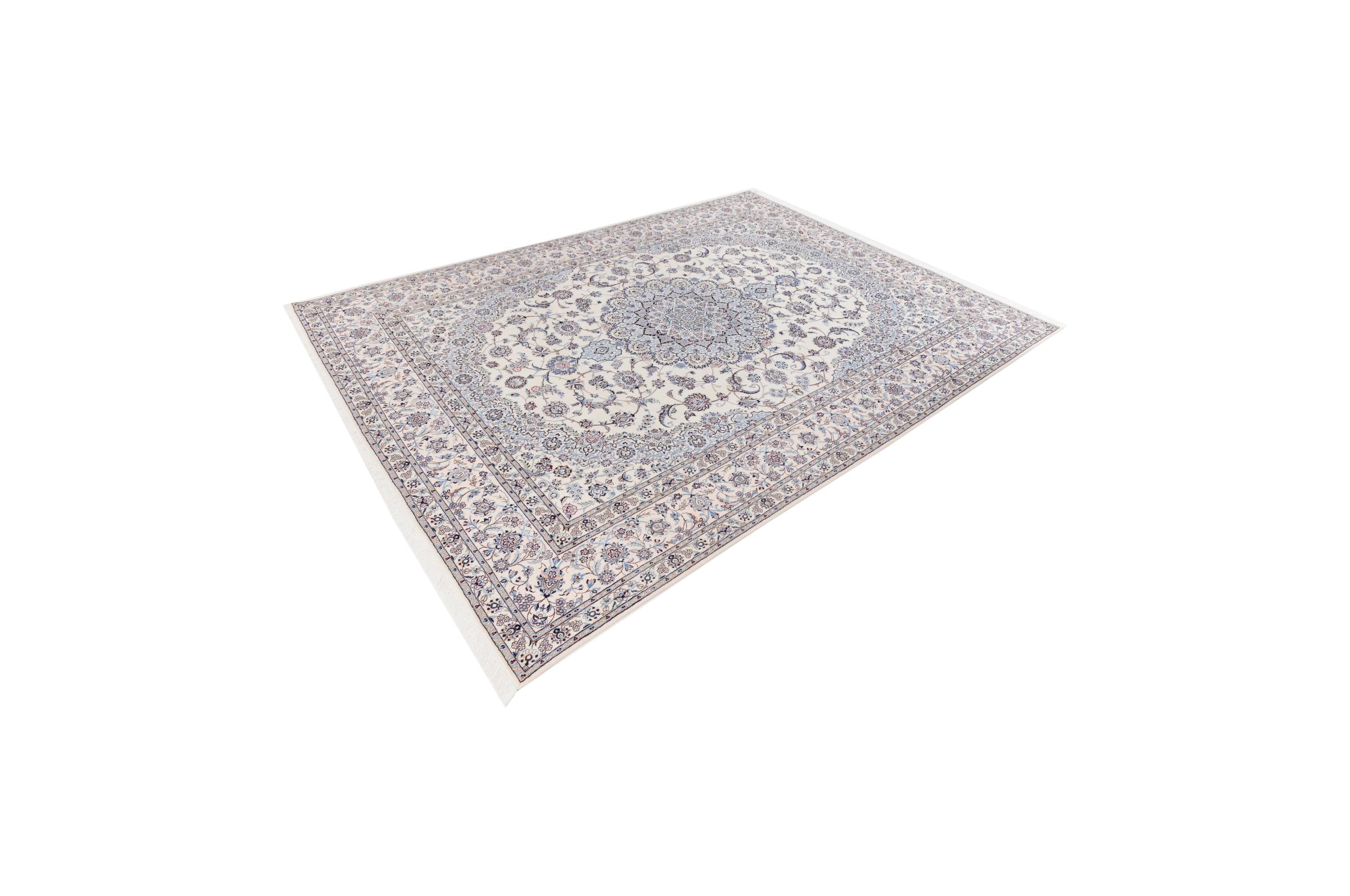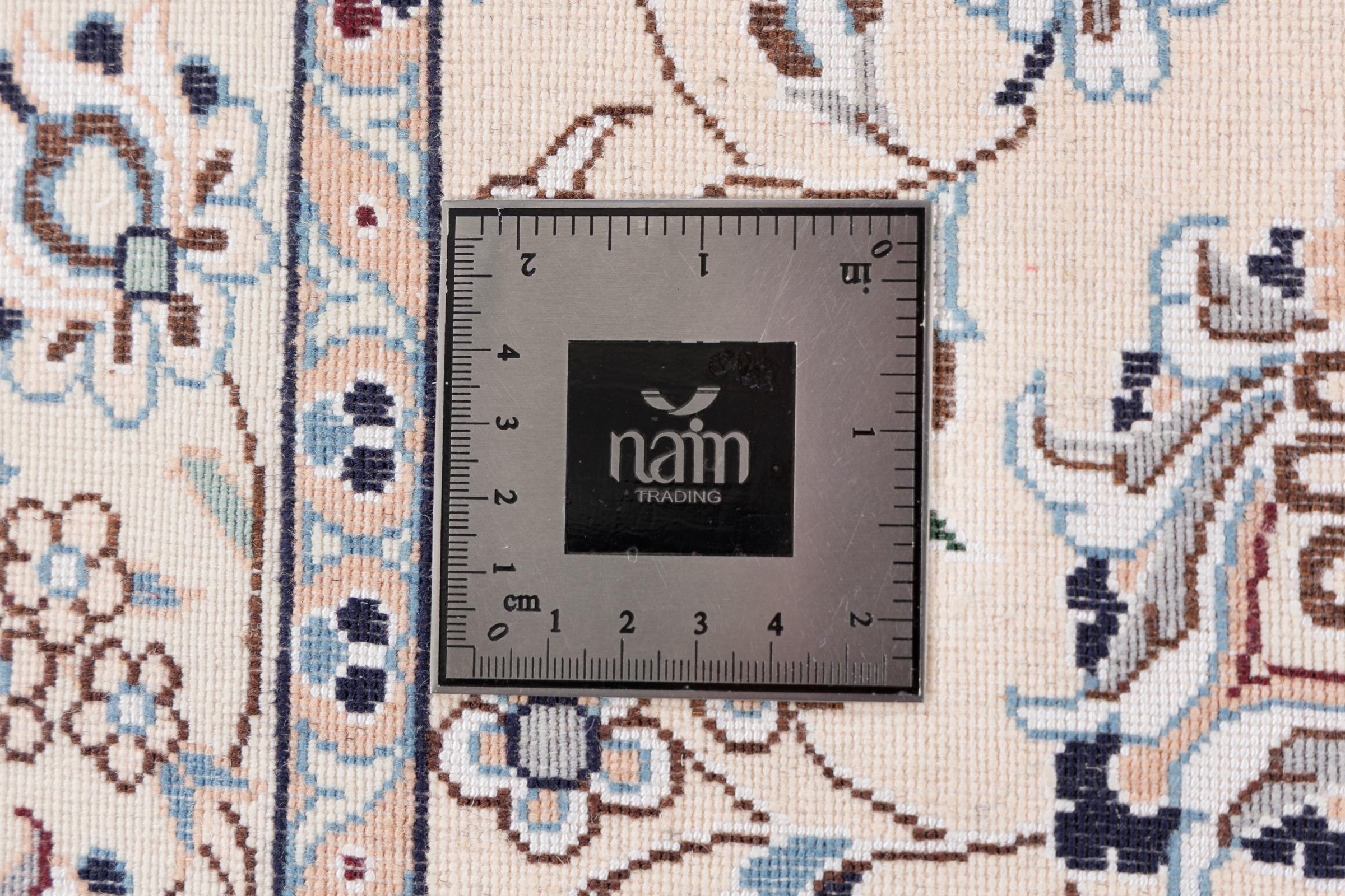Les tapis de la ville de Nain, à la frontière de l'un des plus grands déserts d'Iran, comptent parmi les plus célèbres tapis persans du monde. Leur design typique est sans équivoque avec des ornements floraux, un médaillon central et des nuances de beige et de rouge ou de bleu. Grâce à leurs désignations 4La, 6La, 9La et 12La, les finesses d'un tapis Nain peuvent être vues d'un seul coup d'œil. Plus le chiffre "La" est bas, plus la densité des nœuds est élevée et donc plus le tapis est fin.