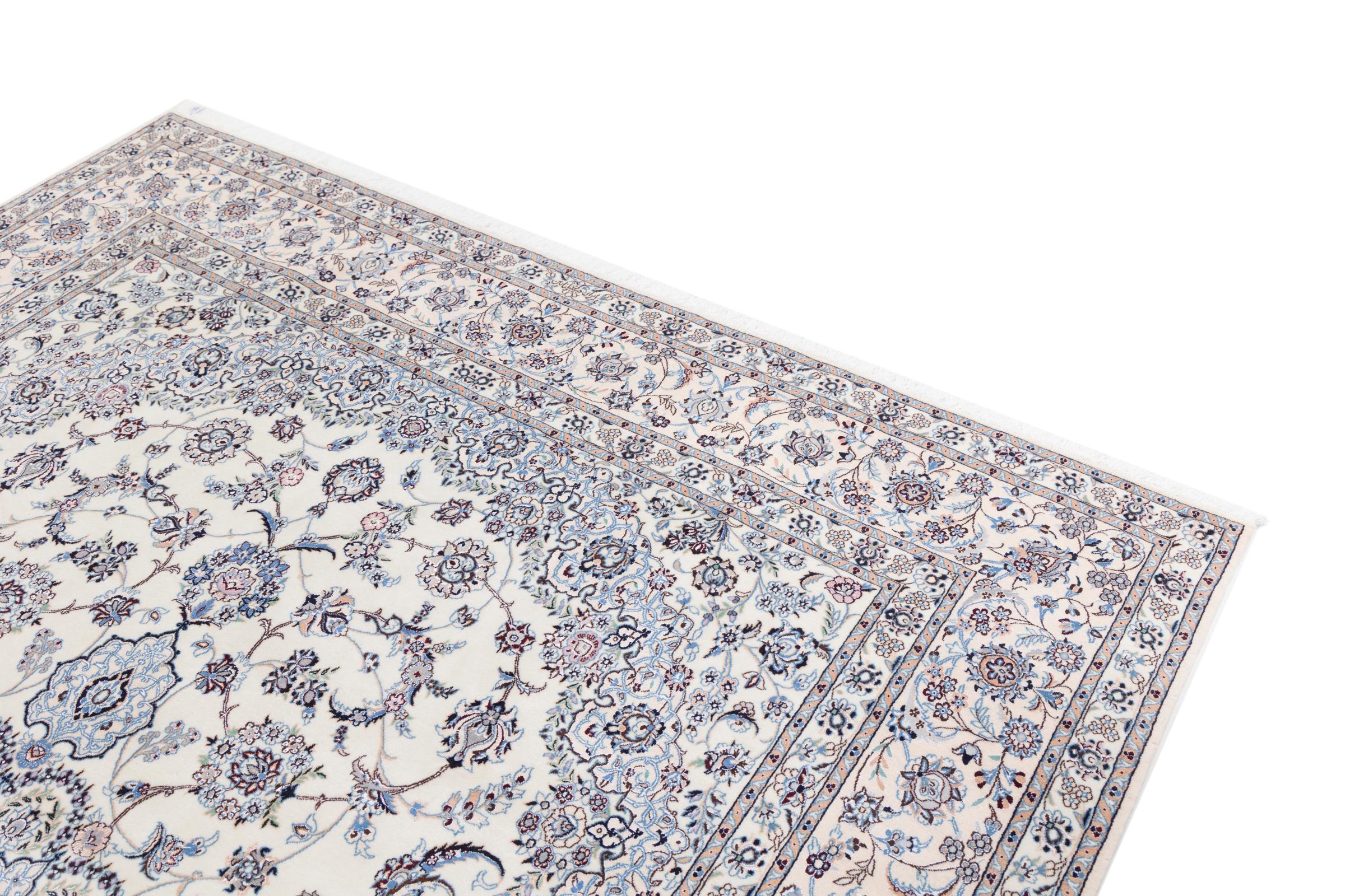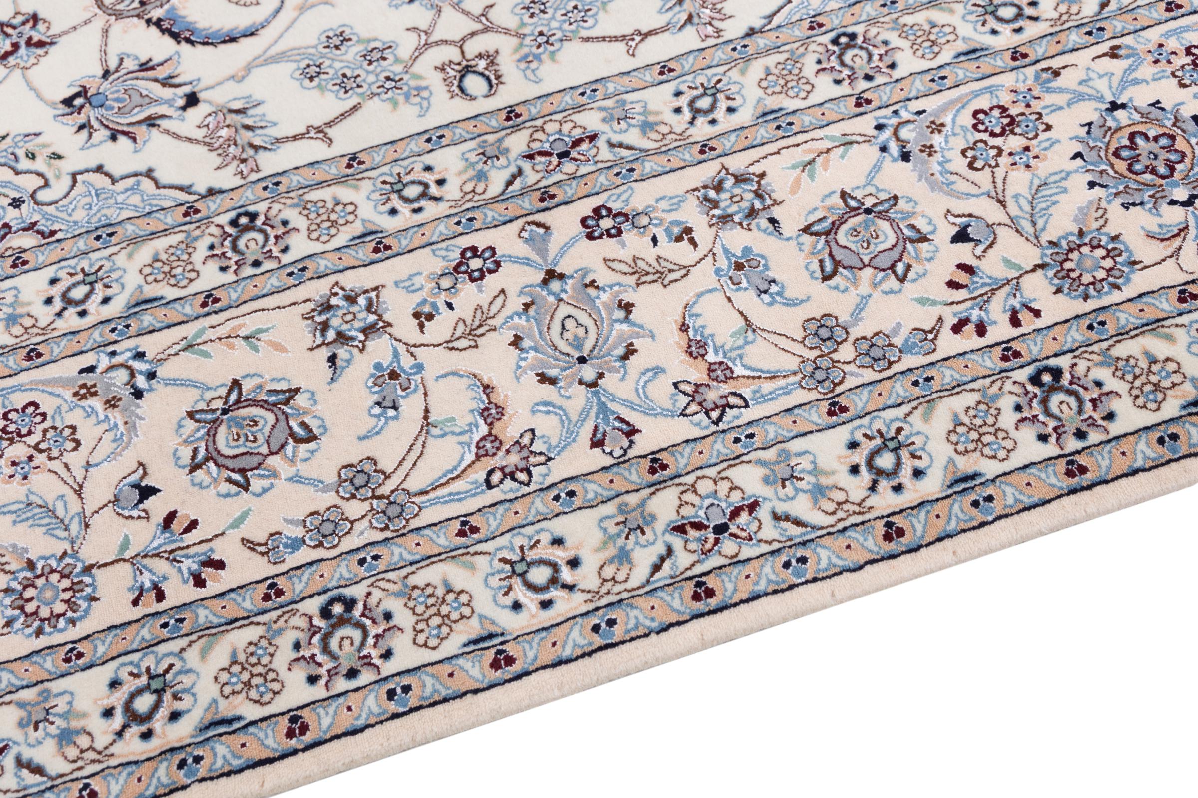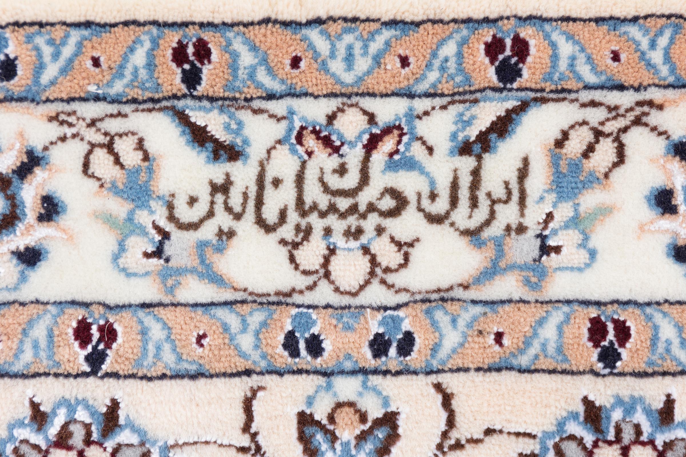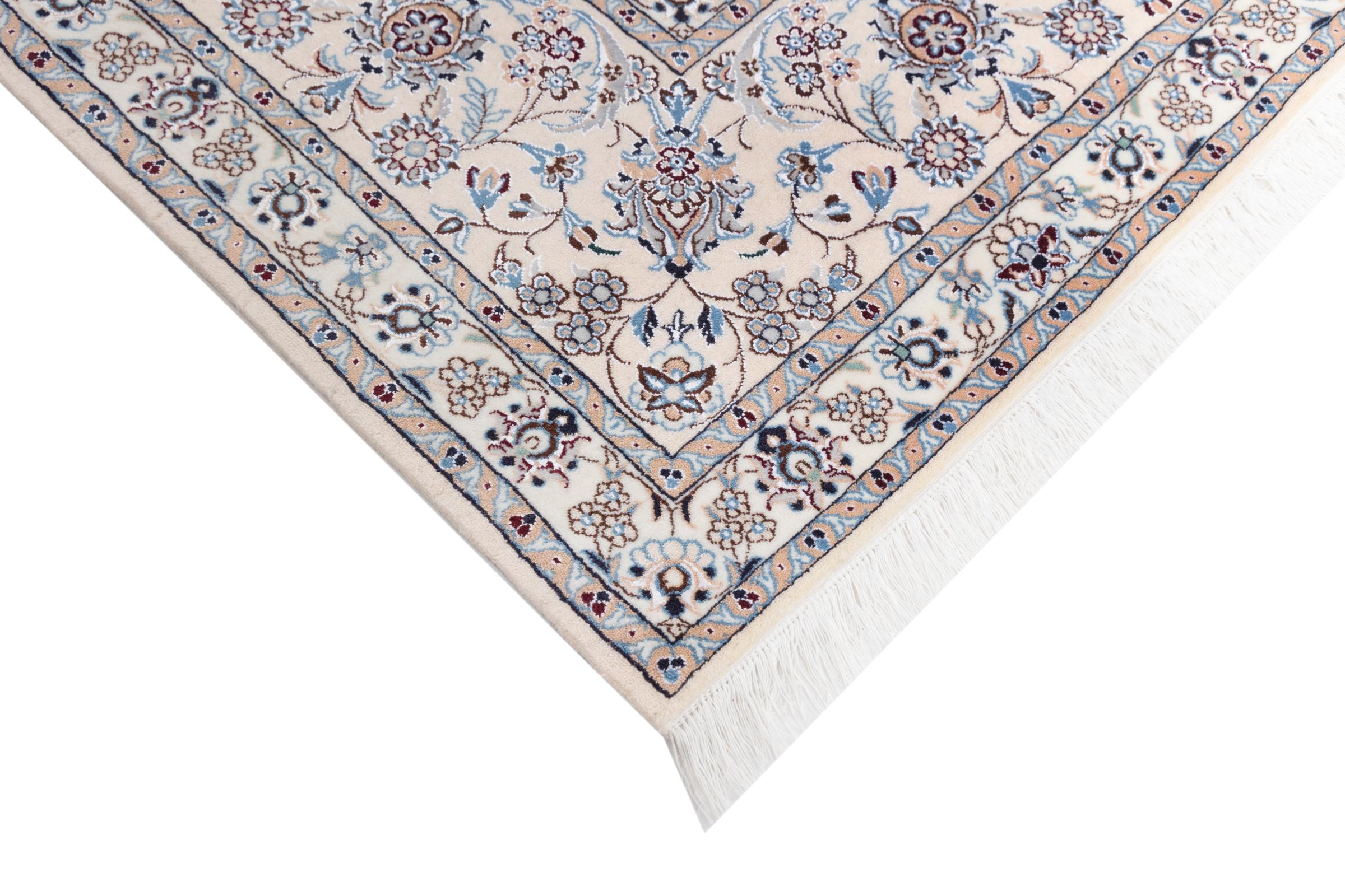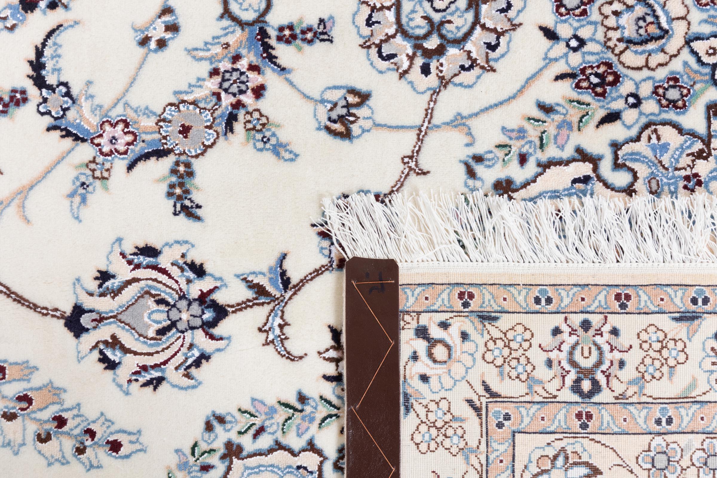 Les tapis de la ville de Nain, à la frontière de l'un des plus grands déserts d'Iran, comptent parmi les plus célèbres tapis persans du monde. Leur design typique est sans équivoque avec des ornements floraux, un médaillon central et des nuances de beige et de rouge ou de bleu. Grâce à leurs désignations 4La, 6La, 9La et 12La, les finesses d'un tapis Nain peuvent être vues d'un seul coup d'œil. Plus le chiffre "La" est bas, plus la densité des nœuds est élevée et donc plus le tapis est fin.