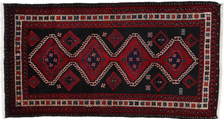 Ce tapis appartient aux tapis de village et de nomade d'Iran, anciennement la Perse. Ce type de tapis est noué à la main dans les petites villes et les villages selon l'ancienne tradition. Même les nomades nouent encore des tapis persans en plein air. Les tapis sont noués sans schéma et entièrement à partir de la tête. Ils se caractérisent par des ornements classiques, qui sont disposés en motifs droits et géométriques. Grâce à leur origine culturelle et traditionnelle, ces tapis ont un caractère unique qui incarne la Perse ancienne.