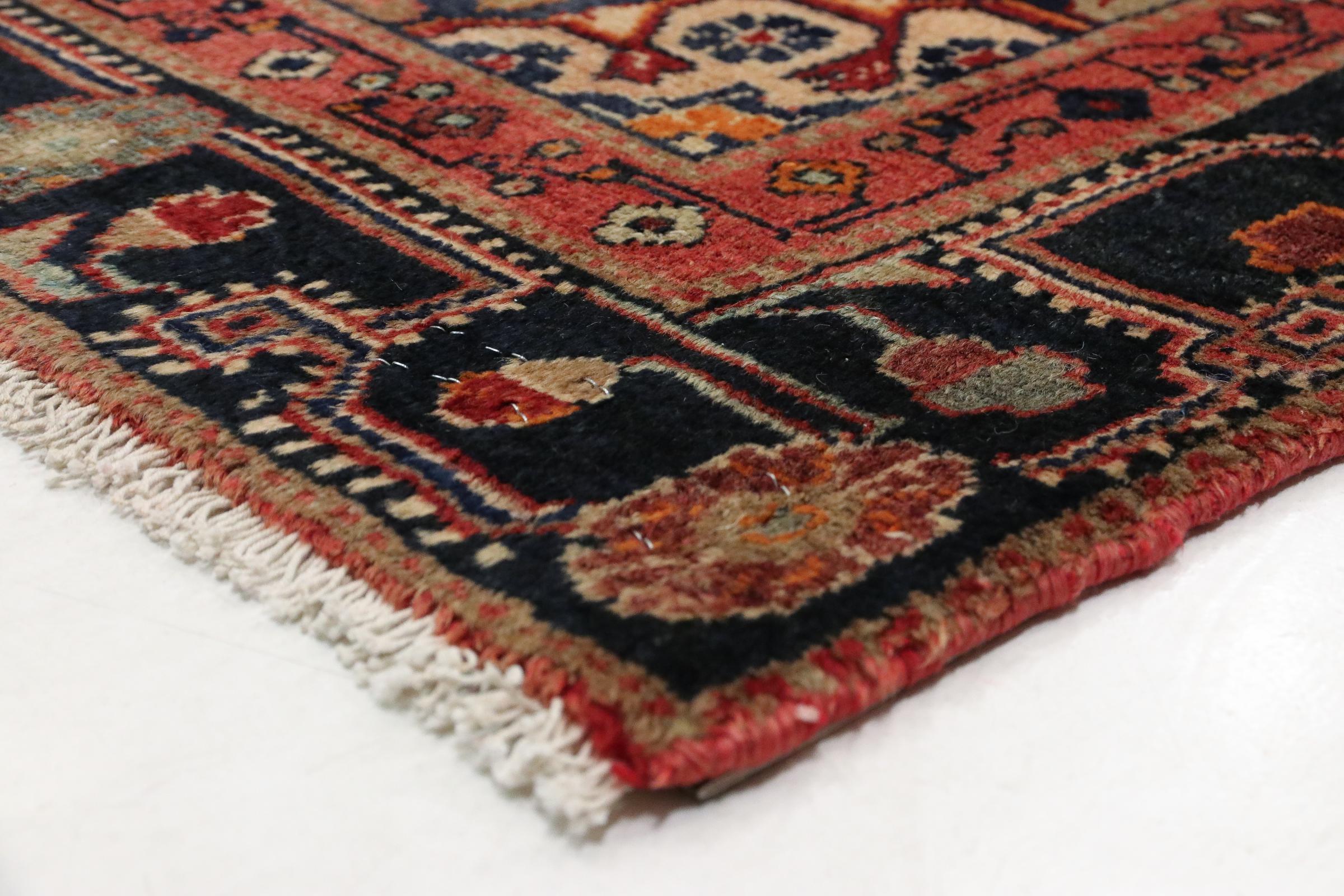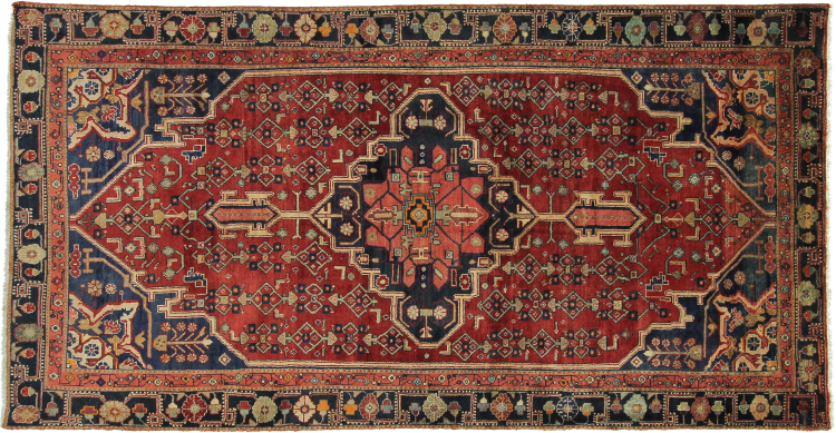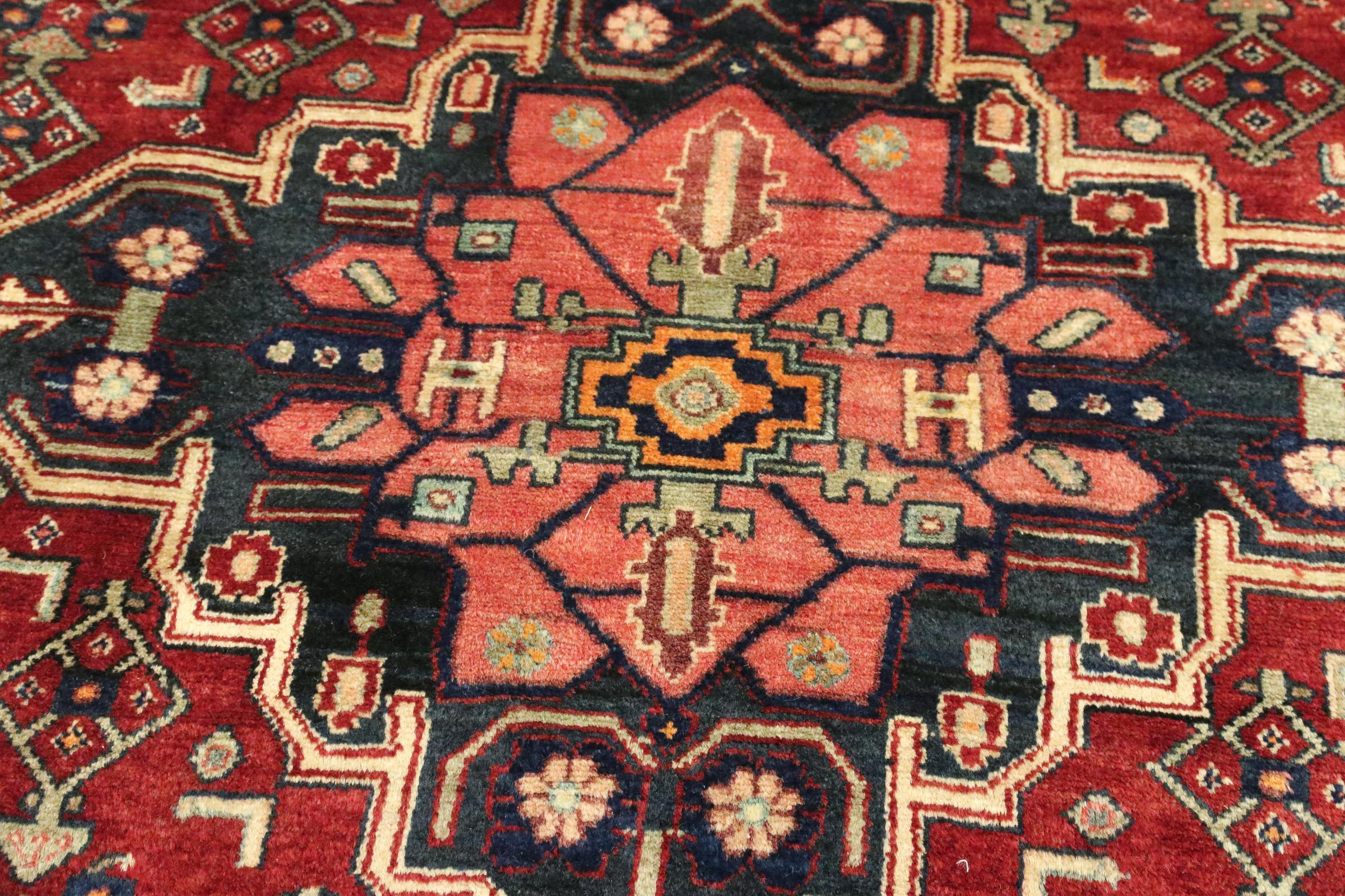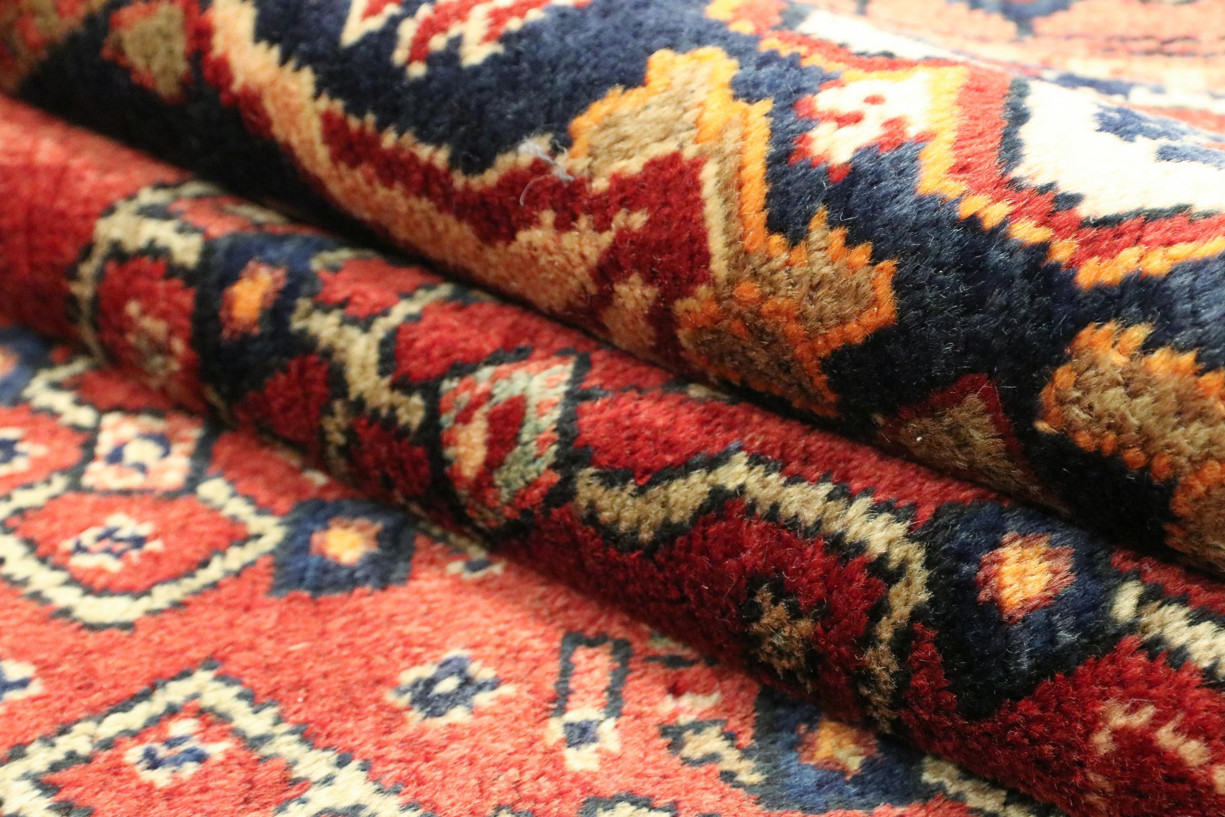 Ce tapis, élaboré par les nomades Afshar, convainc par ses couleurs rouges. Chaque pièce gagne une touche orientale avec un