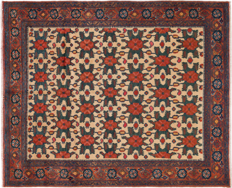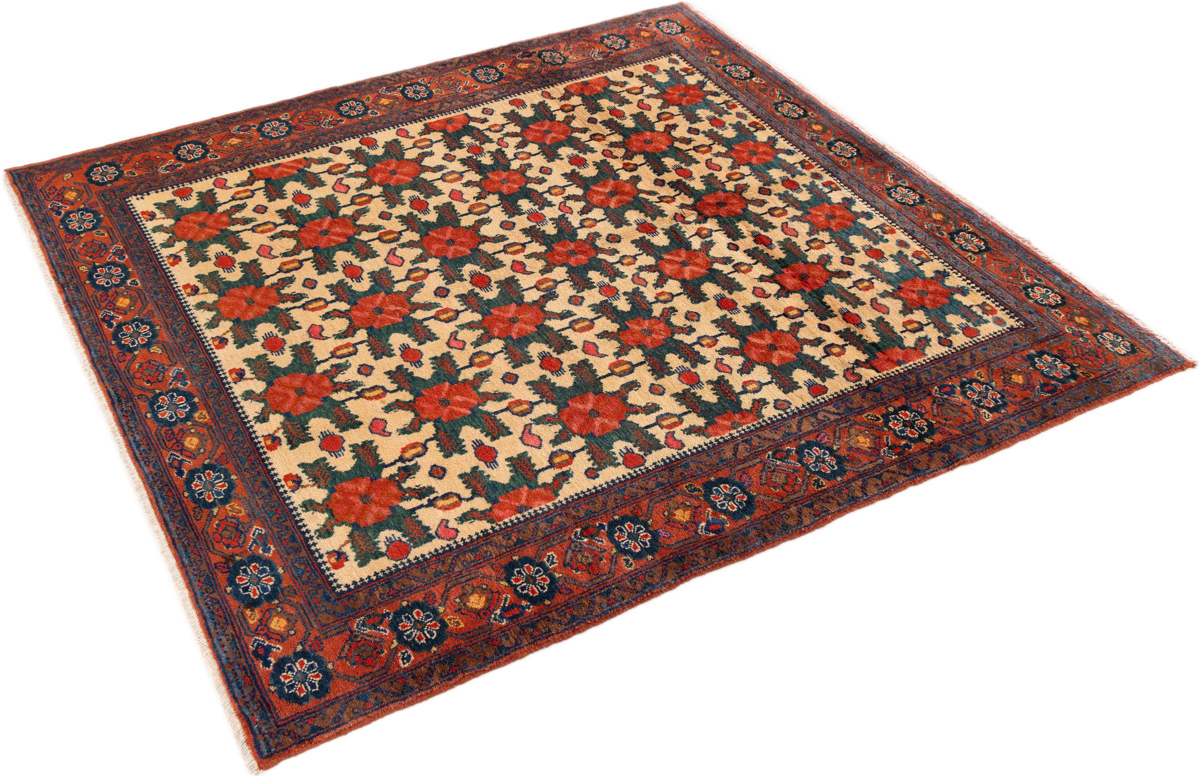 Ce tapis appartient aux tapis de village et de nomade d'Iran, anciennement la Perse. Ce type de tapis est noué à la main dans les petites villes et les villages selon l'ancienne tradition. Même les nomades nouent encore des tapis persans en plein air. Les tapis sont noués sans schéma et entièrement à partir de la tête. Ils se caractérisent par des ornements classiques, qui sont disposés en motifs droits et géométriques. Grâce à leur origine culturelle et traditionnelle, ces tapis ont un caractère unique qui incarne la Perse ancienne.