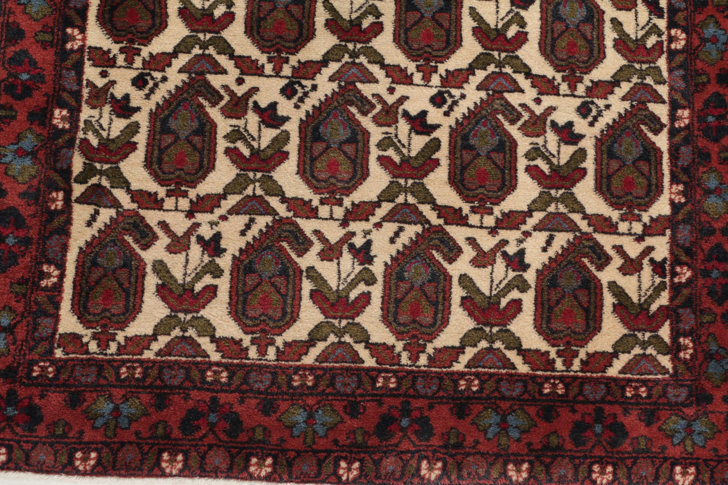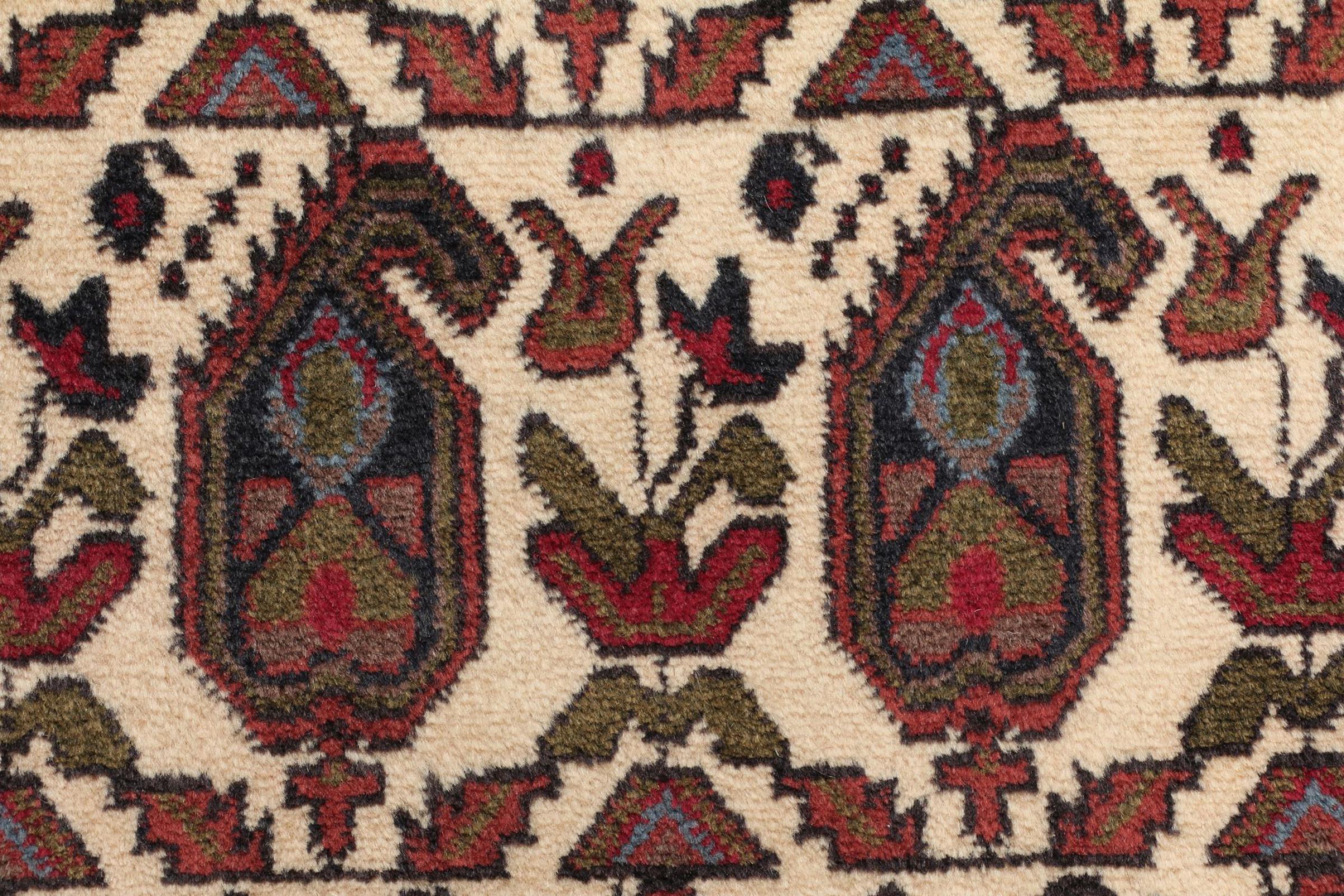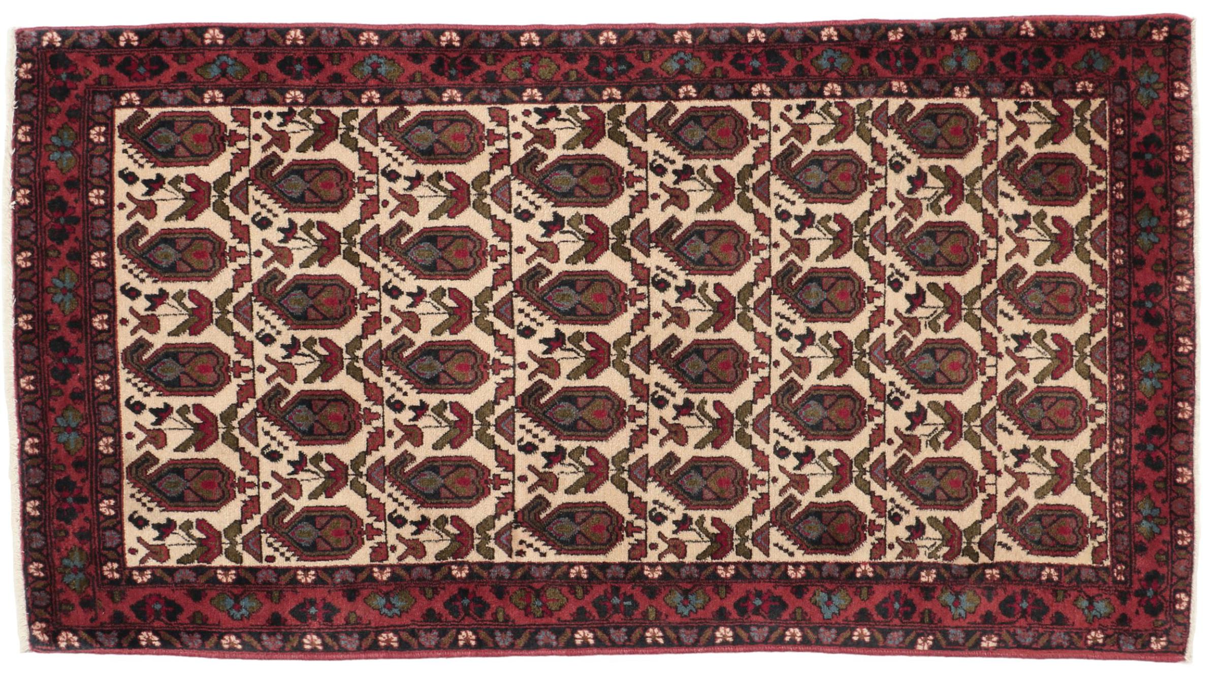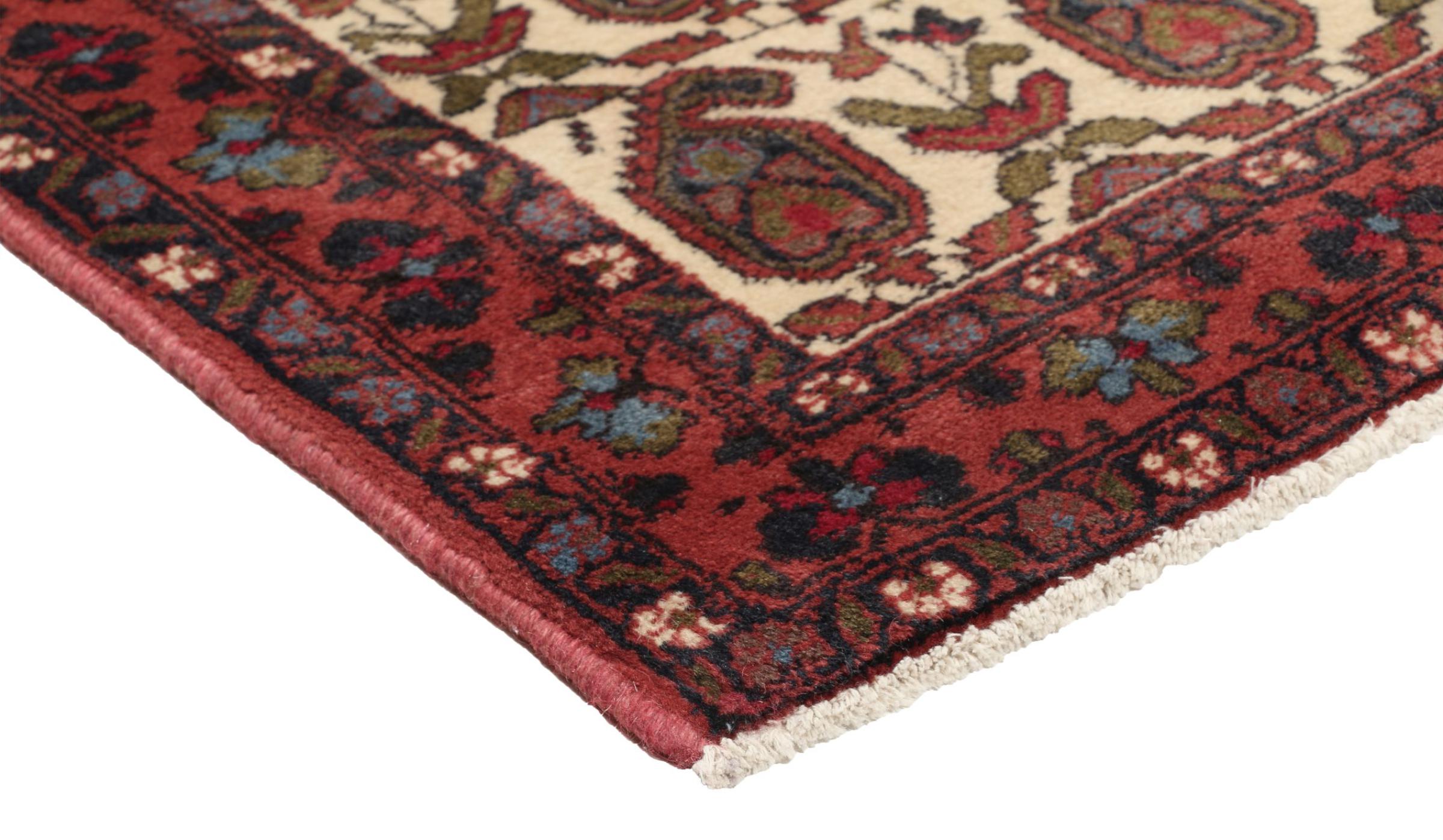 Ce tapis appartient aux tapis de village et de nomade d'Iran, anciennement la Perse. Ce type de tapis est noué à la main dans les petites villes et les villages selon l'ancienne tradition. Même les nomades nouent encore des tapis persans en plein air. Les tapis sont noués sans schéma et entièrement à partir de la tête. Ils se caractérisent par des ornements classiques, qui sont disposés en motifs droits et géométriques. Grâce à leur origine culturelle et traditionnelle, ces tapis ont un caractère unique qui incarne la Perse ancienne.