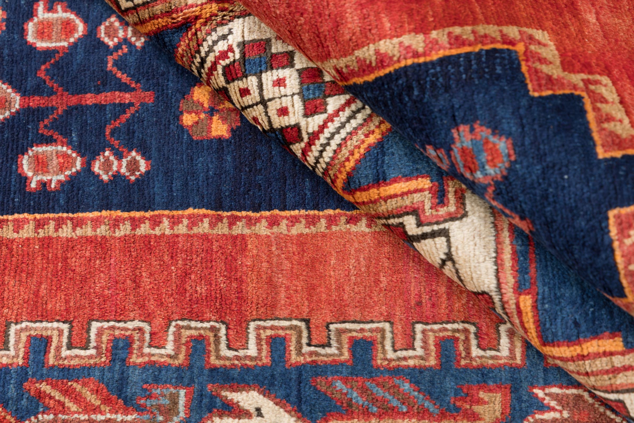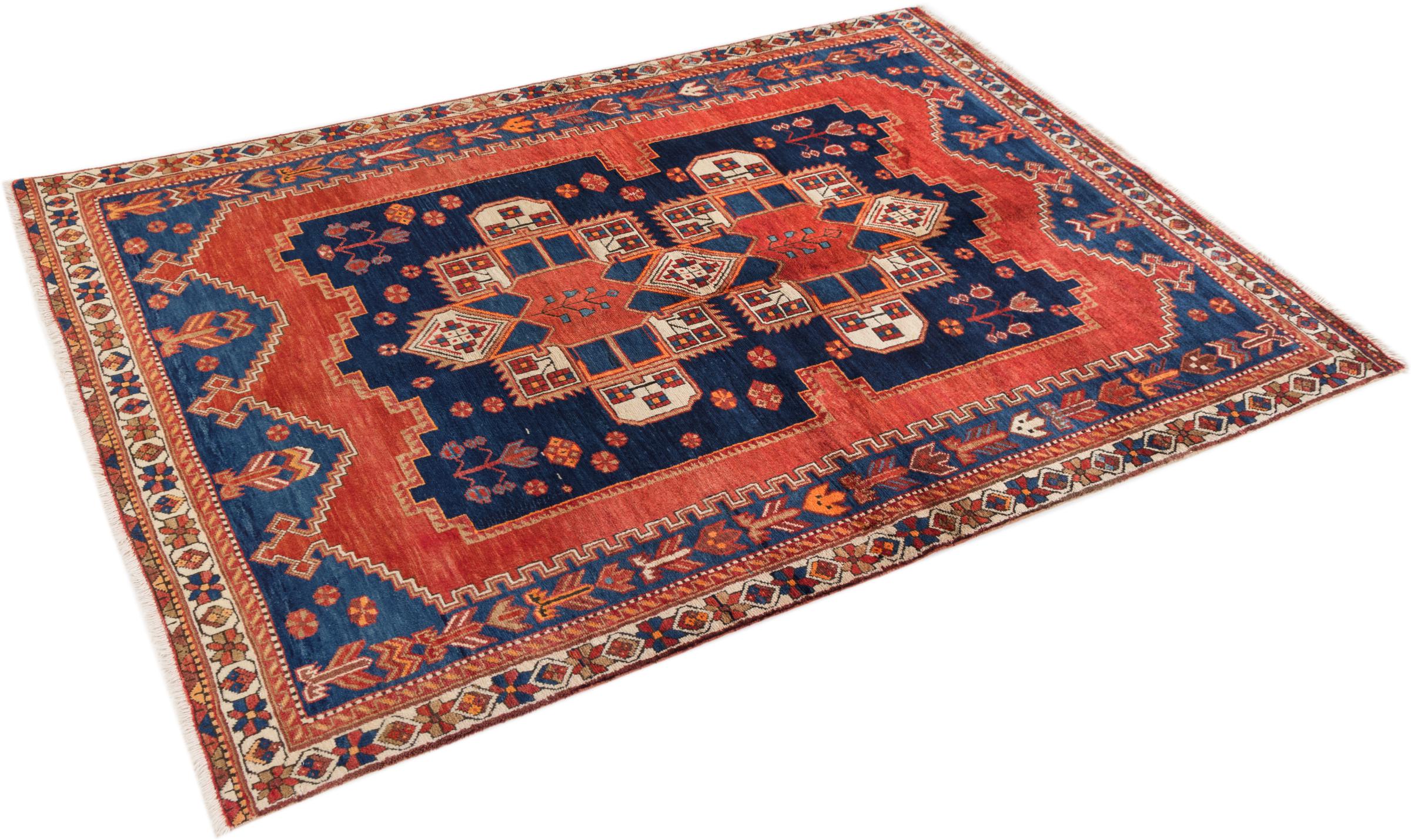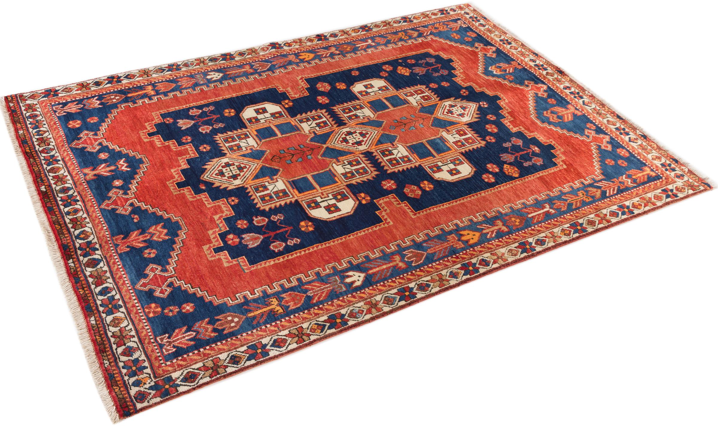 Ce tapis appartient aux tapis de village et de nomade d'Iran, anciennement la Perse. Ce type de tapis est noué à la main dans les petites villes et les villages selon l'ancienne tradition. Même les nomades nouent encore des tapis persans en plein air. Les tapis sont noués sans schéma et entièrement à partir de la tête. Ils se caractérisent par des ornements classiques, qui sont disposés en motifs droits et géométriques. Grâce à leur origine culturelle et traditionnelle, ces tapis ont un caractère unique qui incarne la Perse ancienne.