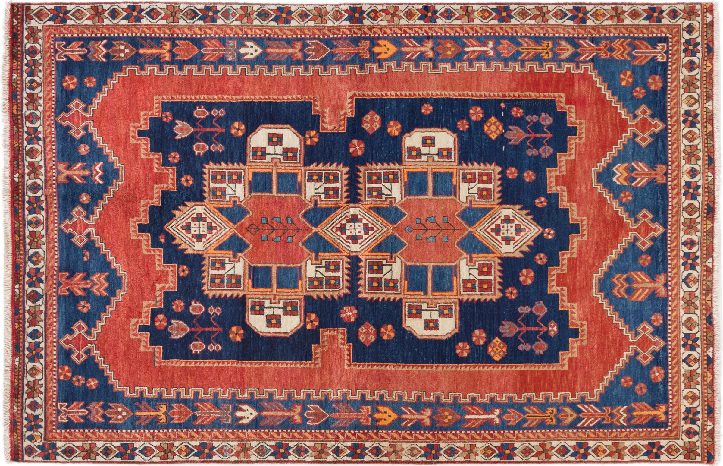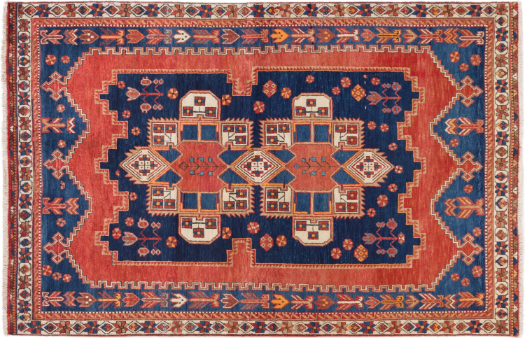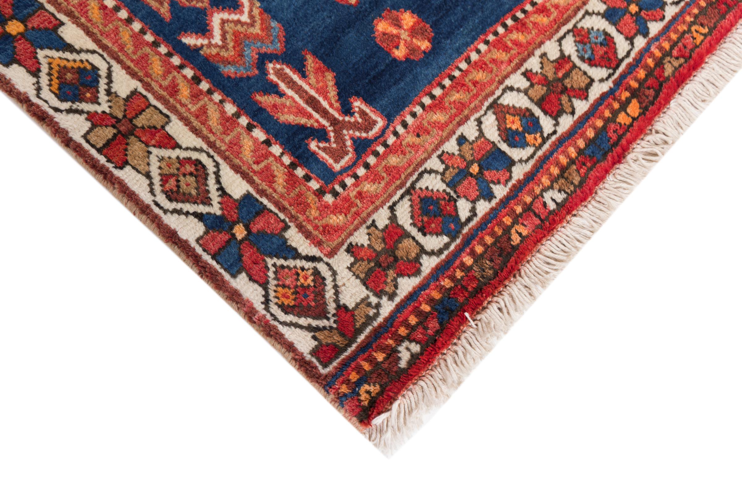Ce tapis appartient aux tapis de village et de nomade d'Iran, anciennement la Perse. Ce type de tapis est noué à la main dans les petites villes et les villages selon l'ancienne tradition. Même les nomades nouent encore des tapis persans en plein air. Les tapis sont noués sans schéma et entièrement à partir de la tête. Ils se caractérisent par des ornements classiques, qui sont disposés en motifs droits et géométriques. Grâce à leur origine culturelle et traditionnelle, ces tapis ont un caractère unique qui incarne la Perse ancienne.