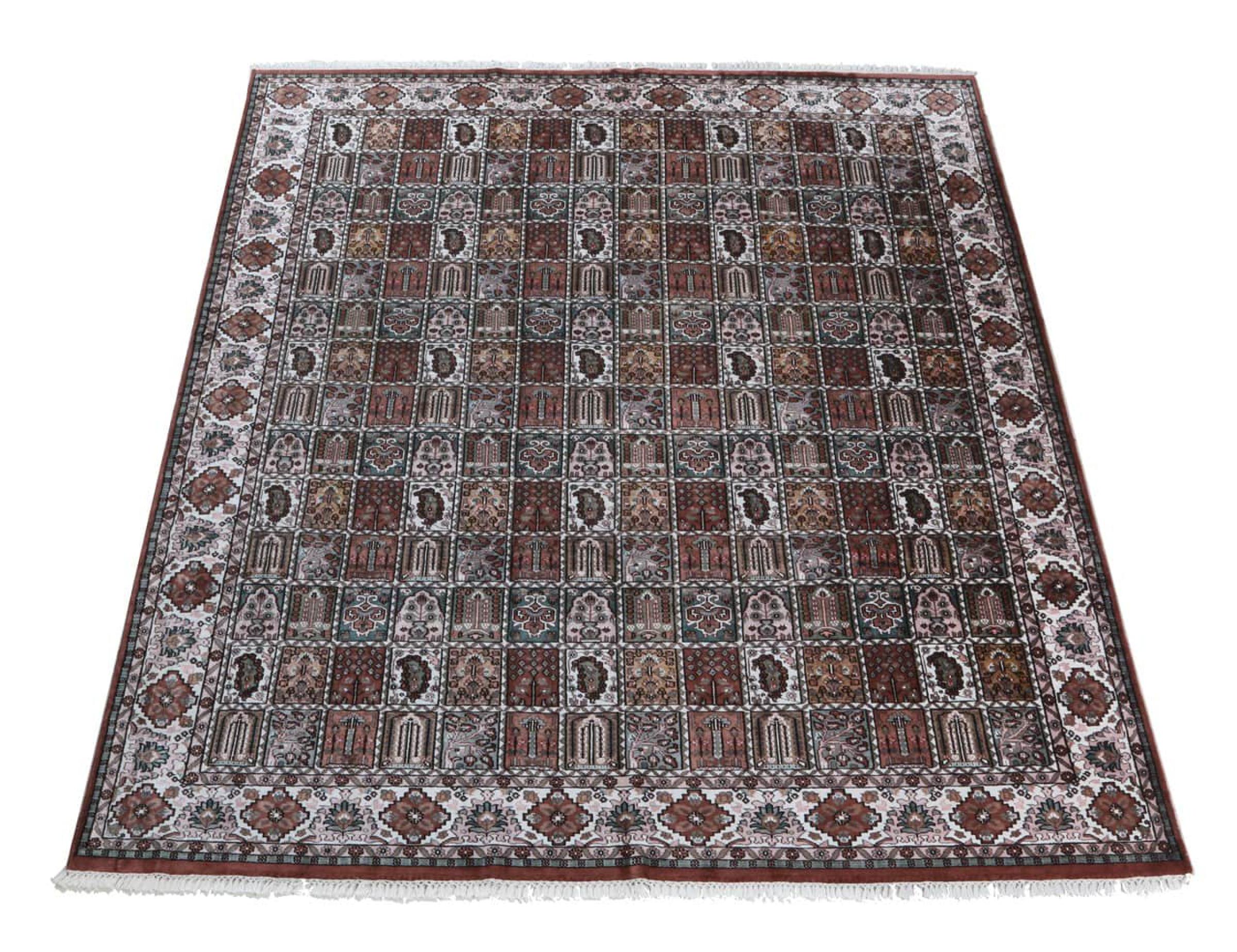 Les noueurs de tapis de l'ancienne Perse sont venus en Inde il y a des siècles pour exercer leur métier. Ainsi, l'Inde a aujourd'hui une tradition de nouage de tapis d'une grande portée. Les motifs et les ornements sont souvent basés sur les motifs bien connus des tapis persans. De nombreux tapis orientaux noués à la main viennent du nord du pays. Les tapis en soie du Cachemire, par exemple, proviennent de la région du Cachemire, qui est directement voisine du Pakistan.