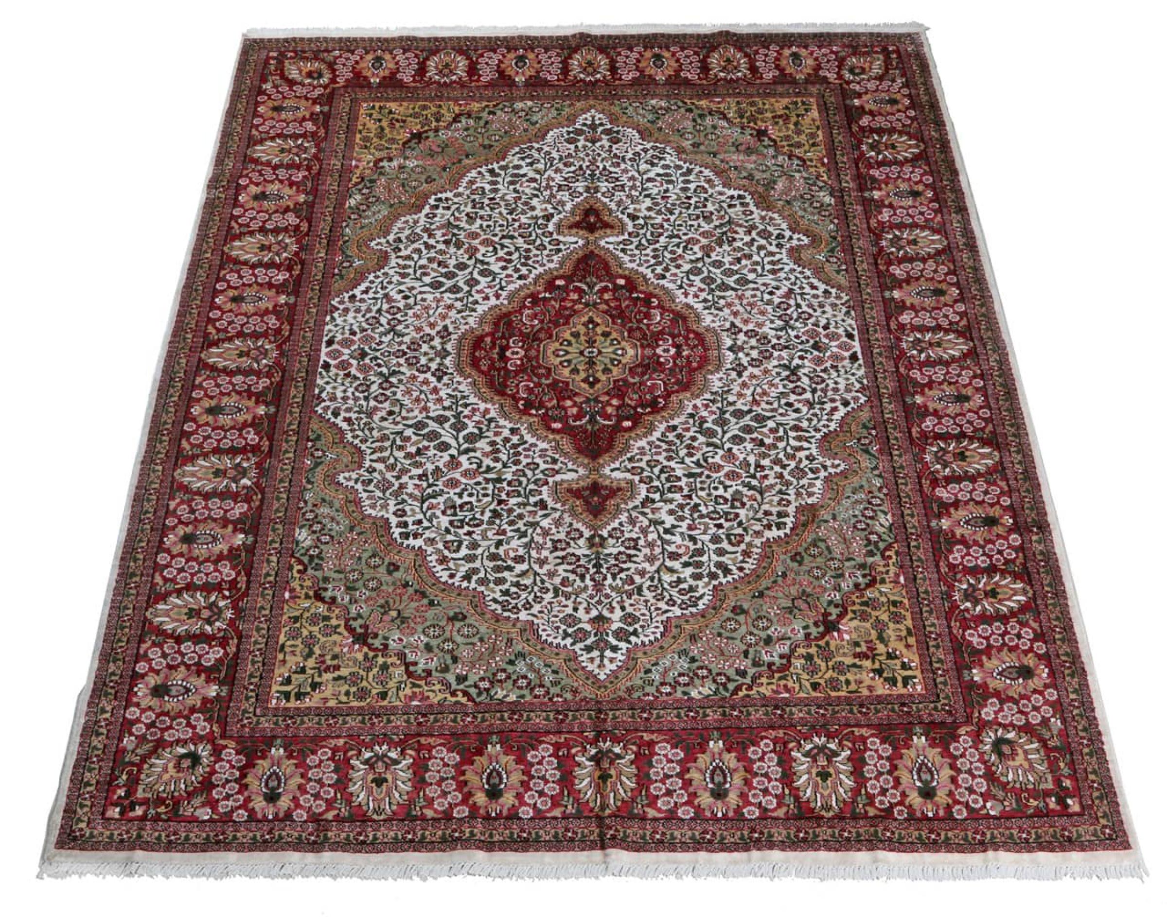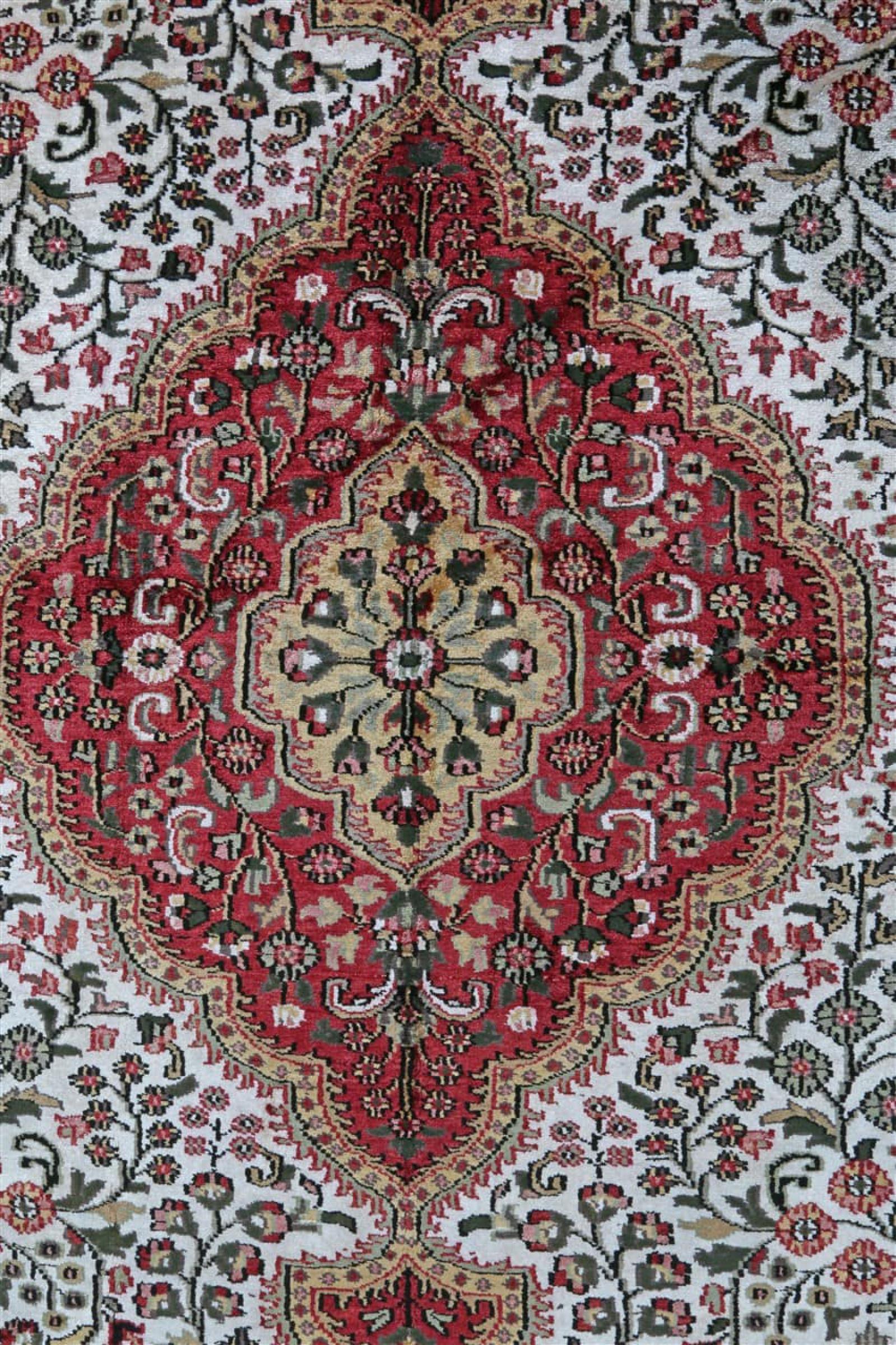 Réf. Article: 29057100527993 Taille: 320x236 cm Épaisseur: ap. 8 mm Densité de nouage: 320 000 - 360 000 / m² Fabrication: Noué à la main Velours: Viscose Chaîne: Coton Origine: Inde Âge: Nouveau Poids: ap. 26 kg Nombre en stock: Unique - Seulement 1 en stock