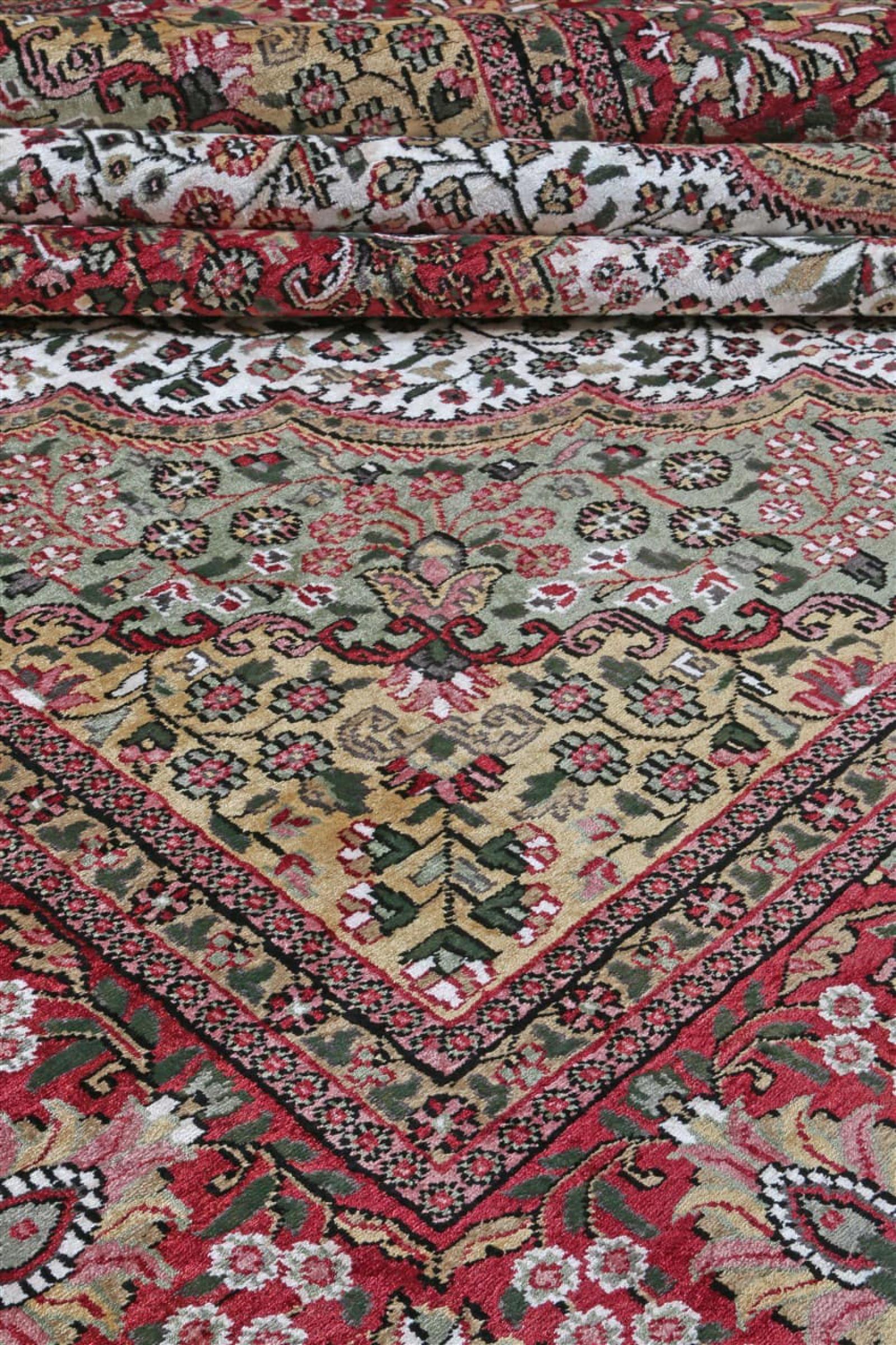Les noueurs de tapis de l'ancienne Perse sont venus en Inde il y a des siècles pour exercer leur métier. Ainsi, l'Inde a aujourd'hui une tradition de nouage de tapis d'une grande portée. Les motifs et les ornements sont souvent basés sur les motifs bien connus des tapis persans. De nombreux tapis orientaux noués à la main viennent du nord du pays. Les tapis en soie du Cachemire, par exemple, proviennent de la région du Cachemire, qui est directement voisine du Pakistan.