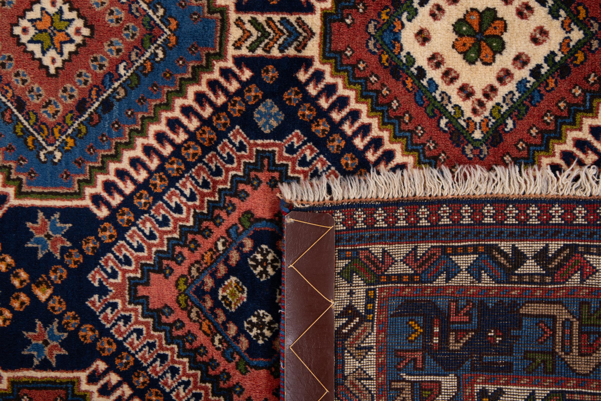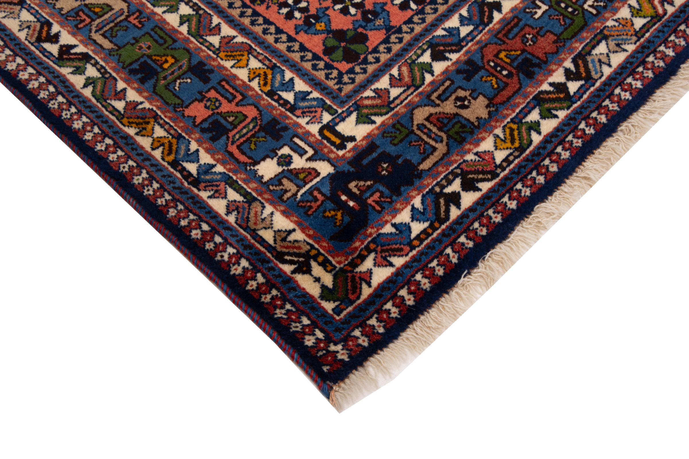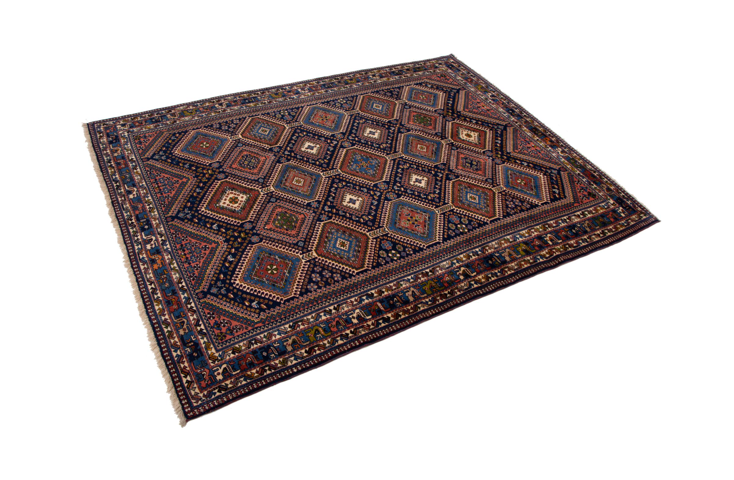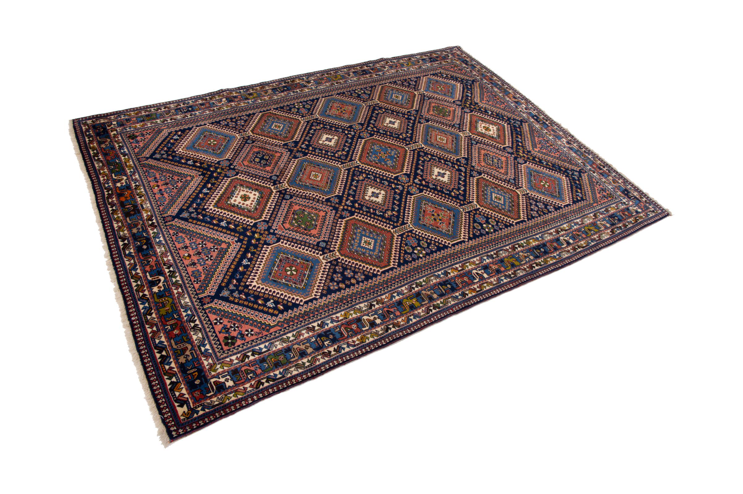 Ce tapis appartient aux tapis de village et de nomade d'Iran, anciennement la Perse. Ce type de tapis est noué à la main dans les petites villes et les villages selon l'ancienne tradition. Même les nomades nouent encore des tapis persans en plein air. Les tapis sont noués sans schéma et entièrement à partir de la tête. Ils se caractérisent par des ornements classiques, qui sont disposés en motifs droits et géométriques. Grâce à leur origine culturelle et traditionnelle, ces tapis ont un caractère unique qui incarne la Perse ancienne.