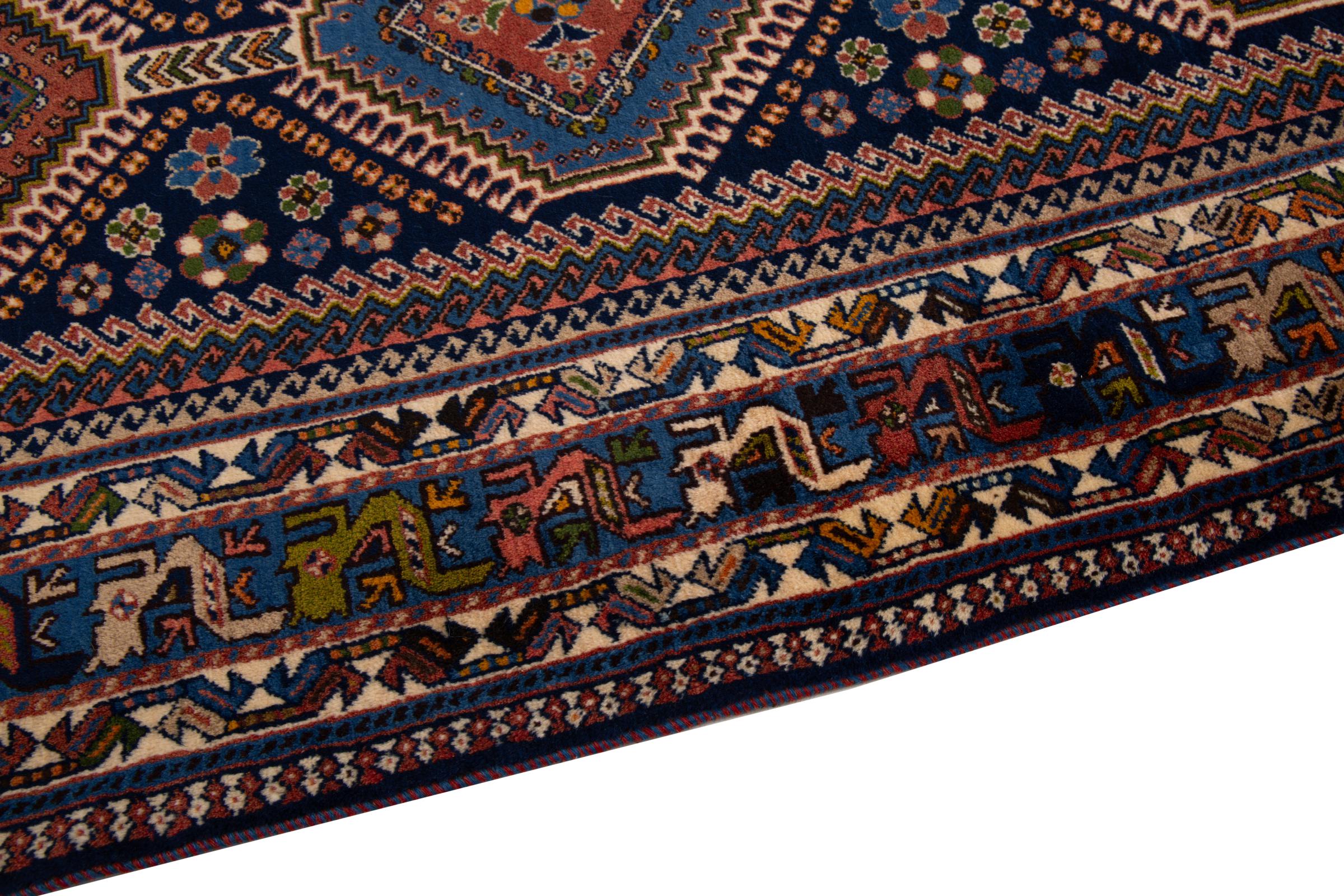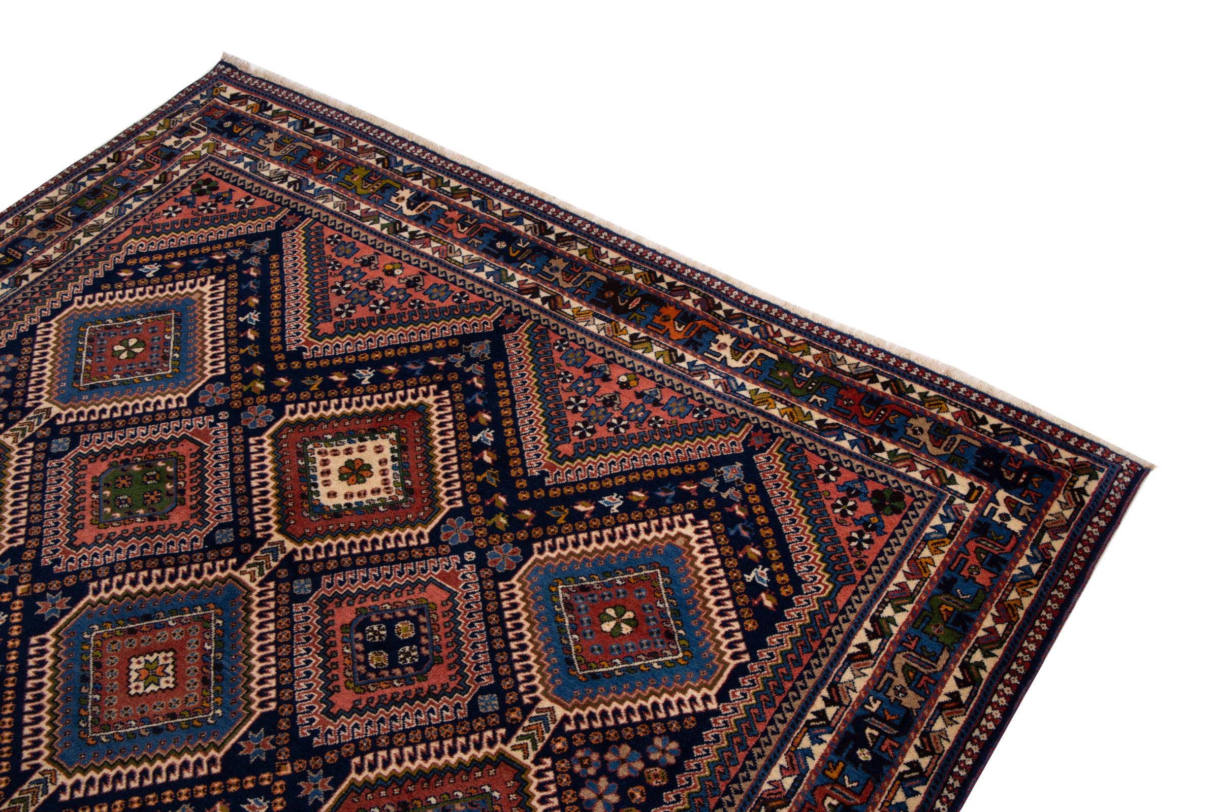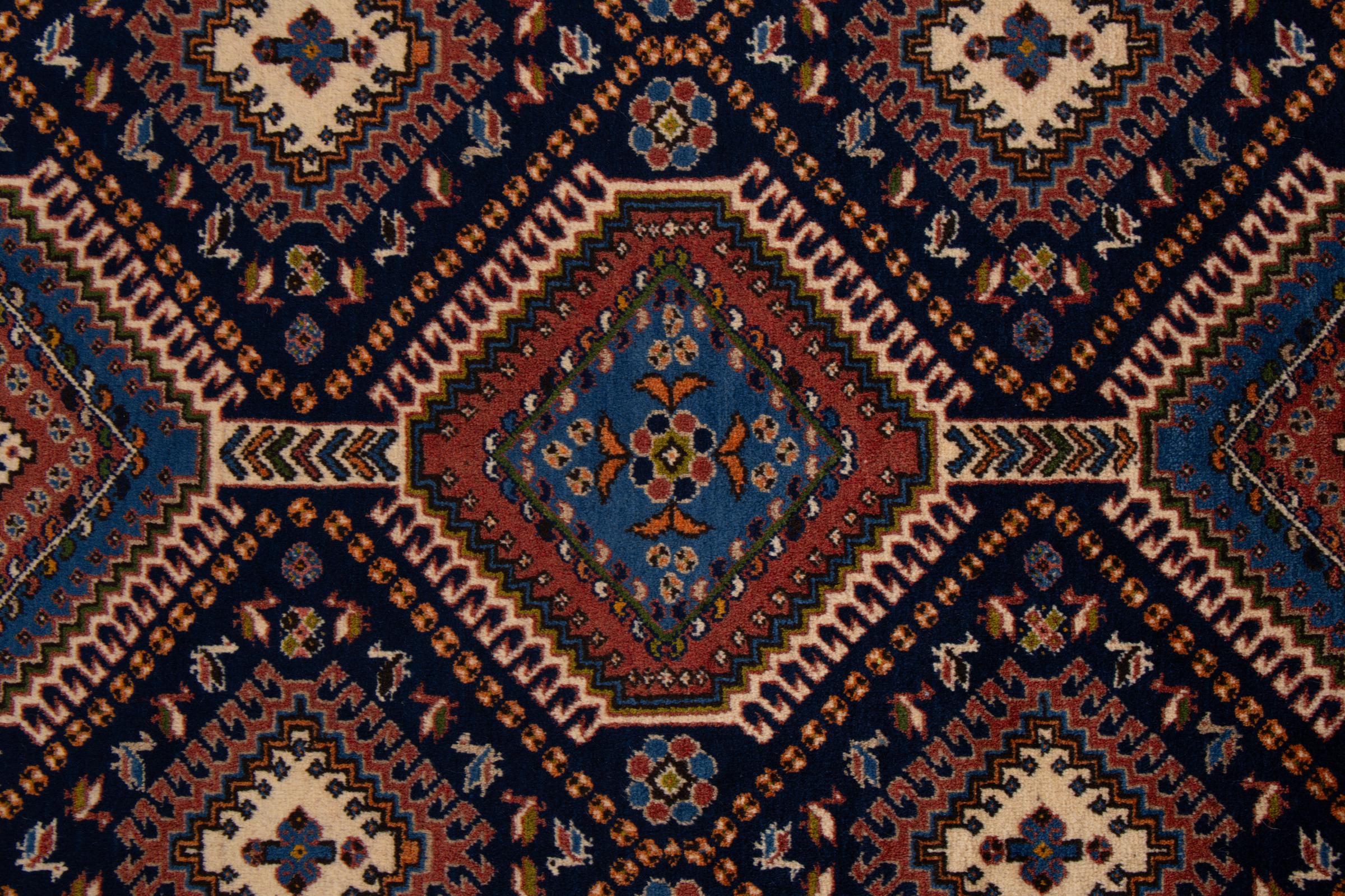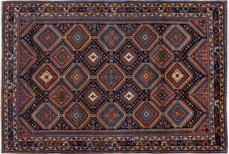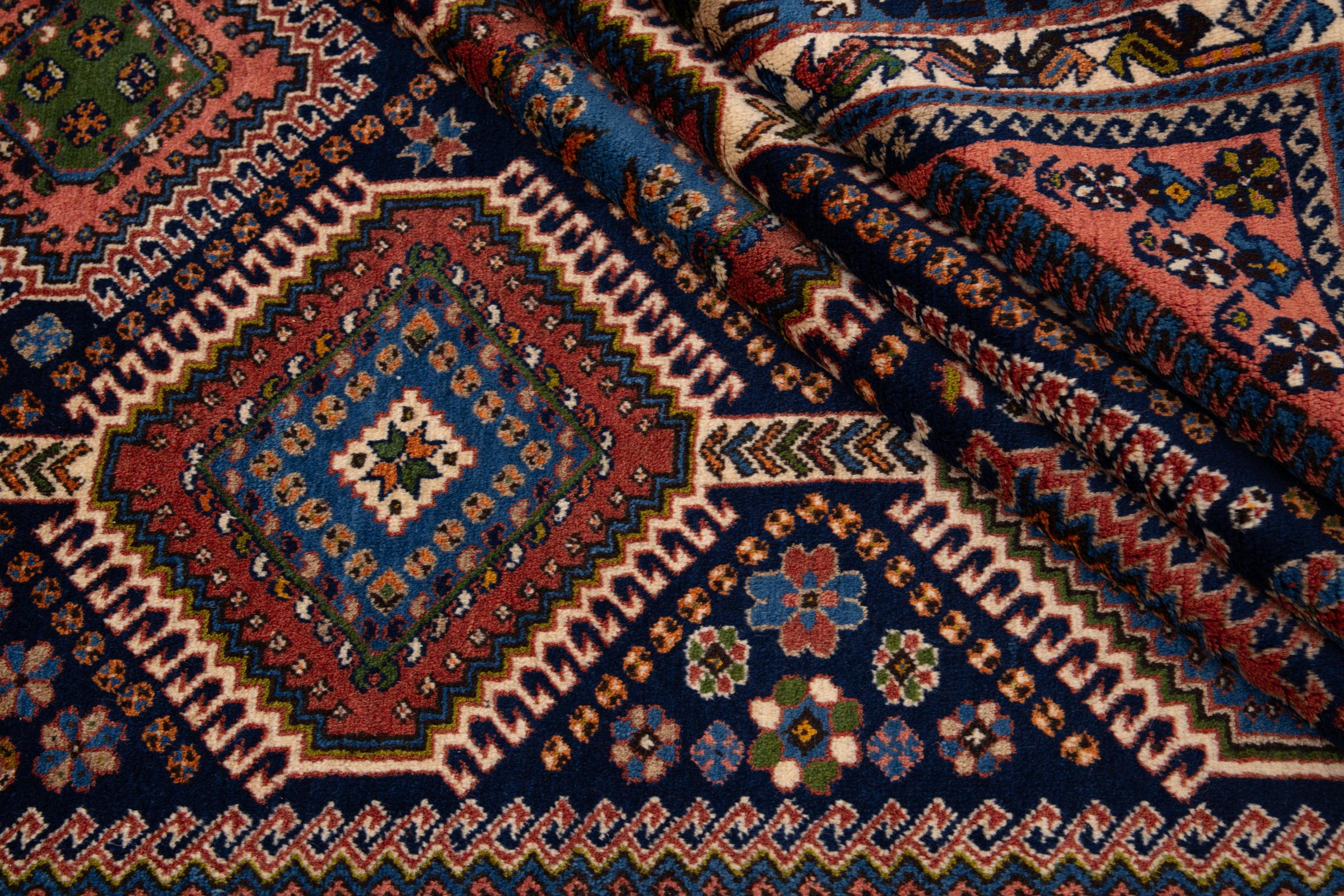 Ce tapis appartient aux tapis de village et de nomade d'Iran, anciennement la Perse. Ce type de tapis est noué à la main dans les petites villes et les villages selon l'ancienne tradition. Même les nomades nouent encore des tapis persans en plein air. Les tapis sont noués sans schéma et entièrement à partir de la tête. Ils se caractérisent par des ornements classiques, qui sont disposés en motifs droits et géométriques. Grâce à leur origine culturelle et traditionnelle, ces tapis ont un caractère unique qui incarne la Perse ancienne.