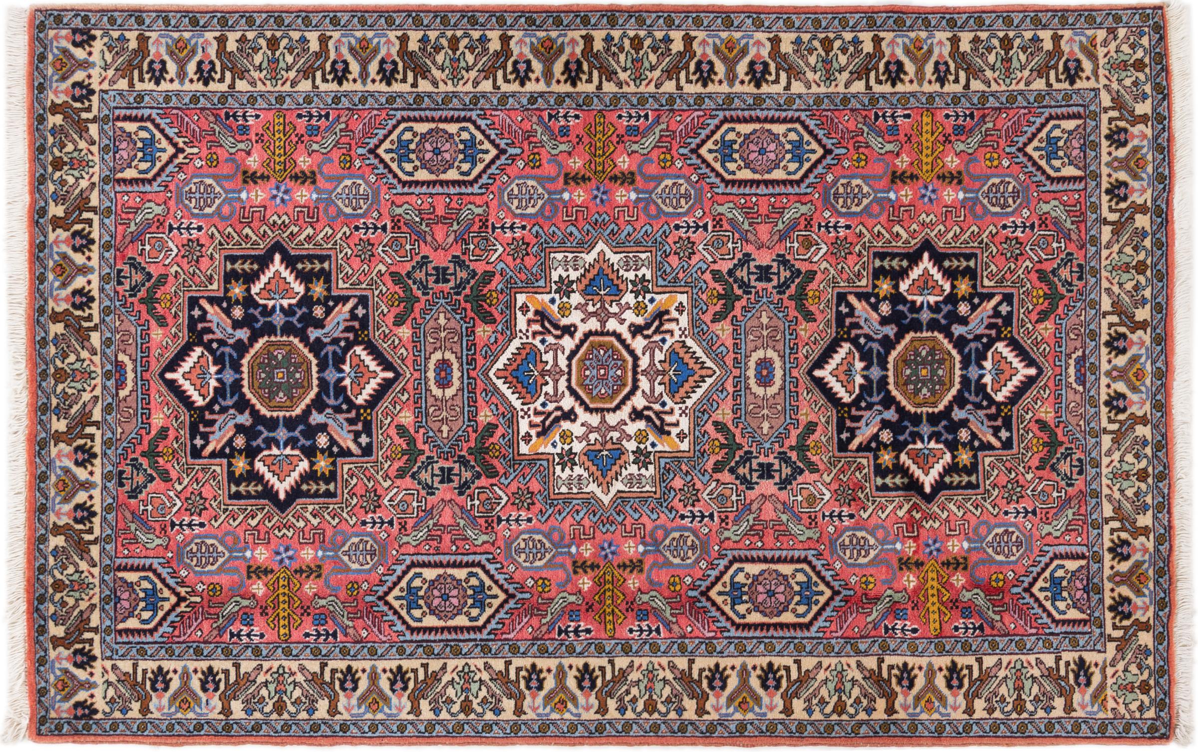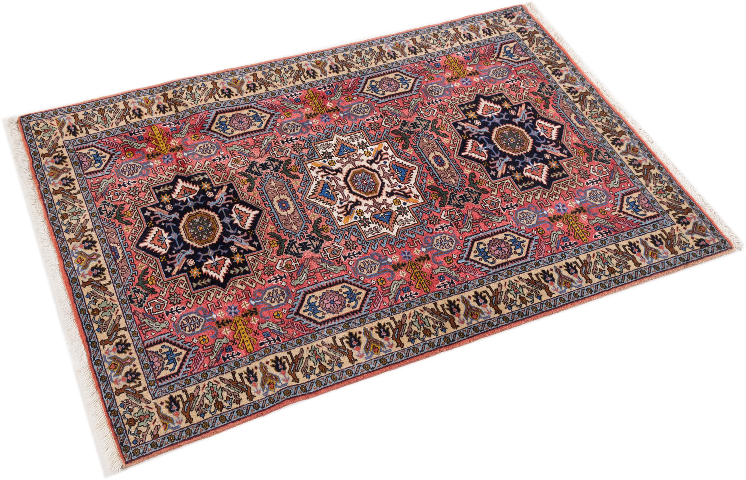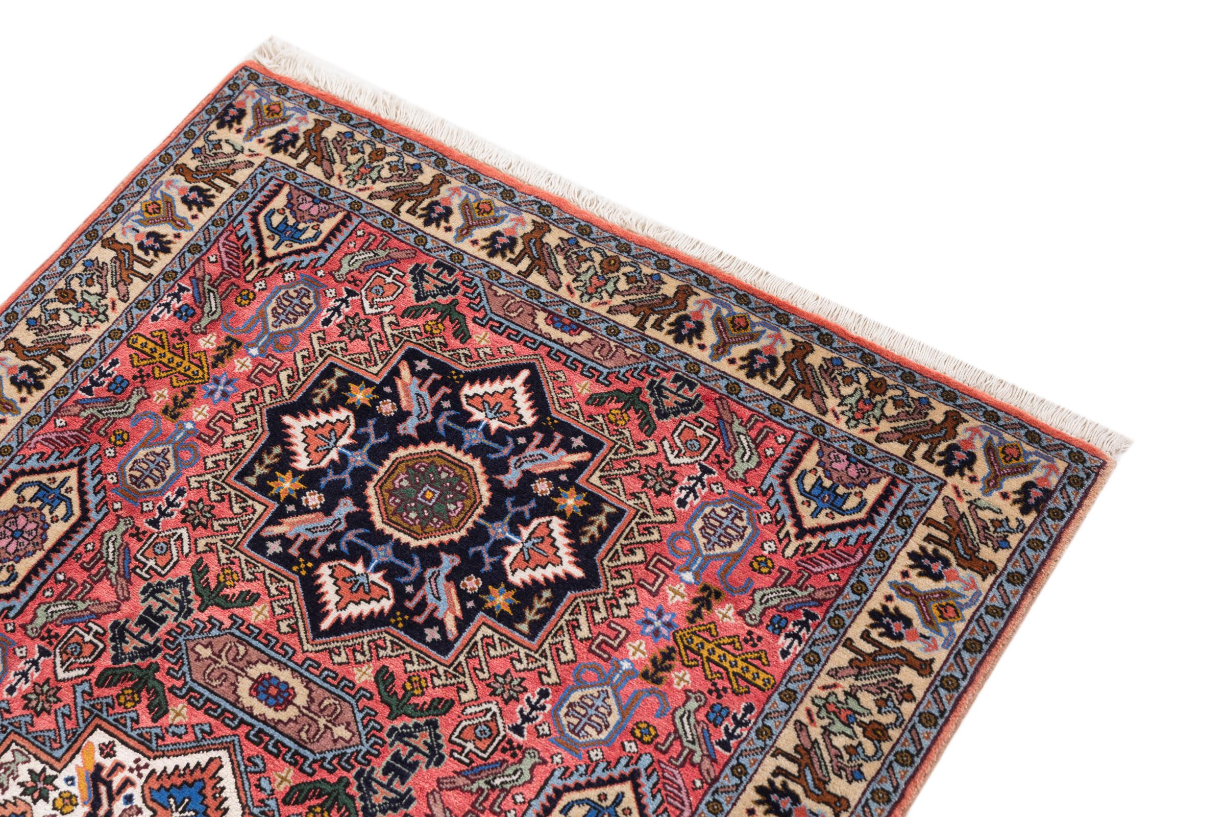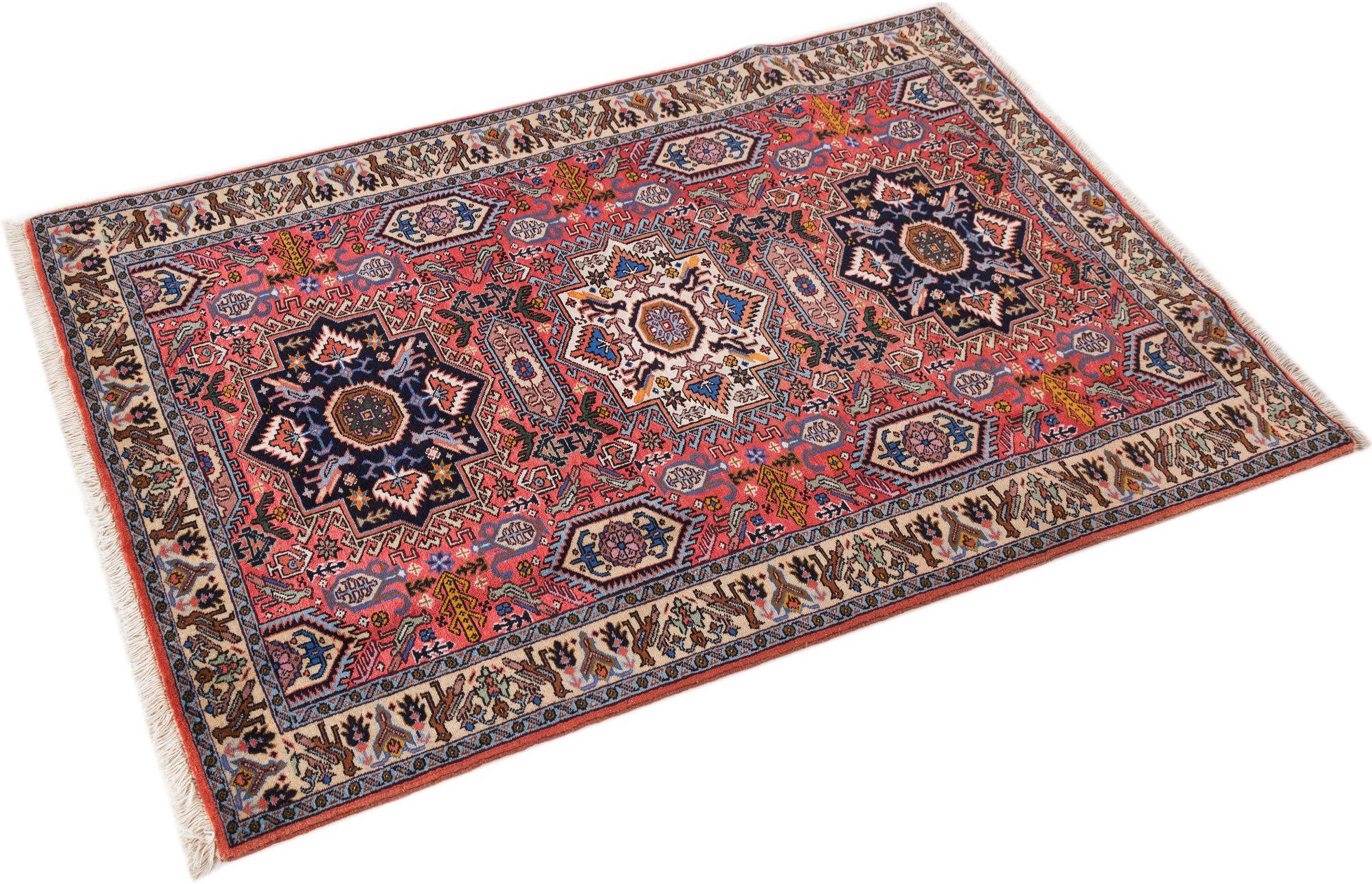 Ce tapis Heris est un parfait exemple de l’artisanat persan. Son design rustique garantit sa durabilité. Il est fabriqué dans la ville de Heris, près de la ville de Tebruz au nord-ouest de l’Iran. Evidemment, il est noué à la main. Quiconque recherchant un tapis persan durable dans le temps trouvera son bonheur avec un tapis Heris. Cmmandez ce tapis directement et laissez l’Orient entrer chez vous.