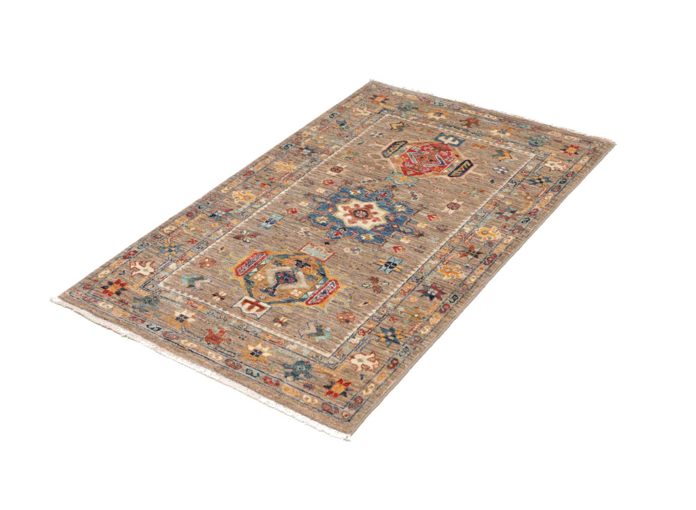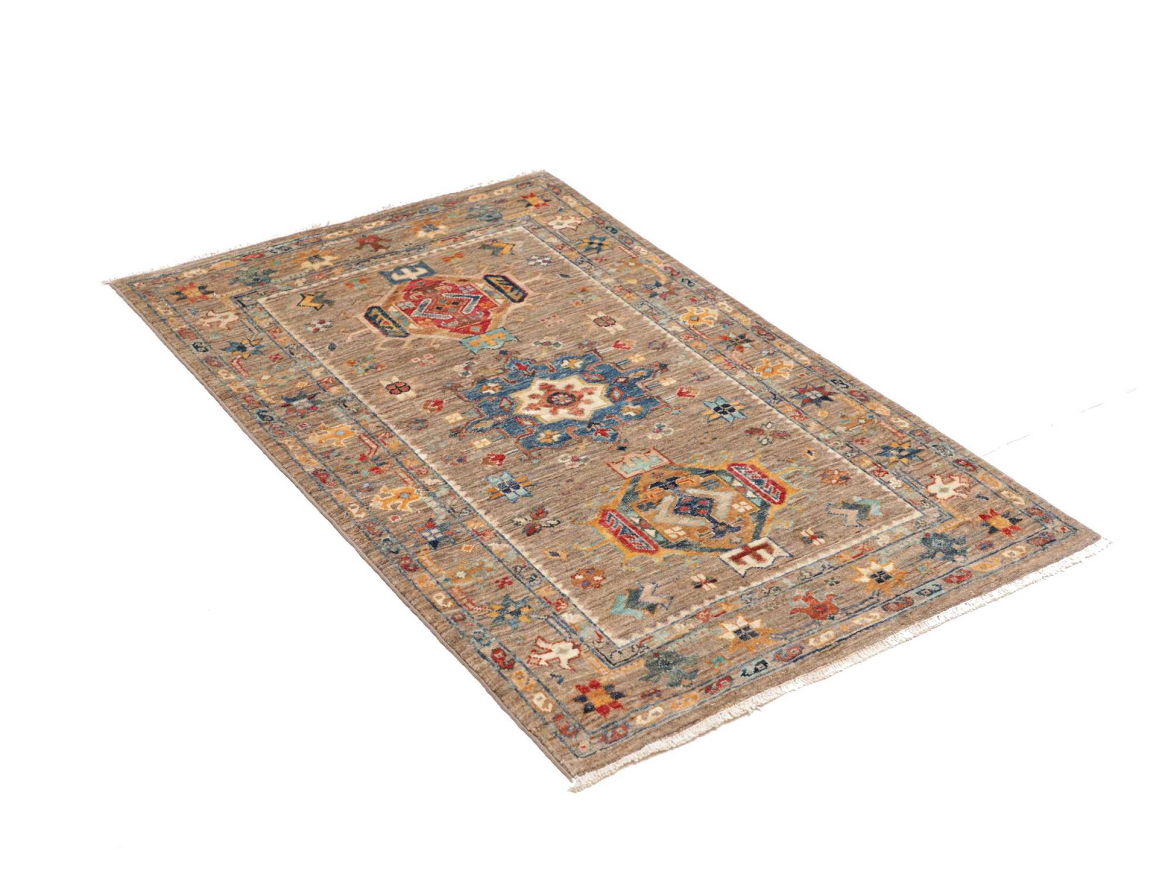 Ce tapis est fait de laine de mouton filée à la main de la plus haute qualité. En Iran (ancienne Perse), en Afghanistan et au Pakistan notamment, la laine est encore filée à la main avant que ne commence le nouage proprement dit du tapis. La laine a fait ses preuves en tant que matière naturelle et extrêmement résistante au fil des siècles. Il a notamment des propriétés antisalissures et d'isolation thermique. En même temps, la laine est incomparablement douce et a un éclat naturel.