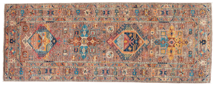 Réf. Article: 286564007330119 Taille: 206x77 cm Épaisseur: ap. 5 mm Densité de nouage: 128 000 - 160 000 / m² Fabrication: Noué à la main Velours: Laine filée à la main Chaîne: Coton Origine: Pakistan Âge: Nouveau Poids: ap. 6 kg Nombre en stock: Unique - Seulement 1 en stock