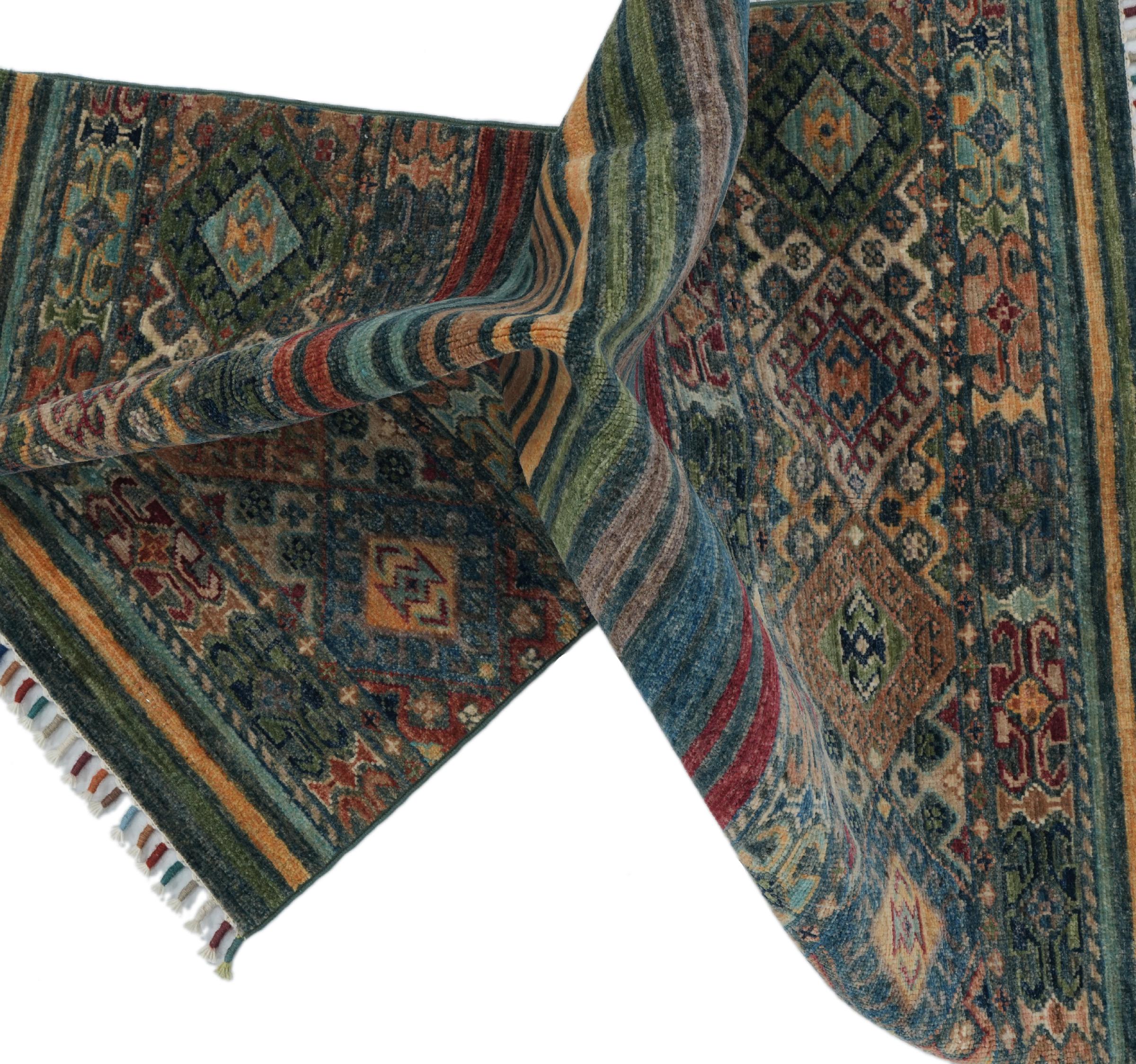 Ce tapis est fait de laine de mouton filée à la main de la plus haute qualité. En Iran (ancienne Perse), en Afghanistan et au Pakistan notamment, la laine est encore filée à la main avant que ne commence le nouage proprement dit du tapis. La laine a fait ses preuves en tant que matière naturelle et extrêmement résistante au fil des siècles. Il a notamment des propriétés antisalissures et d'isolation thermique. En même temps, la laine est incomparablement douce et a un éclat naturel.