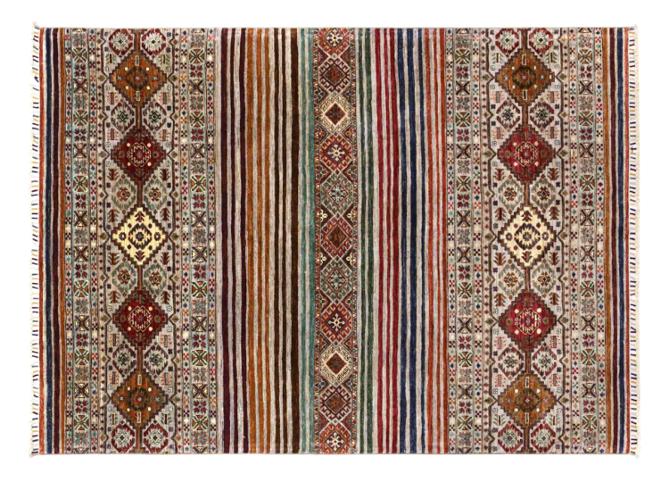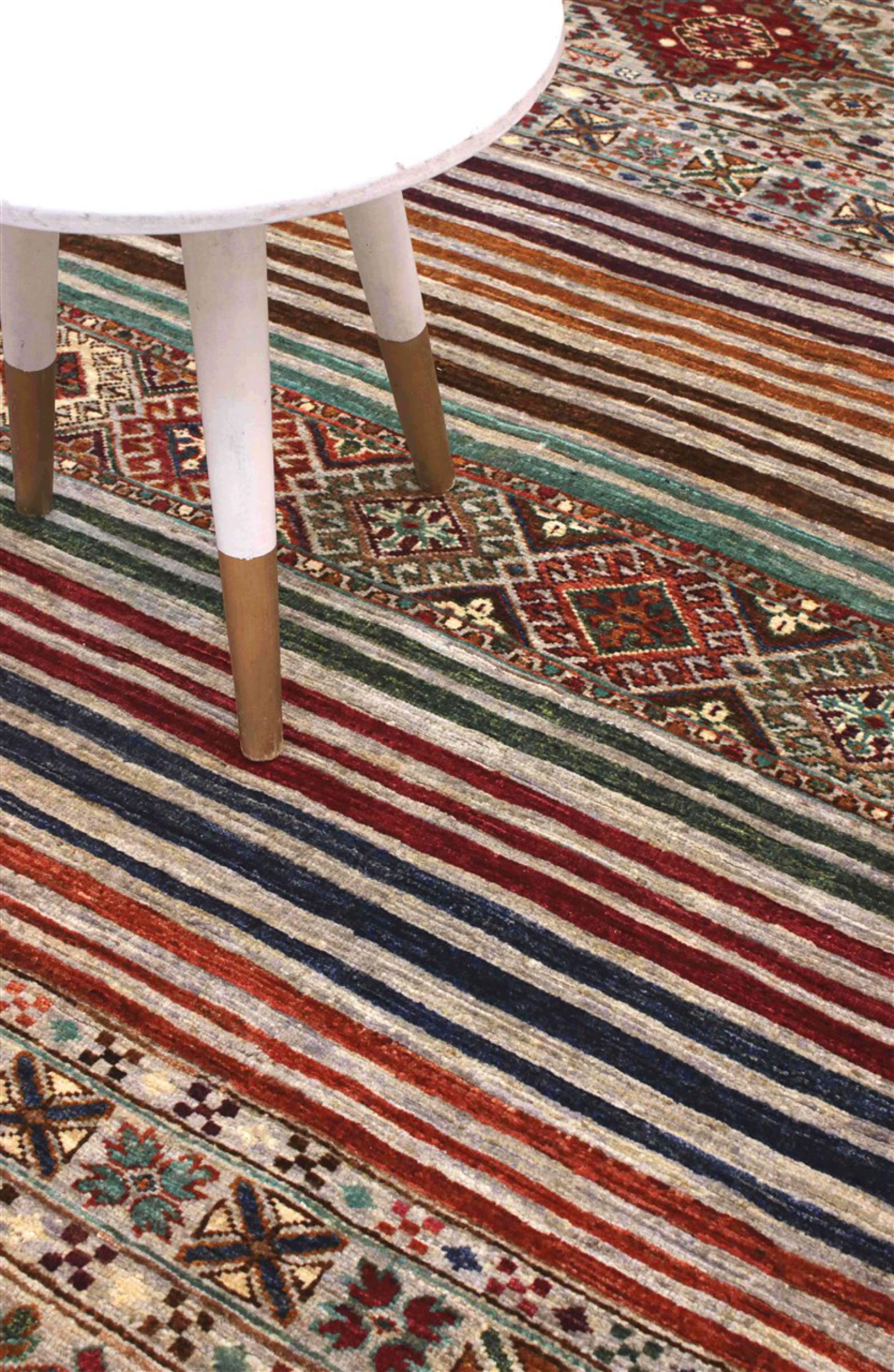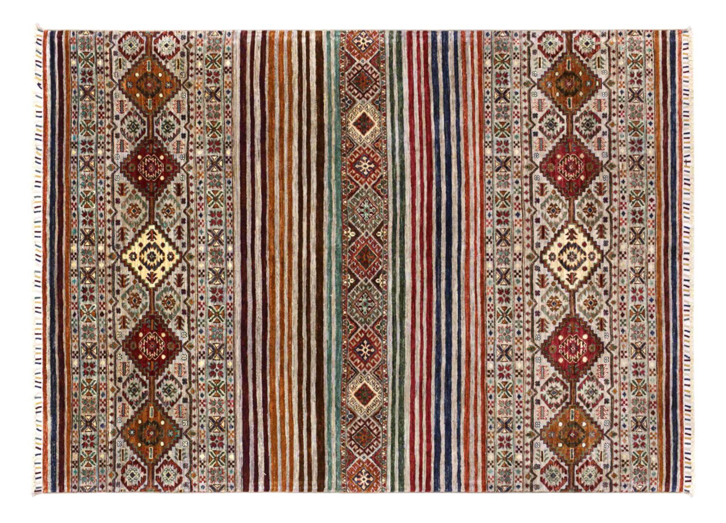 Ce tapis Arijana Shaal a été noué à la main au Pakistan avec le meilleur savoir-faire. Il promet une très grande qualité et offre donc un plaisir durable. Le motif en rayures est varié et passionnant. Il s'inspire du célèbre dessin de Moharamati. Si les tapis monochromes sont trop ennuyeux pour vous, vous serez certainement ravi de cette Arijana Shaal.
