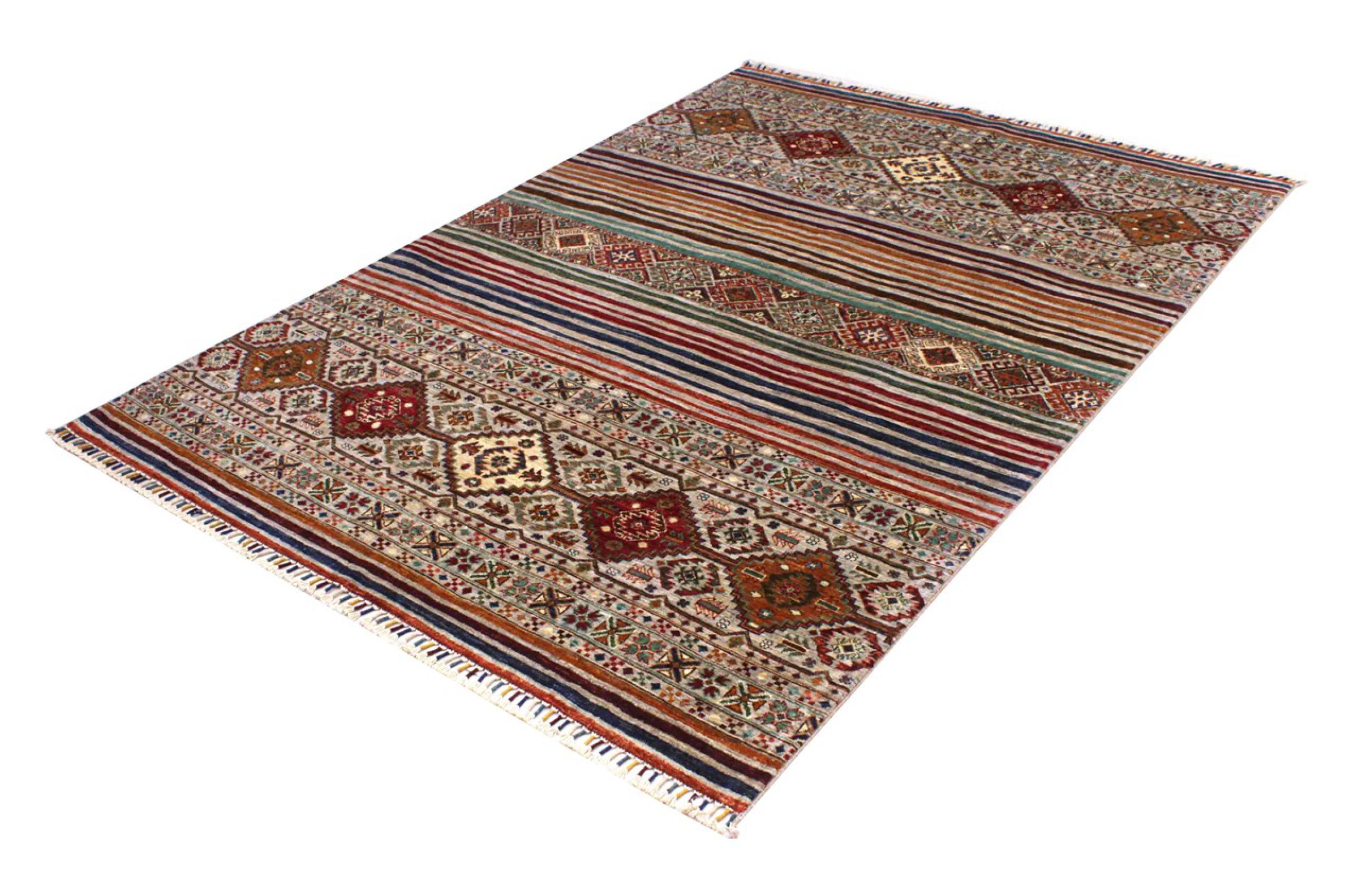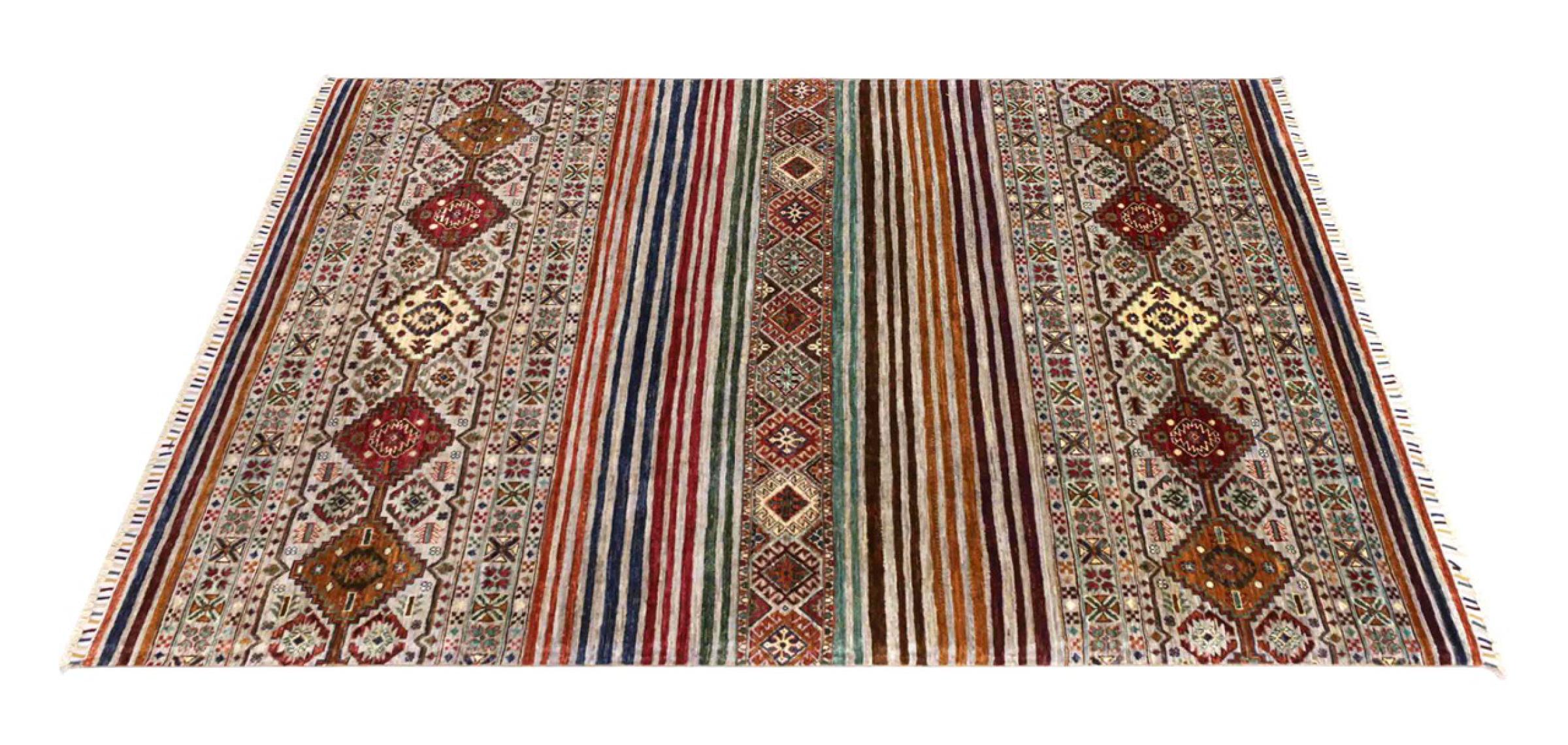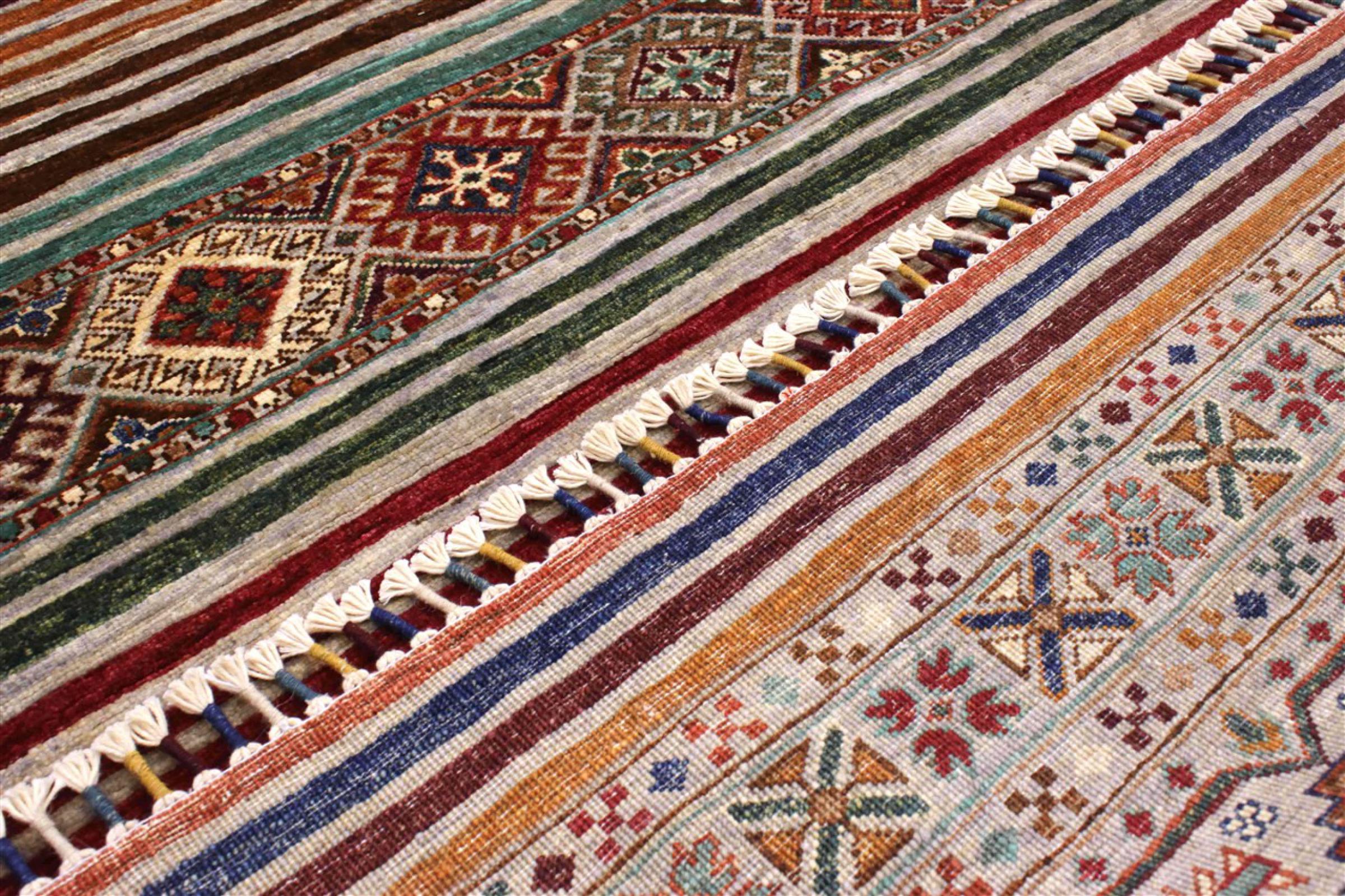 Ce tapis Arijana Shaal a été noué à la main au Pakistan avec le meilleur savoir-faire. Il promet une très grande qualité et offre donc un plaisir durable. Le motif en rayures est varié et passionnant. Il s'inspire du célèbre dessin de Moharamati. Si les tapis monochromes sont trop ennuyeux pour vous, vous serez certainement ravi de cette Arijana Shaal.
