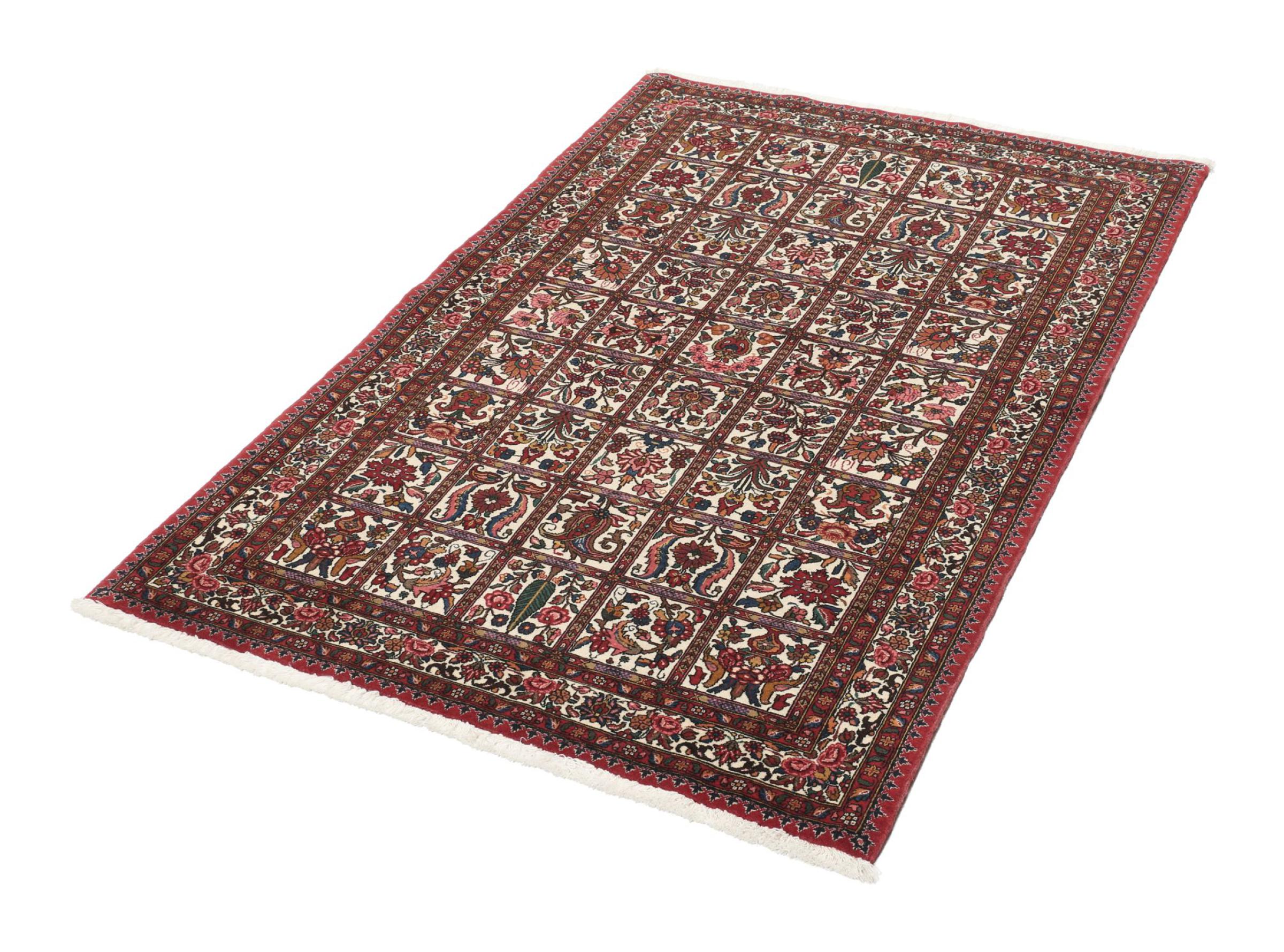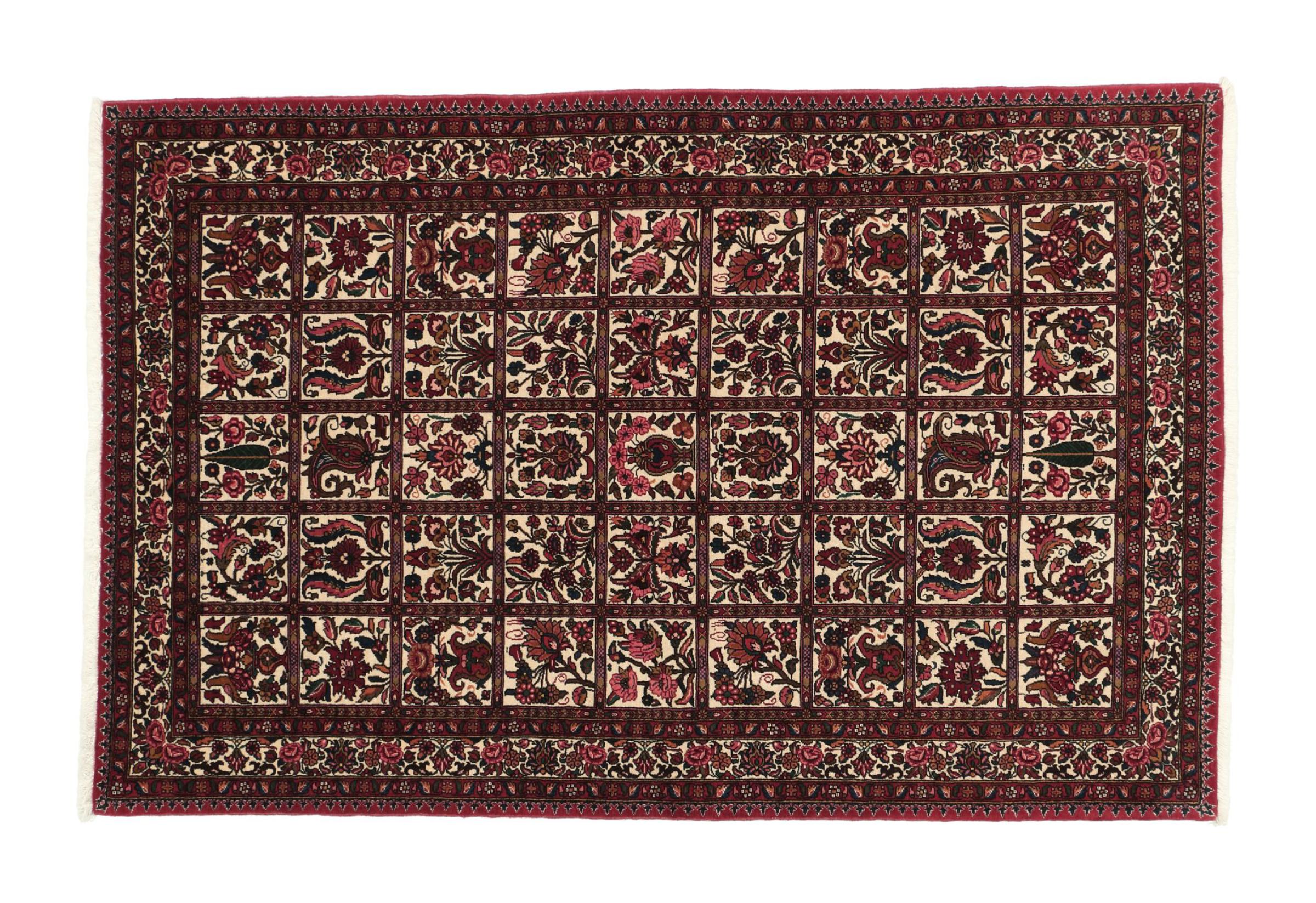 Ce Bakhtiar persan a été noué à la main par les nomades de la tribu Bakhtiari. Ce tapis persan joue avec les couleurs de l'Orient dans les plus beaux motifs. Le design de ses ornements s'inspire des jardins persans. Au fil des ans, la conception dite traditionnelle des jardins a gagné en popularité dans le monde occidental. Sa haute densité de nouage, combinée à la solidité du fil, promet un plaisir durable de l'art du tapis persan.