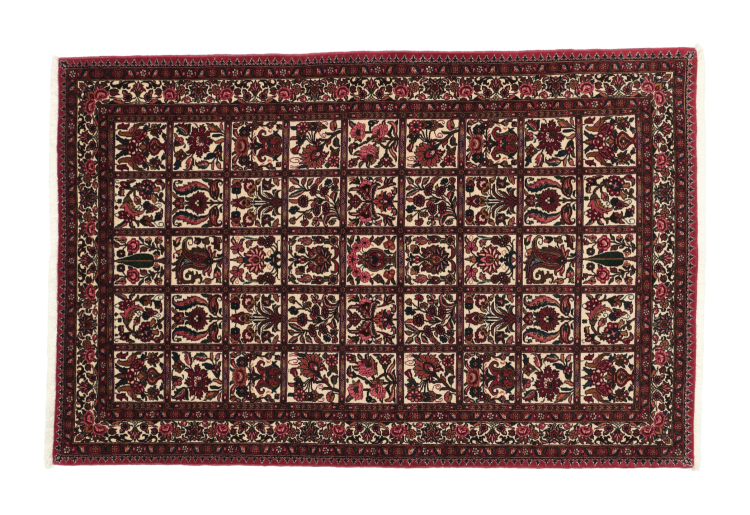 Réf. Article: 308928008594974 Taille: 161x106 cm Épaisseur: ap. 12 mm Densité de nouage: 440 000 - 490 000 / m² Fabrication: Noué à la main Velours: Laine filée à la main Chaîne: Coton Origine: Persie / Iran Âge: Nouveau Poids: ap. 6 kg Également connu sous Baktjar Nombre en stock: Unique - Seulement 1 en stock