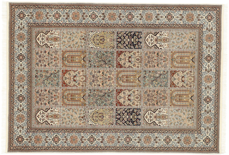 Réf. Article: 309177005149090 Taille: 206x145 cm Épaisseur: ap. 10 mm Densité de nouage: 200 000 - 250 000 / m² Fabrication: Noué à la main Velours: Laine avec de la soie Chaîne: Coton Origine: Inde Âge: Nouveau Poids: ap. 10 kg Nombre en stock: Unique - Seulement 1 en stock