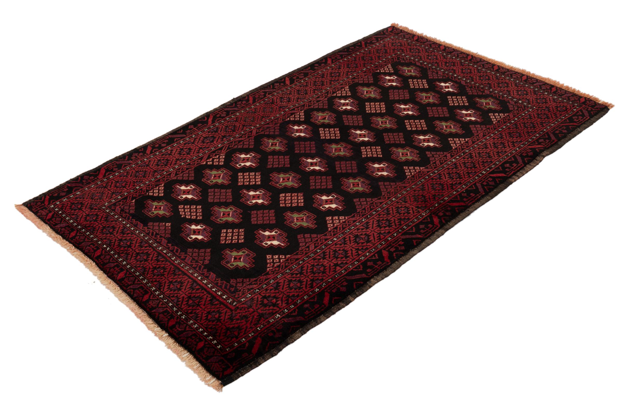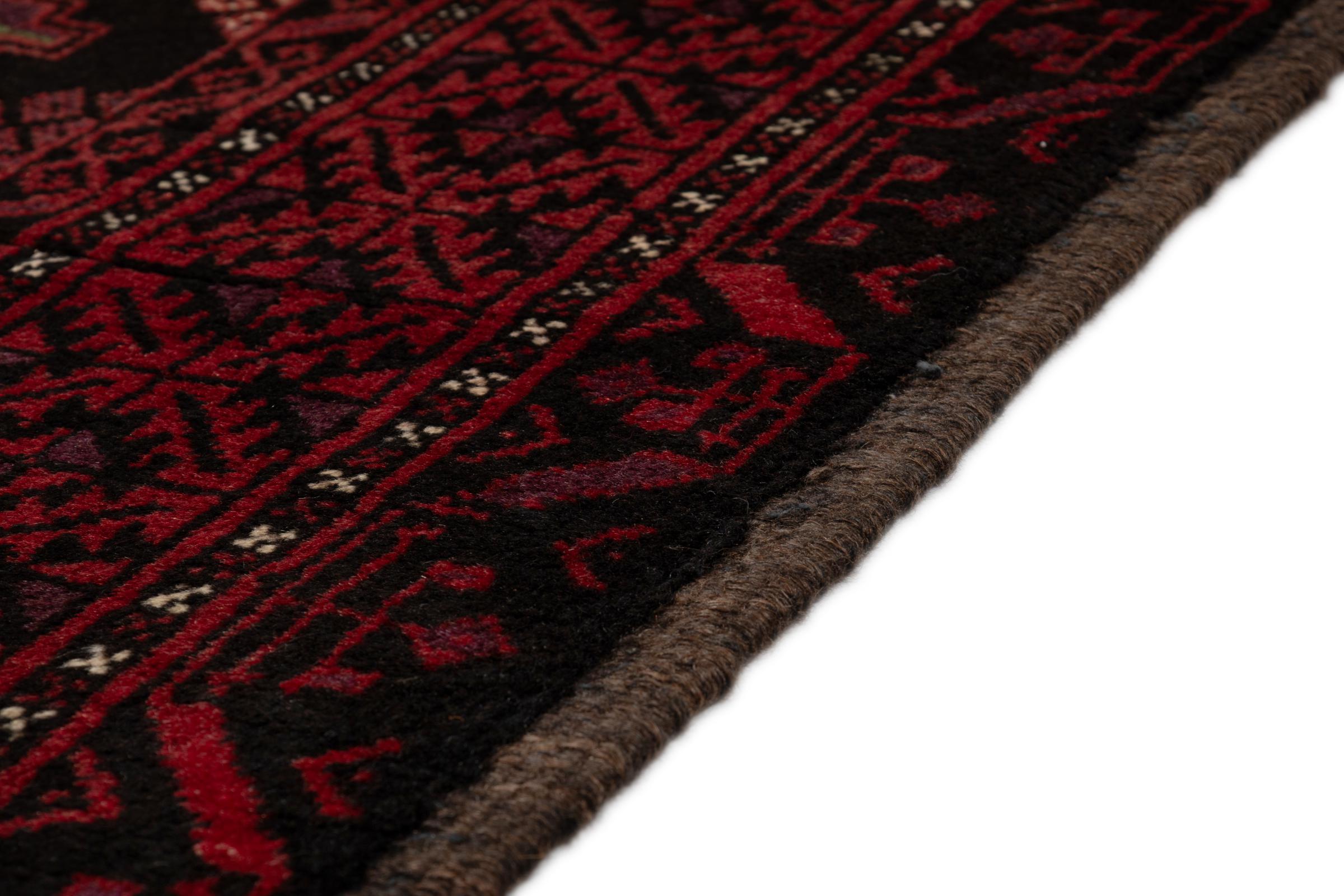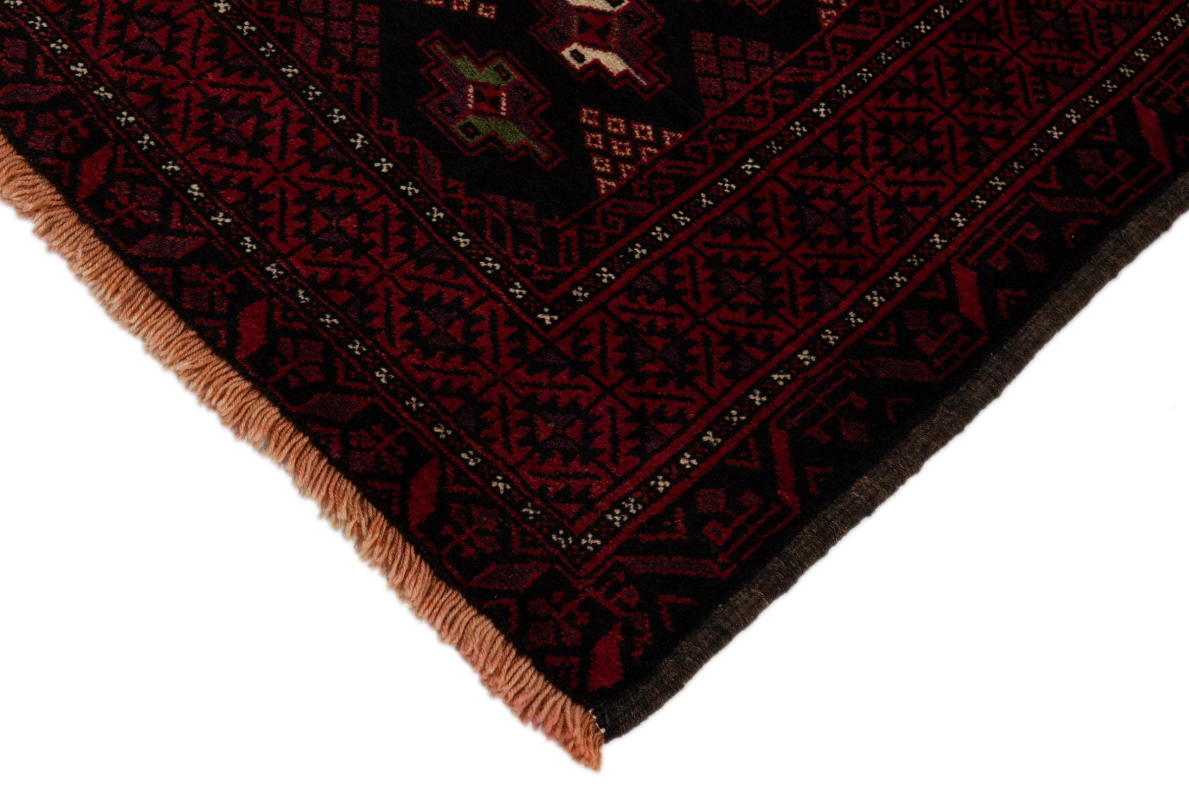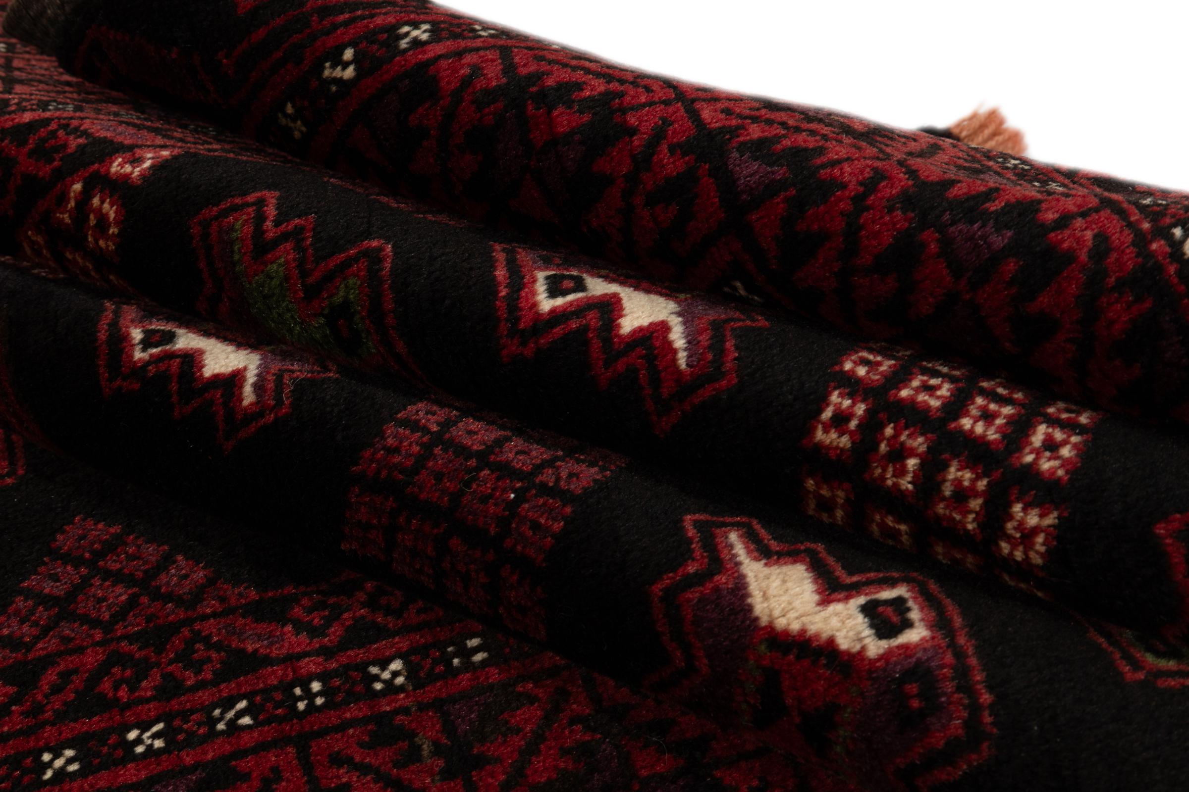 Ce tapis Baluch est un incroyable exemple de l’authentique art nomade. Ce tapis persan, fait au niveau de la frontière entre l’Iran et l’Afghanistan, sait comment vous convaincre grâce à son nouage dense et asymétrique. Les motifs vivants le rendent incroyable. Son merveilleux fil est la preuve de sa qualité et lui permet de résister au temps.