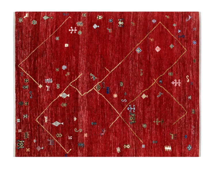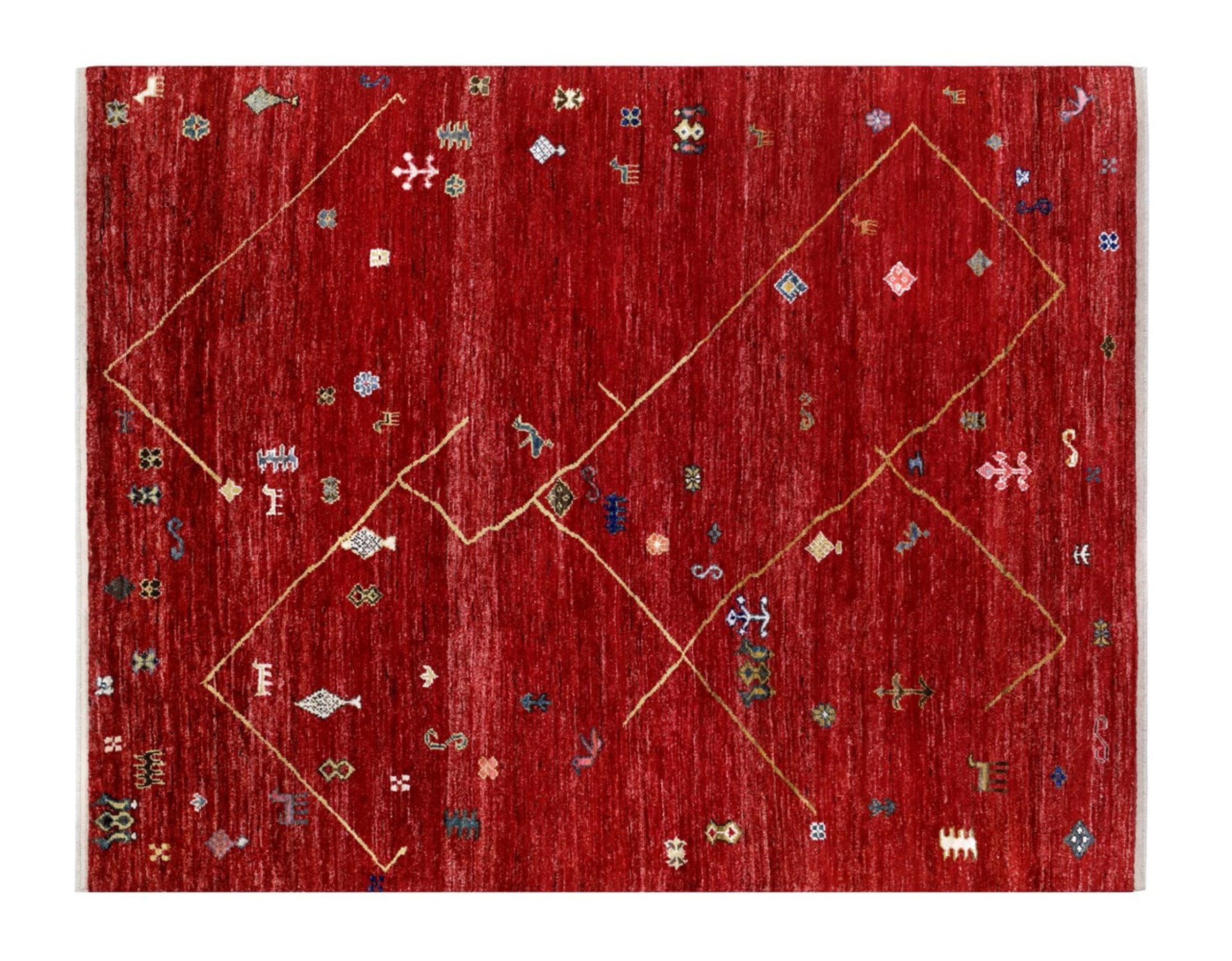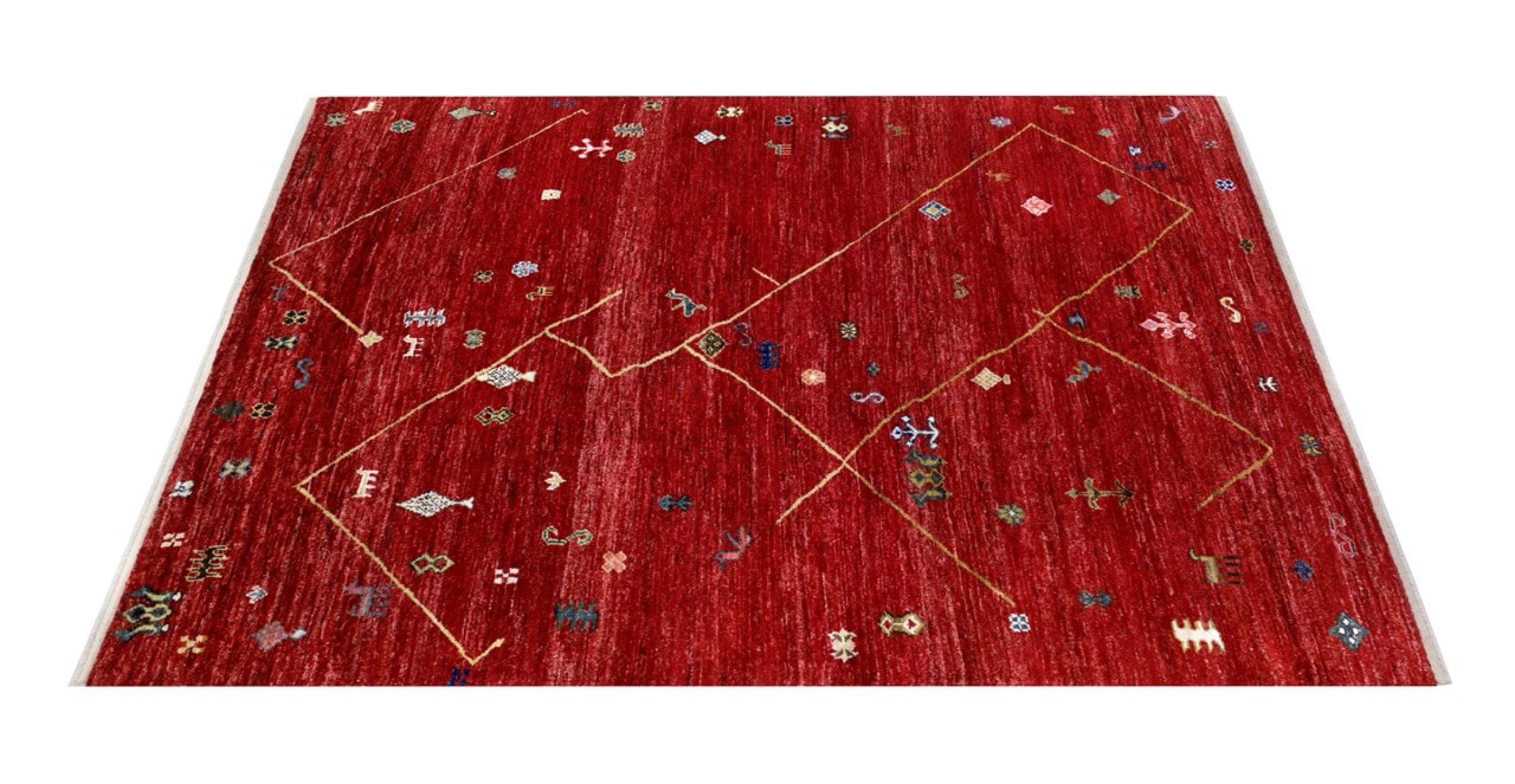 Ce tapis berbère Ghashghai se caractérise par sa laine de grande qualité et un tissage dense et particulièrement précis. Il est donc exceptionnellement durable et possède des poils toujours fermes mais merveilleusement doux. Son design inspire chaque jour avec des couleurs et des motifs symboliques.