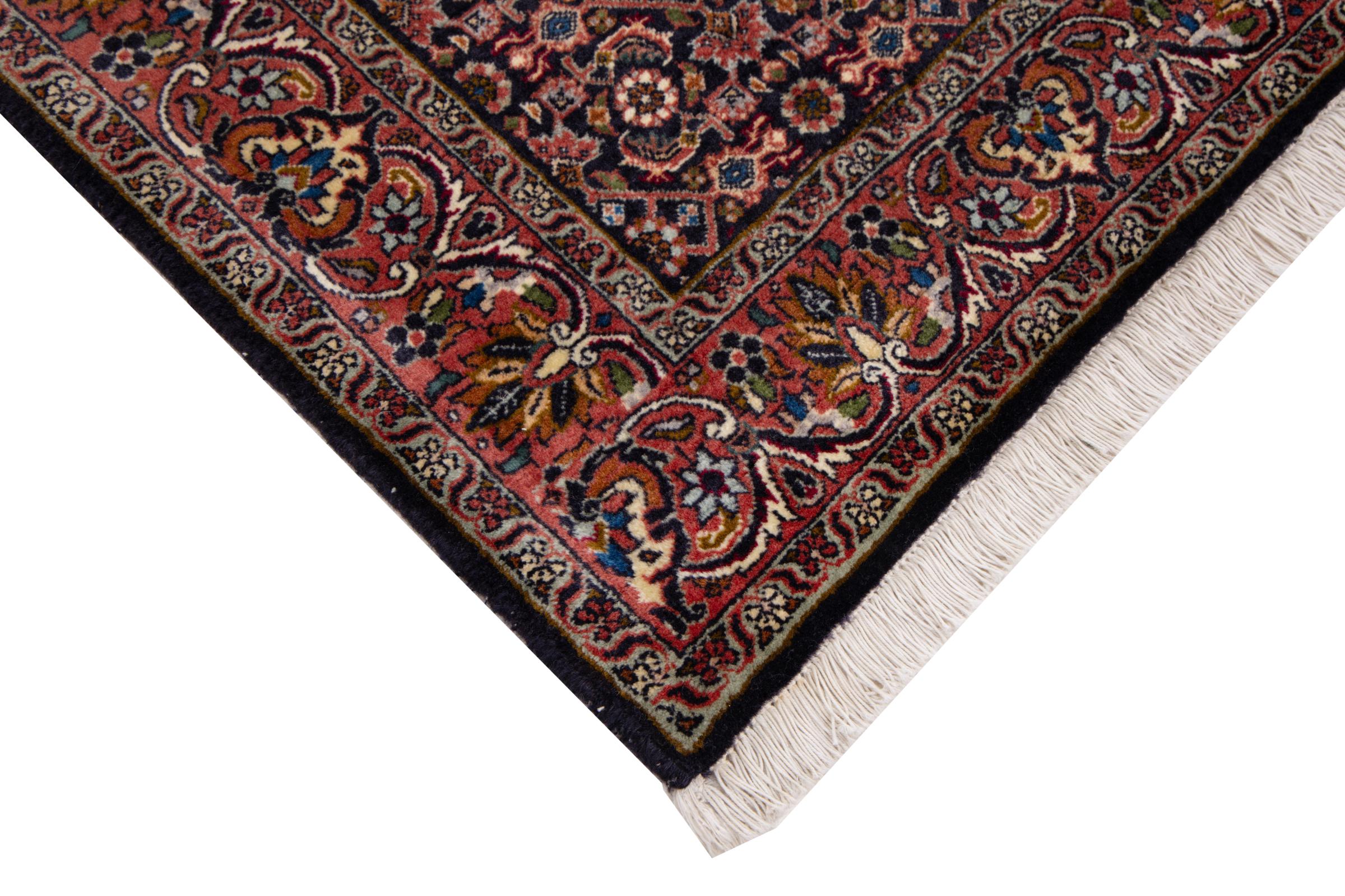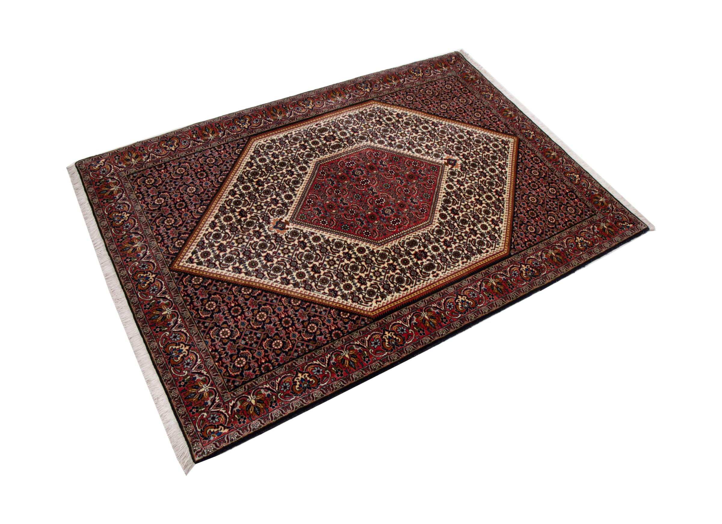 Ce tapis persan a été fabriqué dans une petite commune kurde à l’ouest de l’Iran. Les tapis Bidjar représentent la qualité. Son velours compact convainc de part sa densité importante et sa forte résistance. Vous pouvez en être certain : le tapis kurde est parfait. Et ce pour l’éternité.