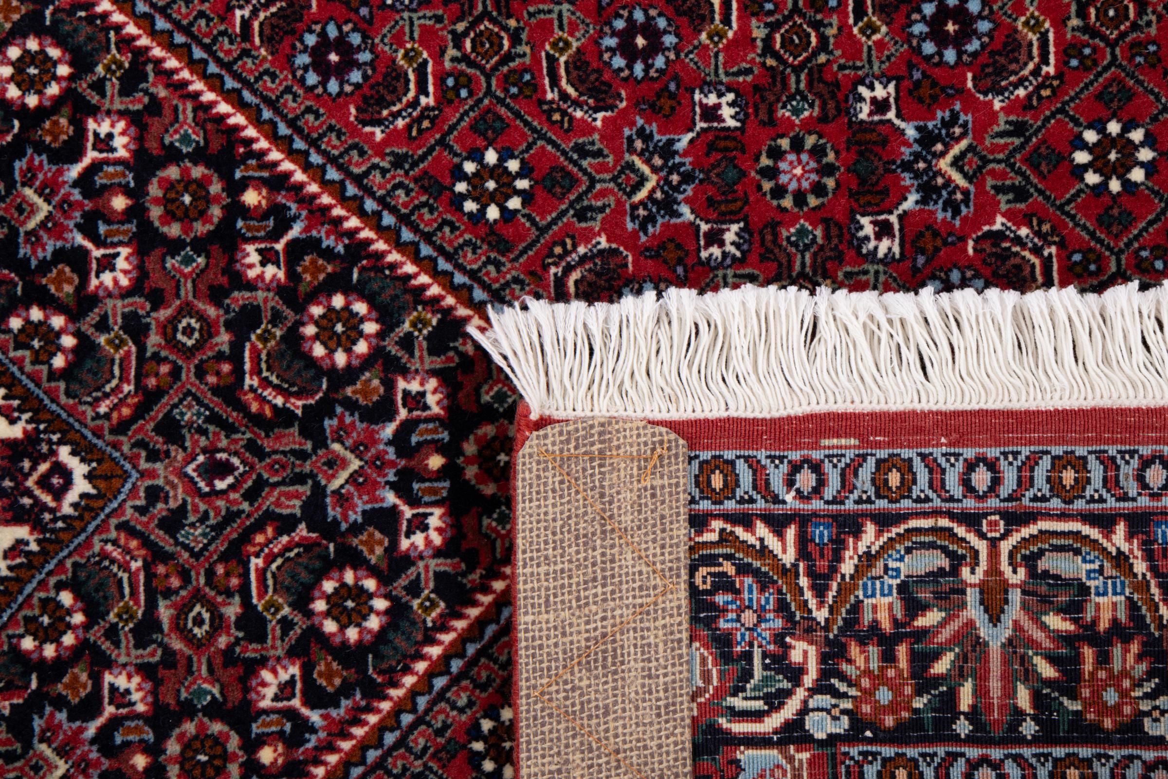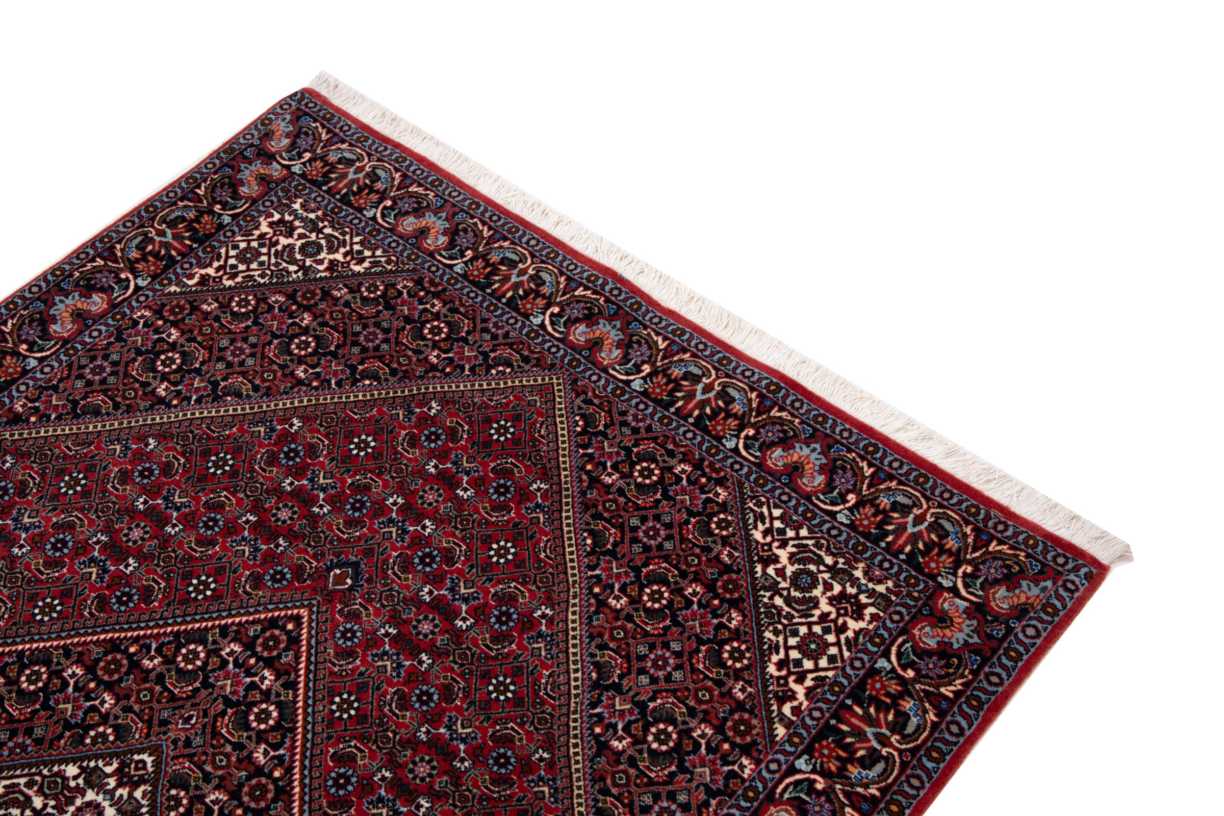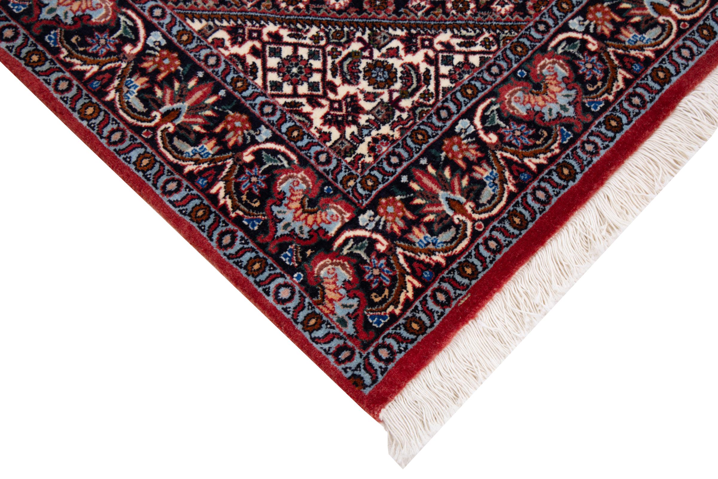 Ce tapis persan a été fabriqué dans une petite commune kurde à l’ouest de l’Iran. Les tapis Bidjar représentent la qualité. Son velours compact convainc de part sa densité importante et sa forte résistance. Vous pouvez en être certain : le tapis kurde est parfait. Et ce pour l’éternité.