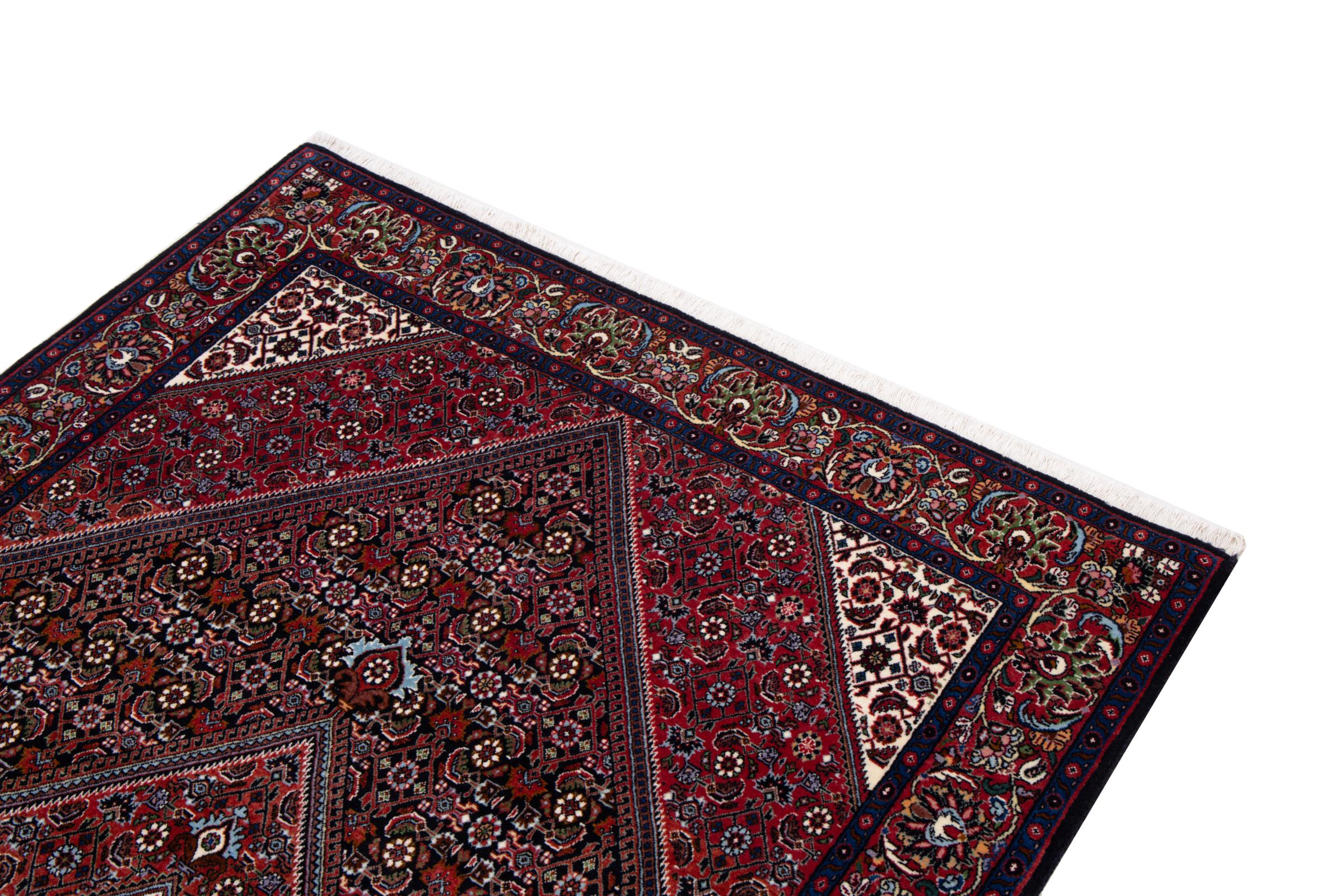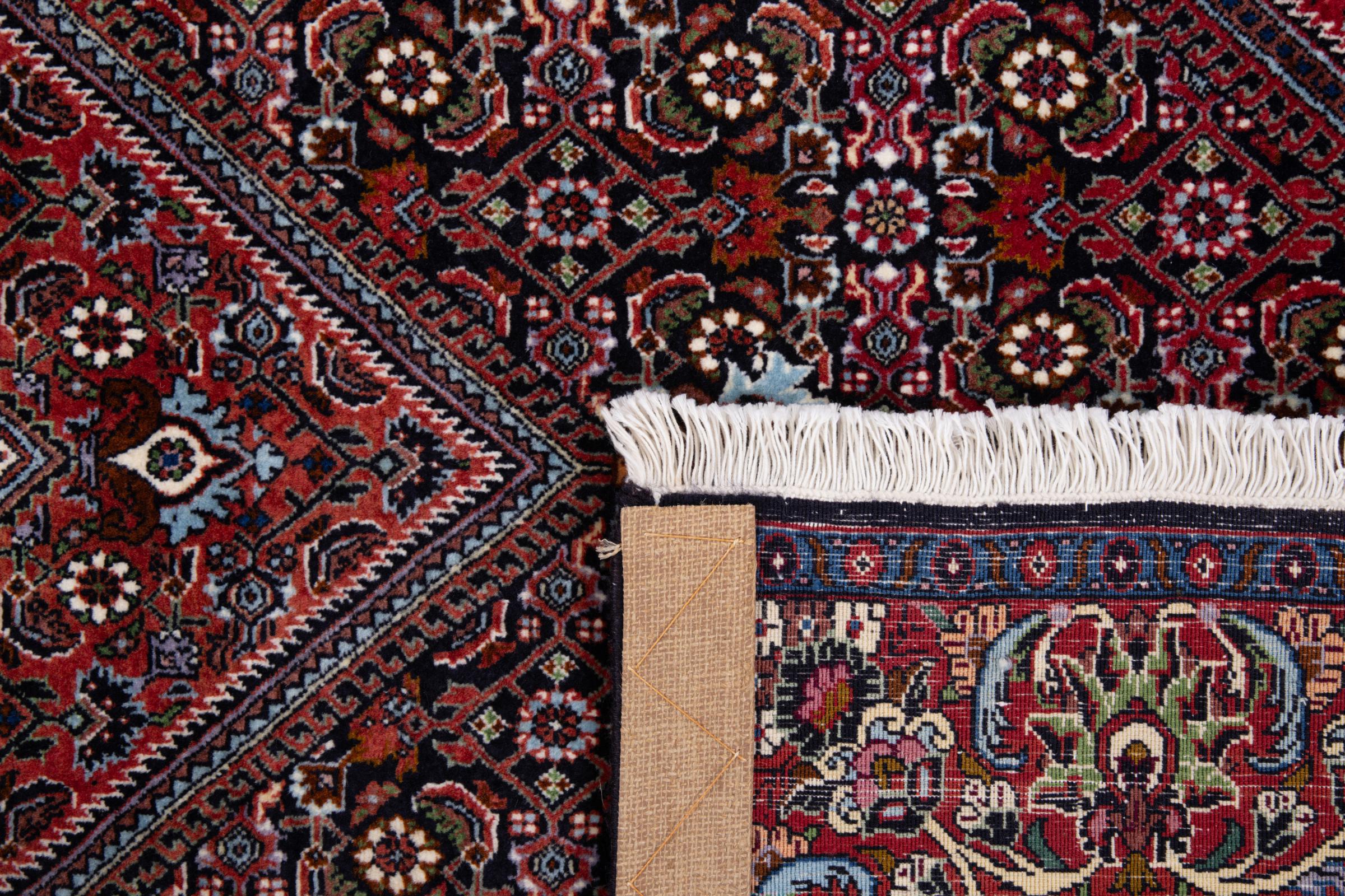 Ce tapis persan a été fabriqué dans une petite commune kurde à l’ouest de l’Iran. Les tapis Bidjar représentent la qualité. Son velours compact convainc de part sa densité importante et sa forte résistance. Vous pouvez en être certain : le tapis kurde est parfait. Et ce pour l’éternité.