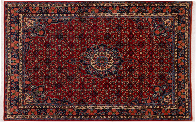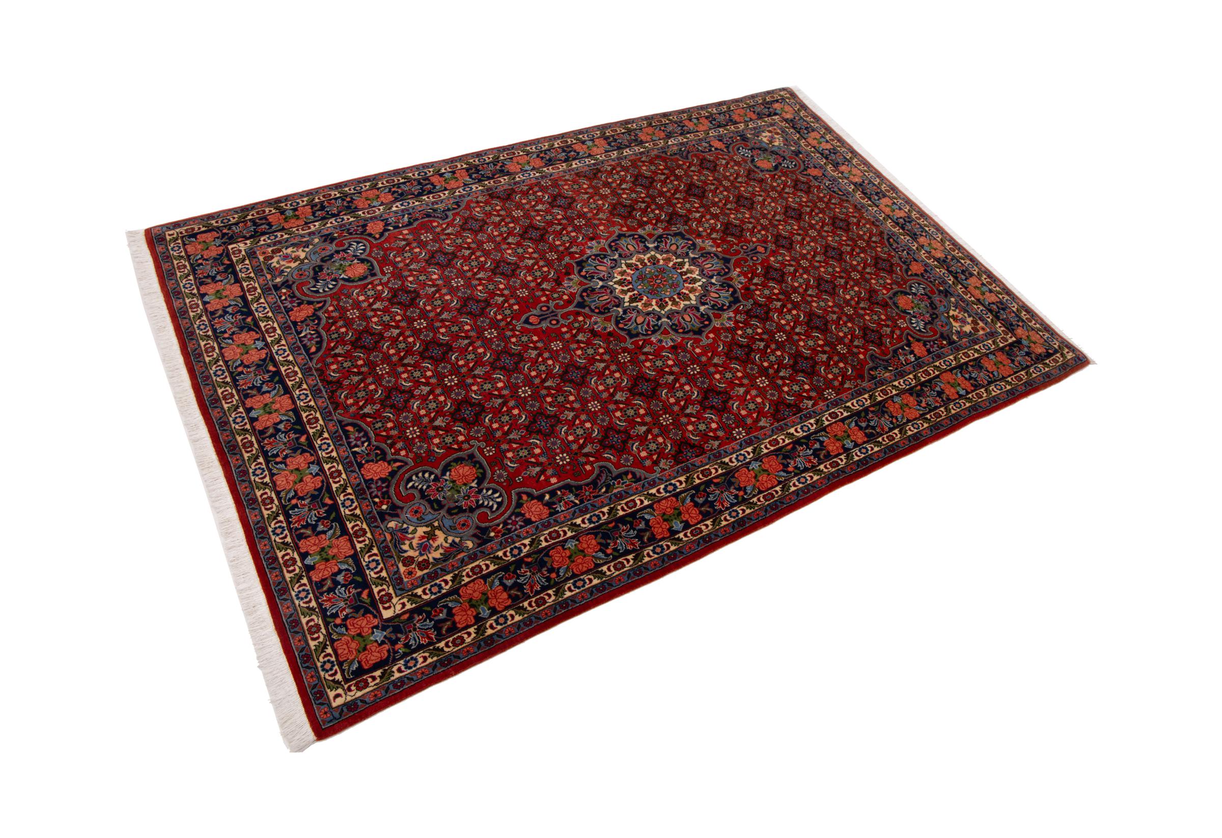 Ce tapis persan a été fabriqué dans une petite commune kurde à l’ouest de l’Iran. Les tapis Bidjar représentent la qualité. Son velours compact convainc de part sa densité importante et sa forte résistance. Vous pouvez en être certain : le tapis kurde est parfait. Et ce pour l’éternité.