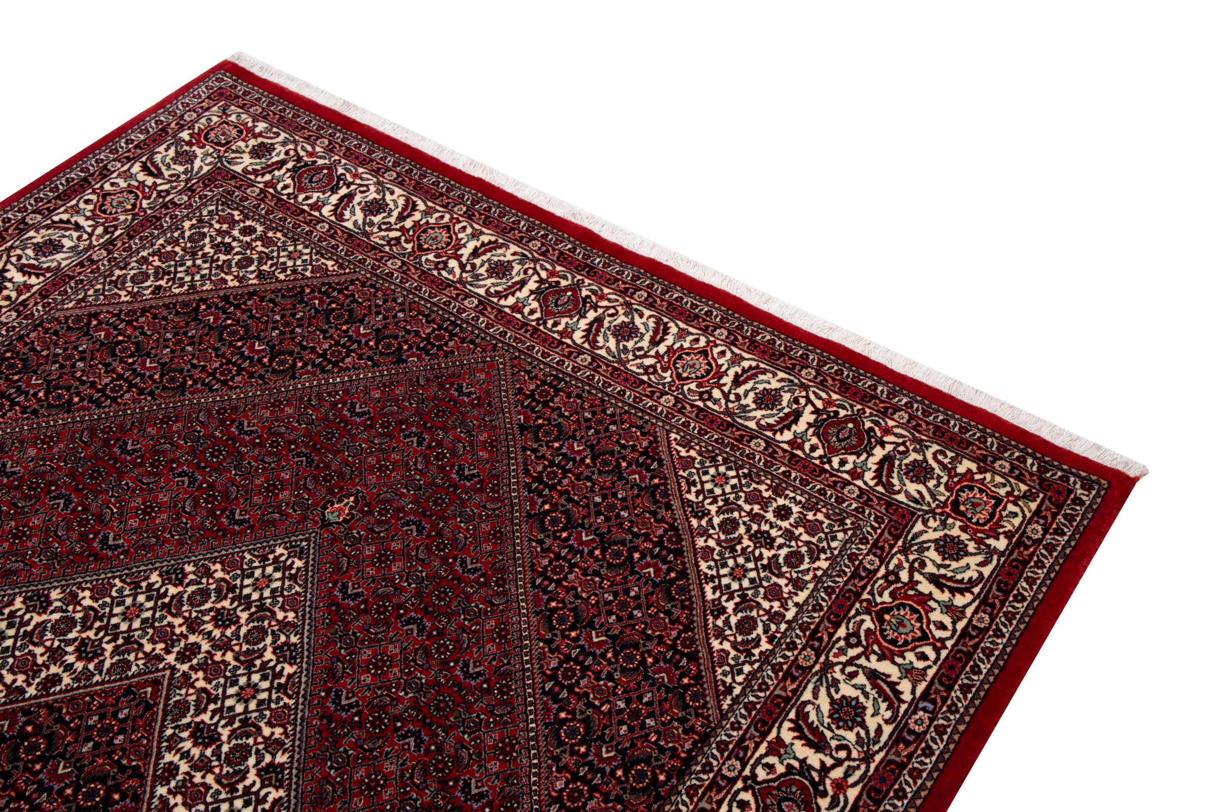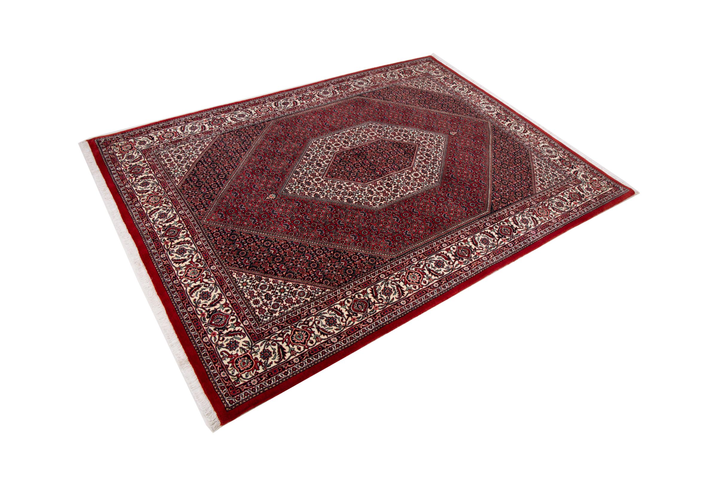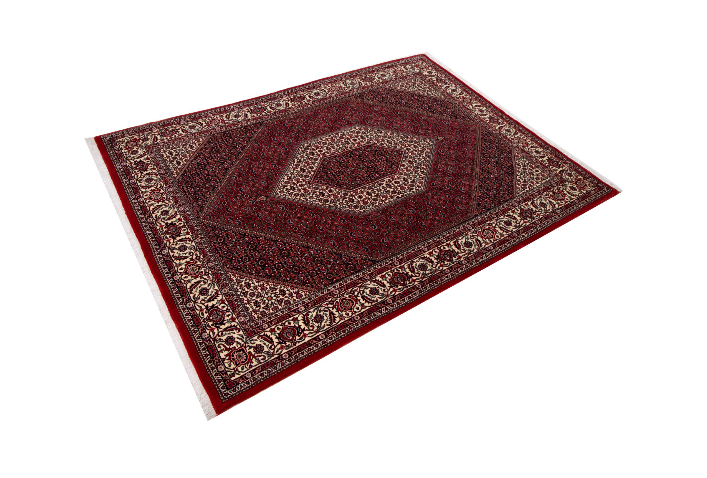 Ce tapis persan a été fabriqué dans une petite commune kurde à l’ouest de l’Iran. Les tapis Bidjar représentent la qualité. Son velours compact convainc de part sa densité importante et sa forte résistance. Vous pouvez en être certain : le tapis kurde est parfait. Et ce pour l’éternité.