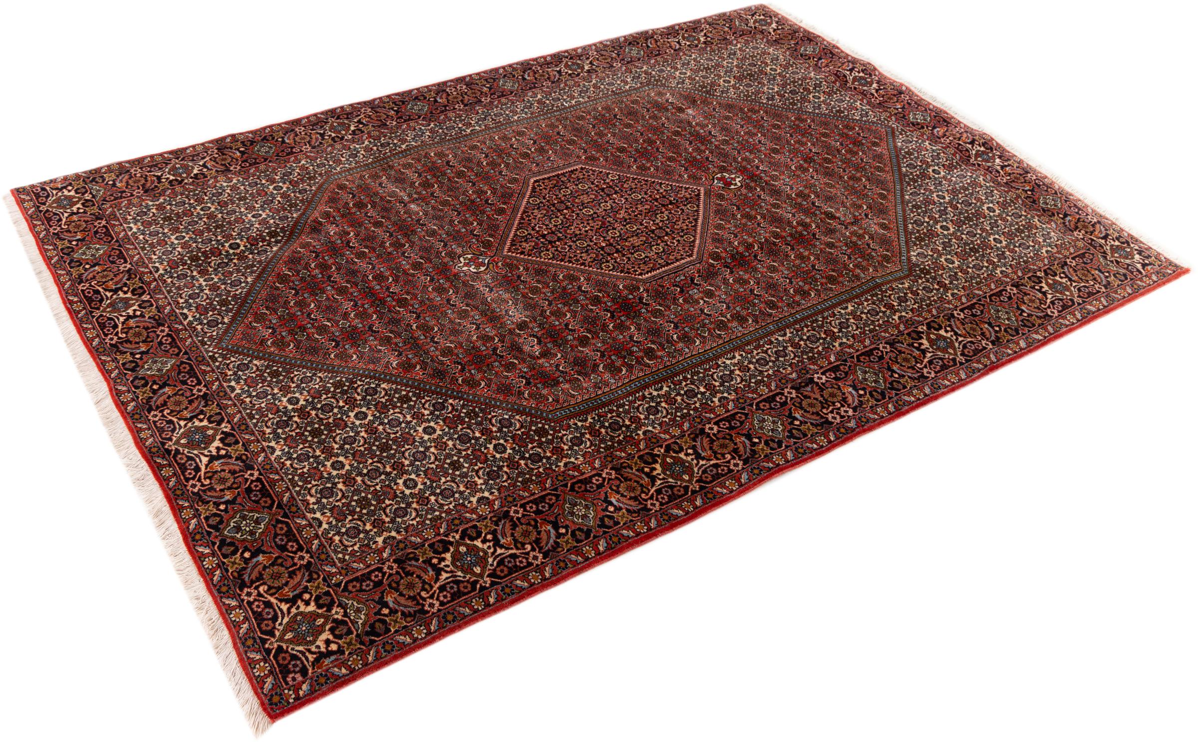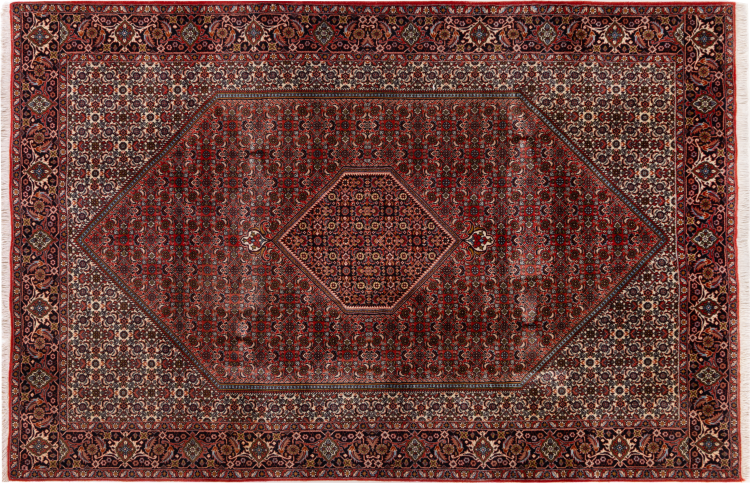 Ce tapis persan a été fabriqué dans une petite commune kurde à l’ouest de l’Iran. Les tapis Bidjar représentent la qualité. Son velours compact convainc de part sa densité importante et sa forte résistance. Vous pouvez en être certain : le tapis kurde est parfait. Et ce pour l’éternité.